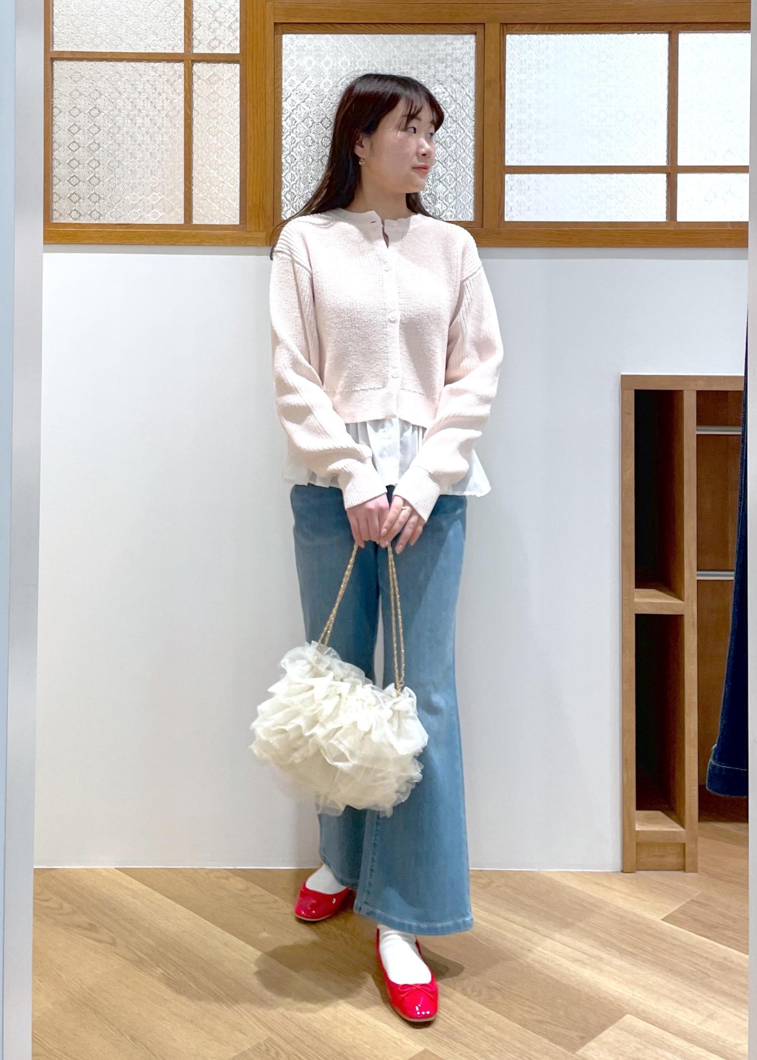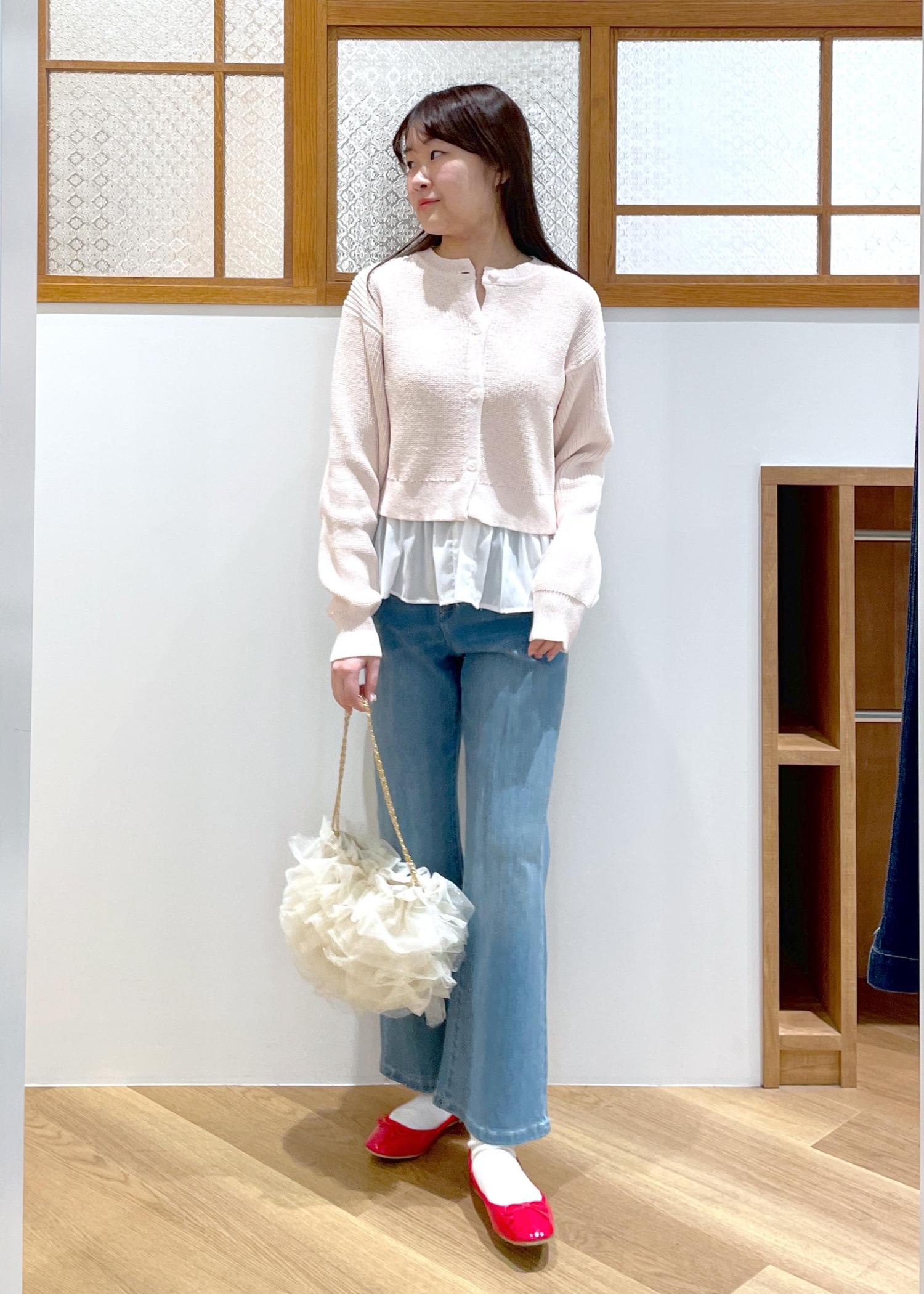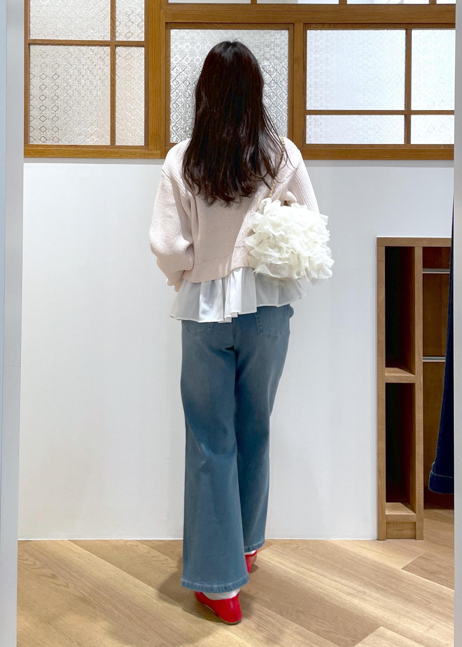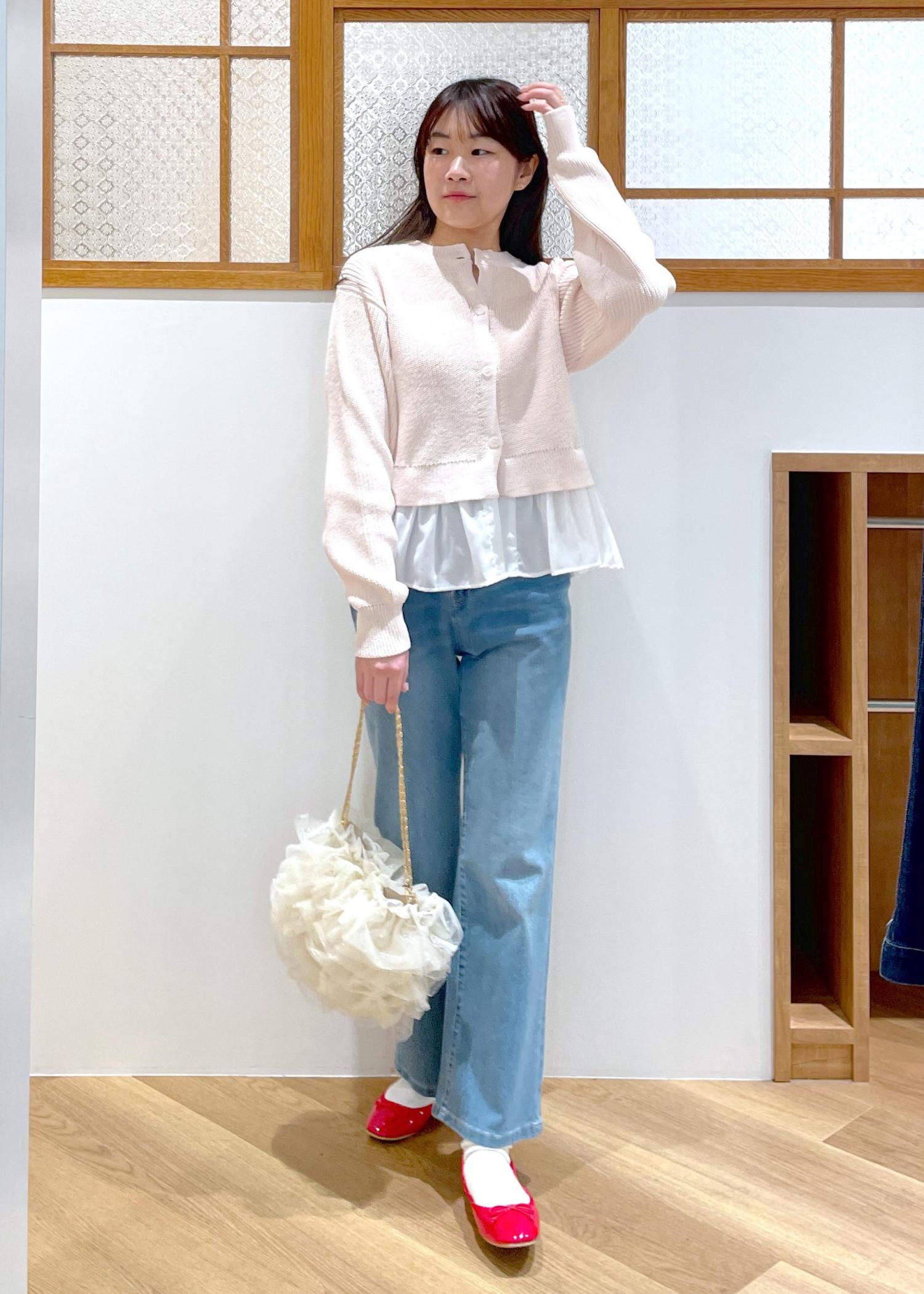 淡めピンクにデニム合わせが爽やかで一気に春らしい印象になります。