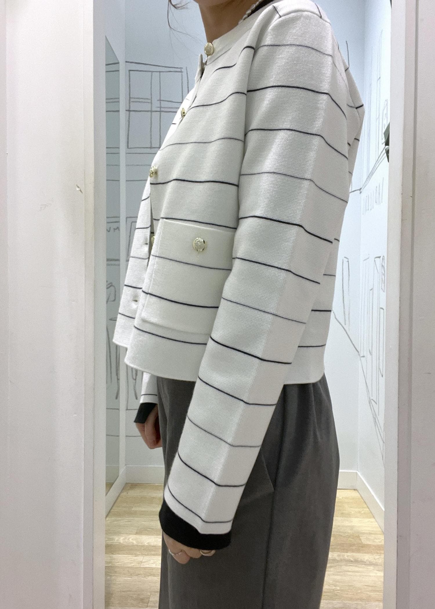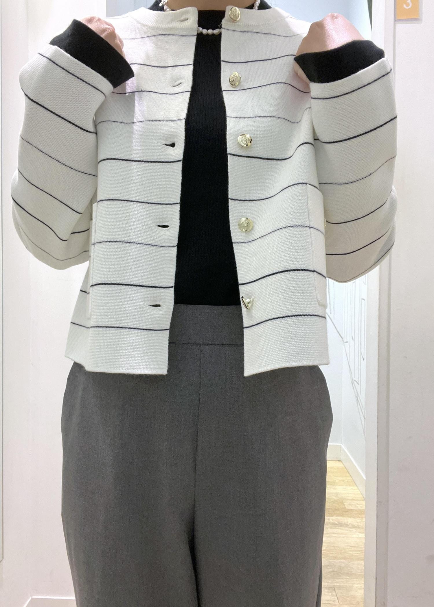 金ボタンがかわいいので、前をあけて着用しても、ボタンを閉じて着ていただいてもどちらもおすすめです◎