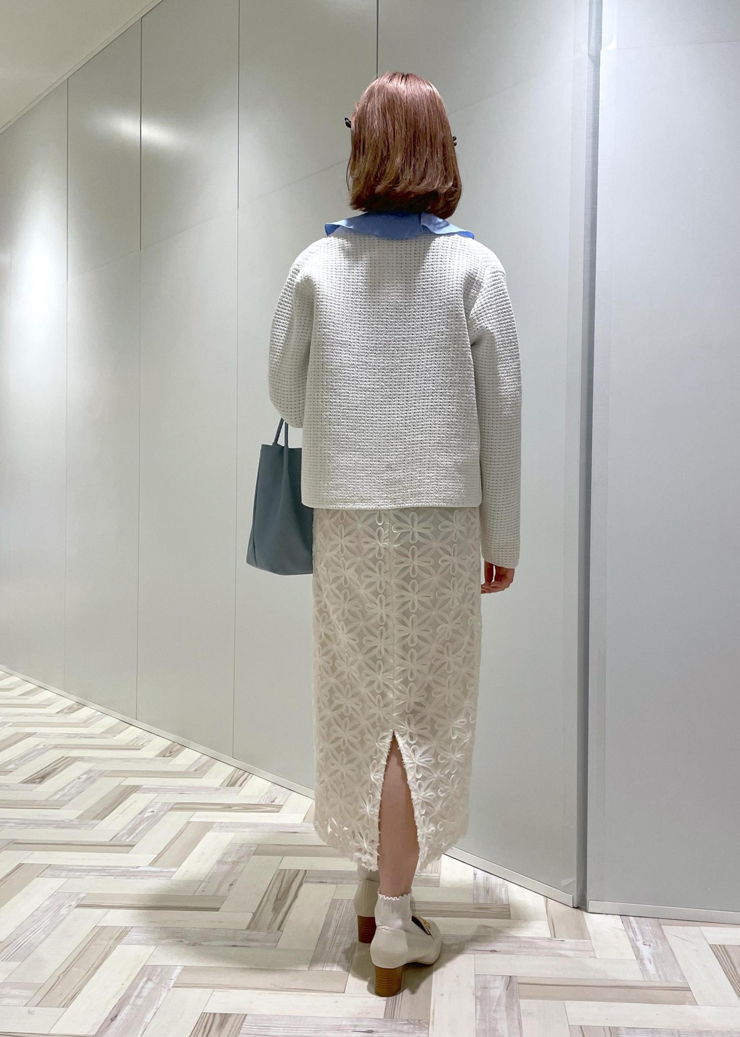 後ろ側にスリットが入っているので動きに制限もなく、お仕事でもお使い頂けるスカートです。