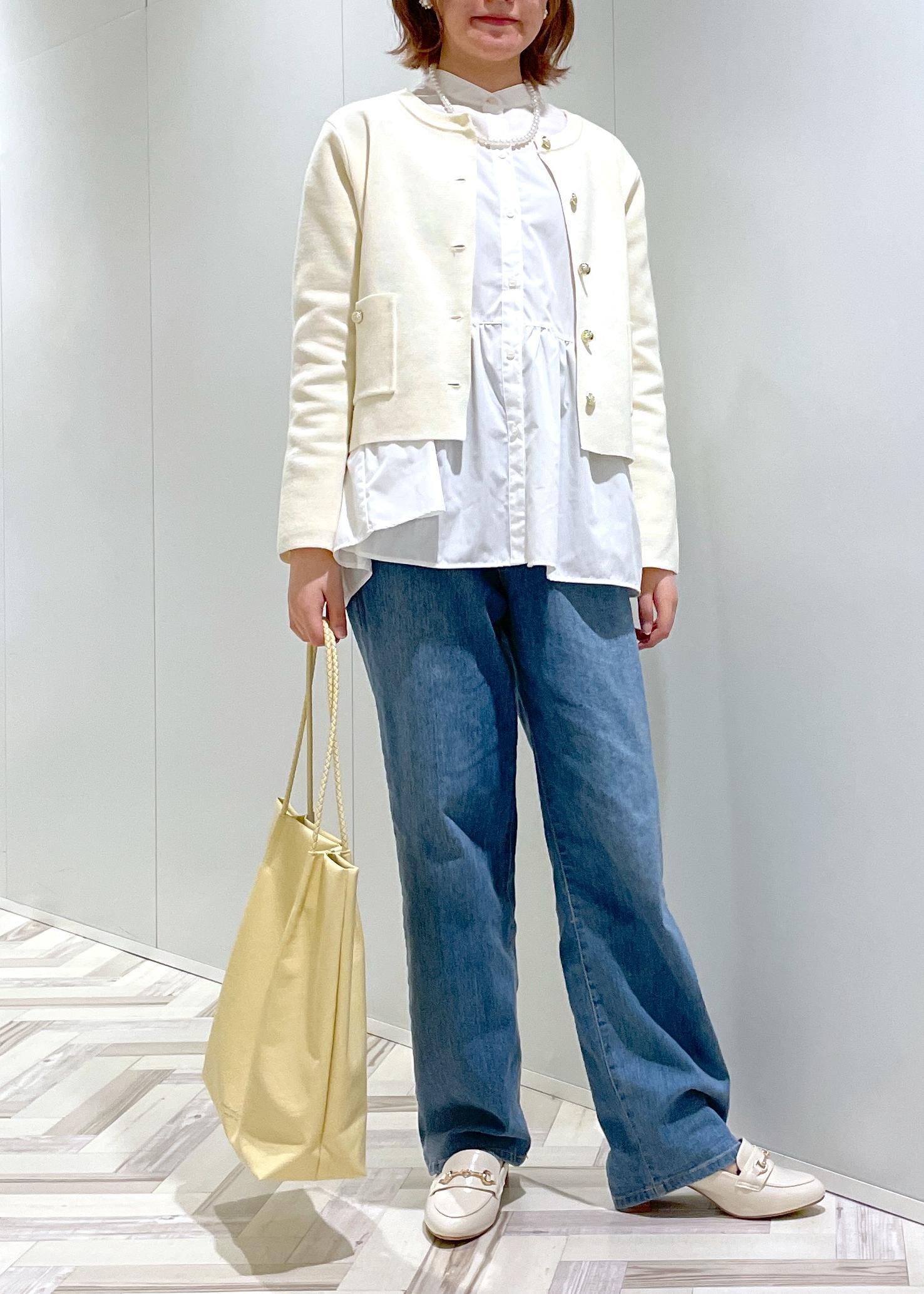 カーディガンで合わせても、ジャケットやビスチェと合わせても可愛く雰囲気を変えられます!