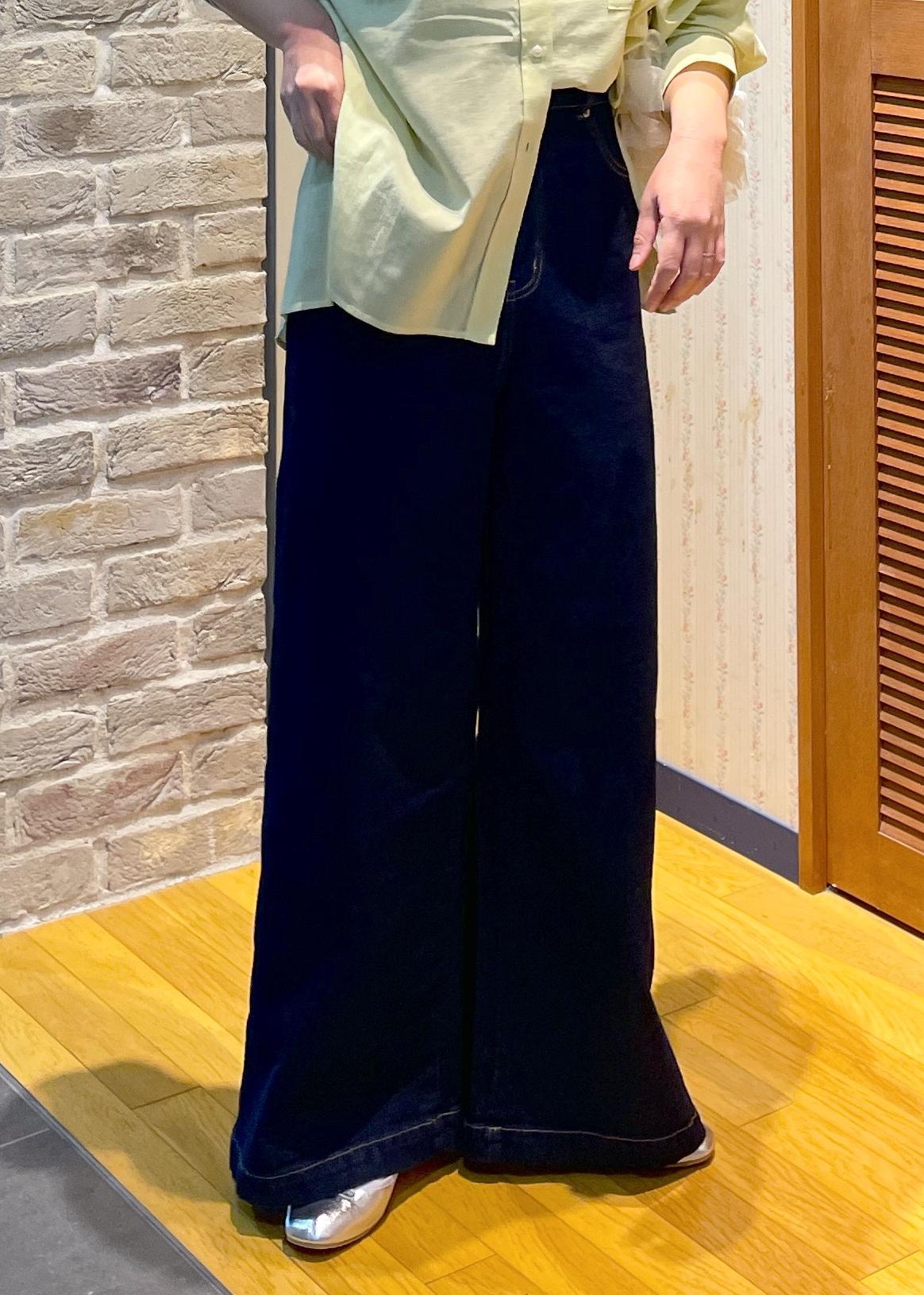 ROPÉ PICNIC【ウエスト革命デニム】ウエストシェイプデニムワイドパンツネイビー / 38¥4,543レビューデニム特有の硬さがあまり無く、柔らかな生地感です。ハイウエストのデニムで、ウエストは薄手のカットソーやブラウスをインできるくらいの余裕がありました。着丈は159cmでフラットシューズでギリギリ擦らない長さです。