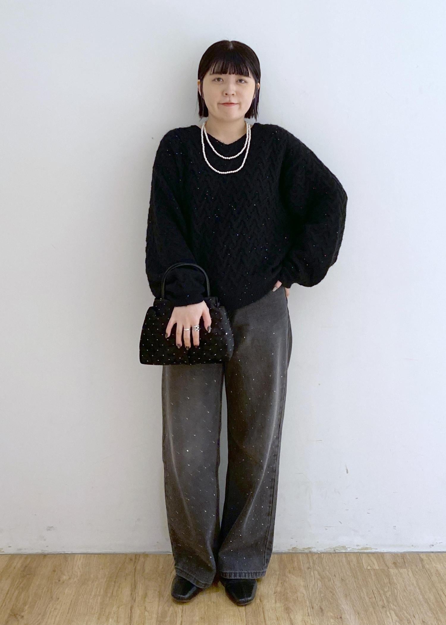 デニムをカジュアルになりすぎないようにコーディネートしました。金ボタンのカーディガンは一枚でもレイヤードでもスタイリングが決まりやすいアイテムです。