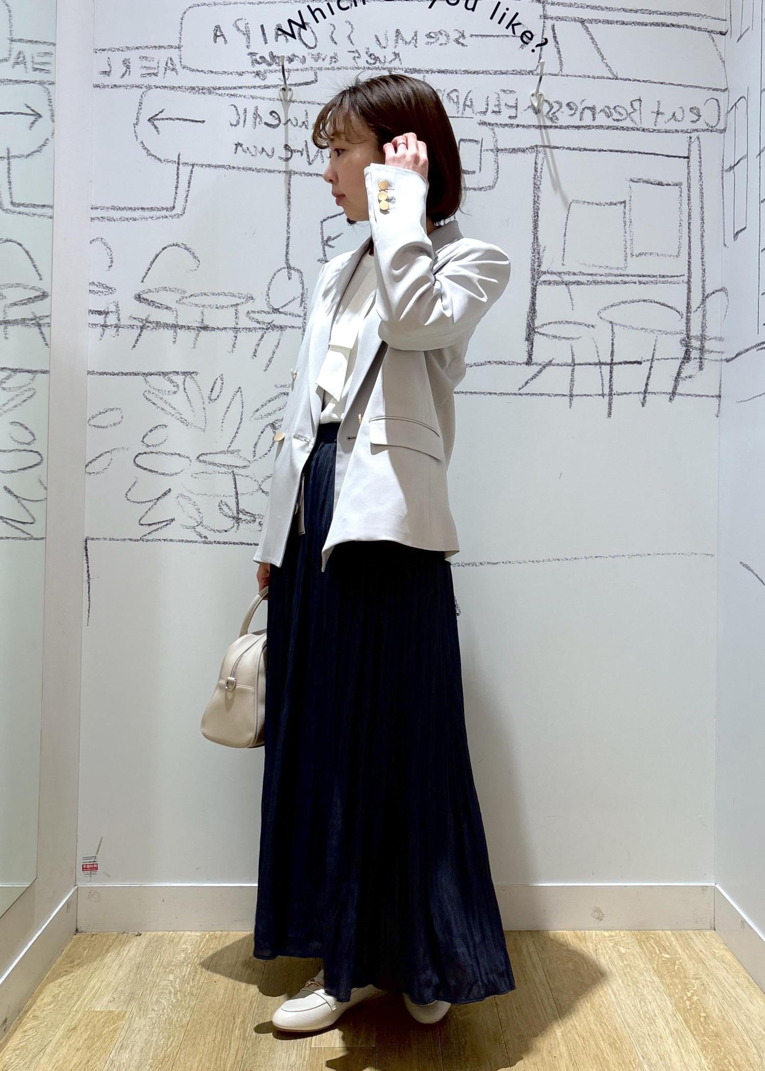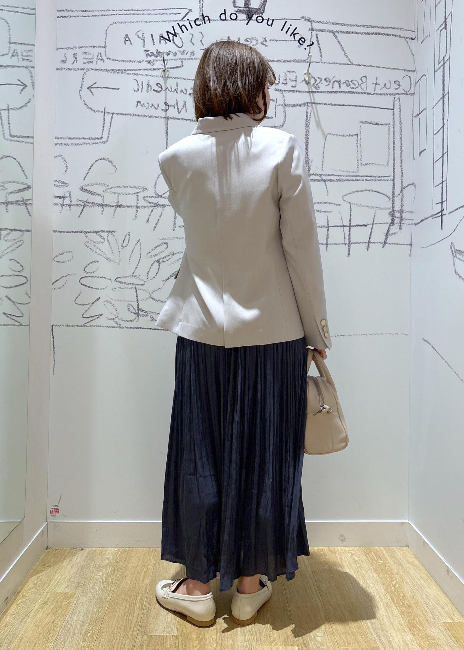 細かいプリーツで、動くとふんわり揺れるデザインです。38Tでくるぶしにかかる着丈です。