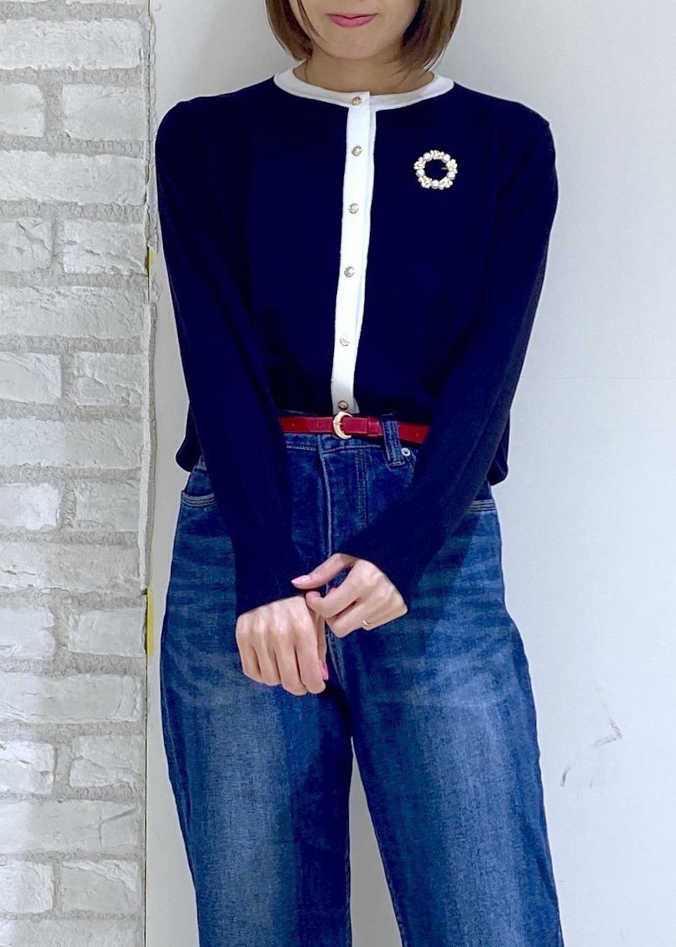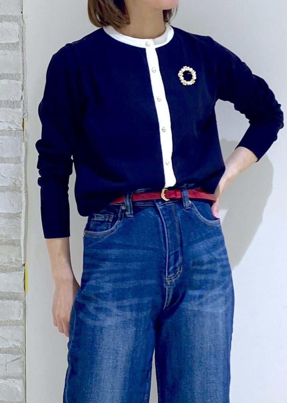 ネイビーとホワイトの配色がお洒落なカーディガンを