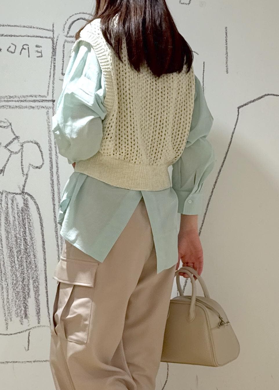 アウトレットROPÉ PICNIC透かし編みラメニットベストキナリ / F¥3,194レビュー身幅があるのでオーバーサイズのシャツなども窮屈感なく重ねられます。コンパクトな着丈なのでロングシャツやワンピースに重ねればメリハリのあるスタイルの完成です♪