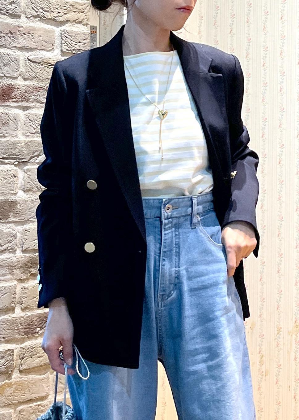 ボーダートップスで春らしくさわやかに!普段使いにジャケットを着回したコーデです。