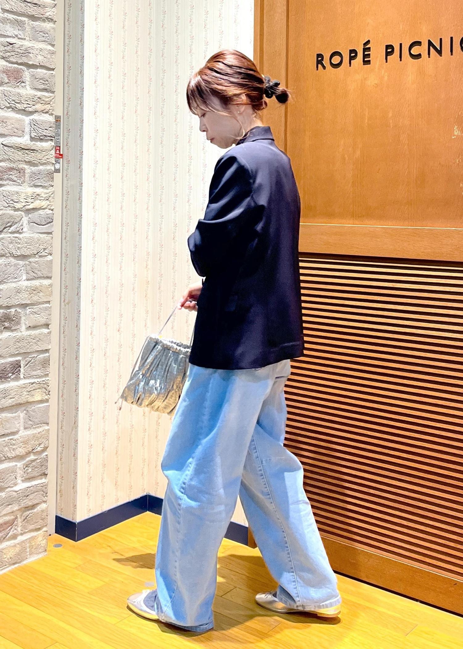 ジャケットをデニムにカジュアルダウンしたスタイリングです。