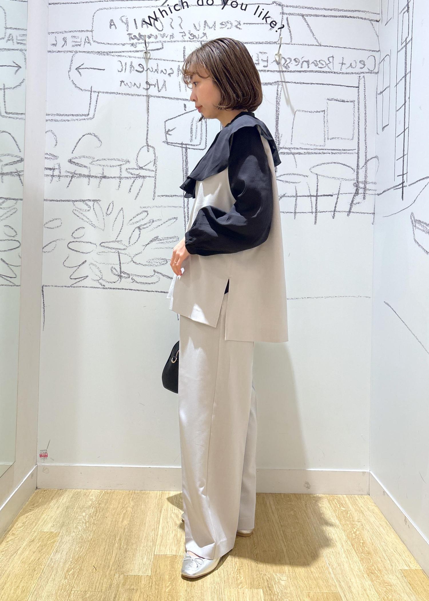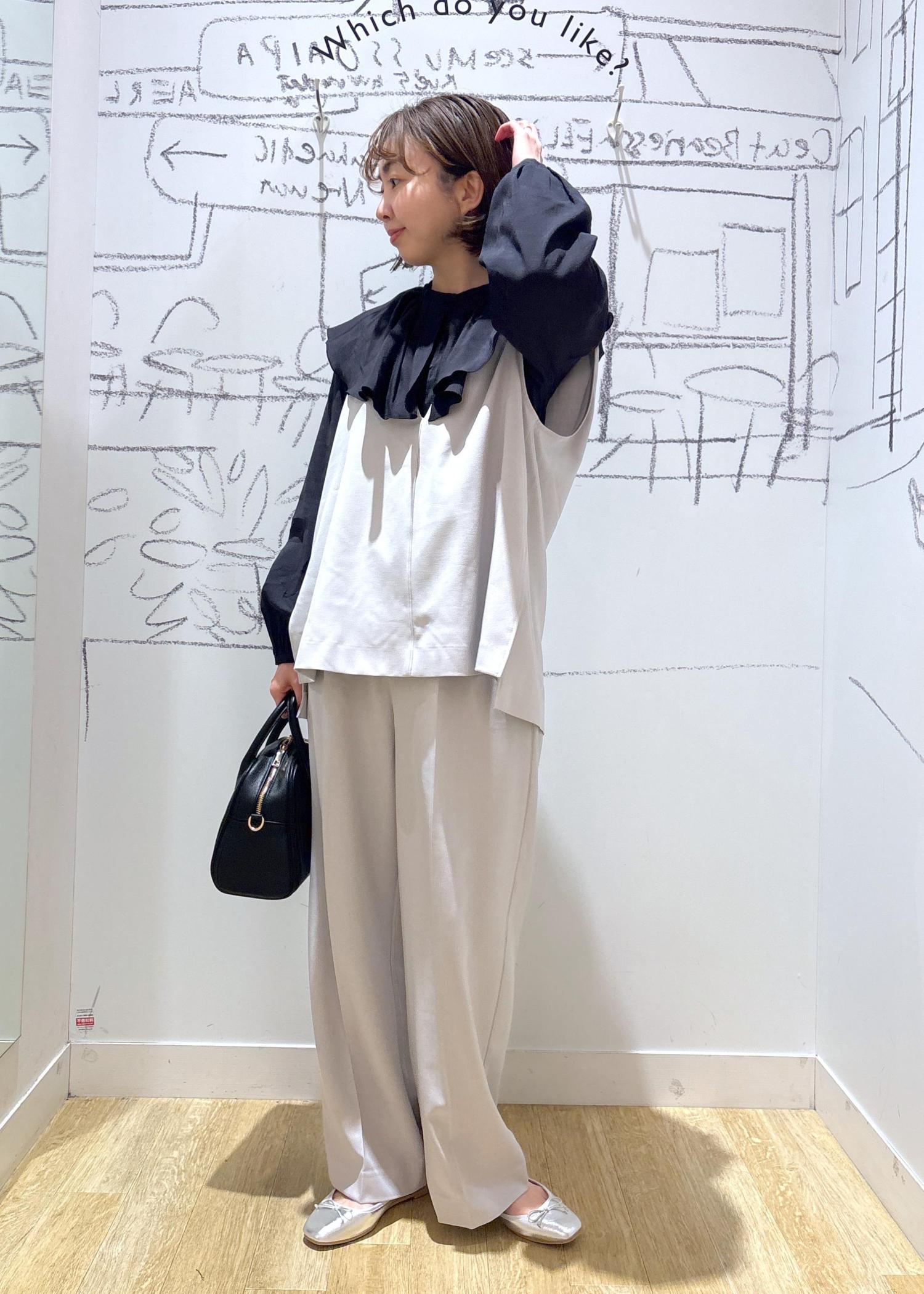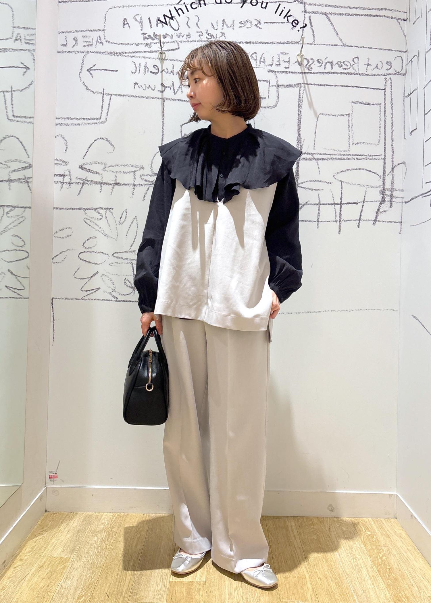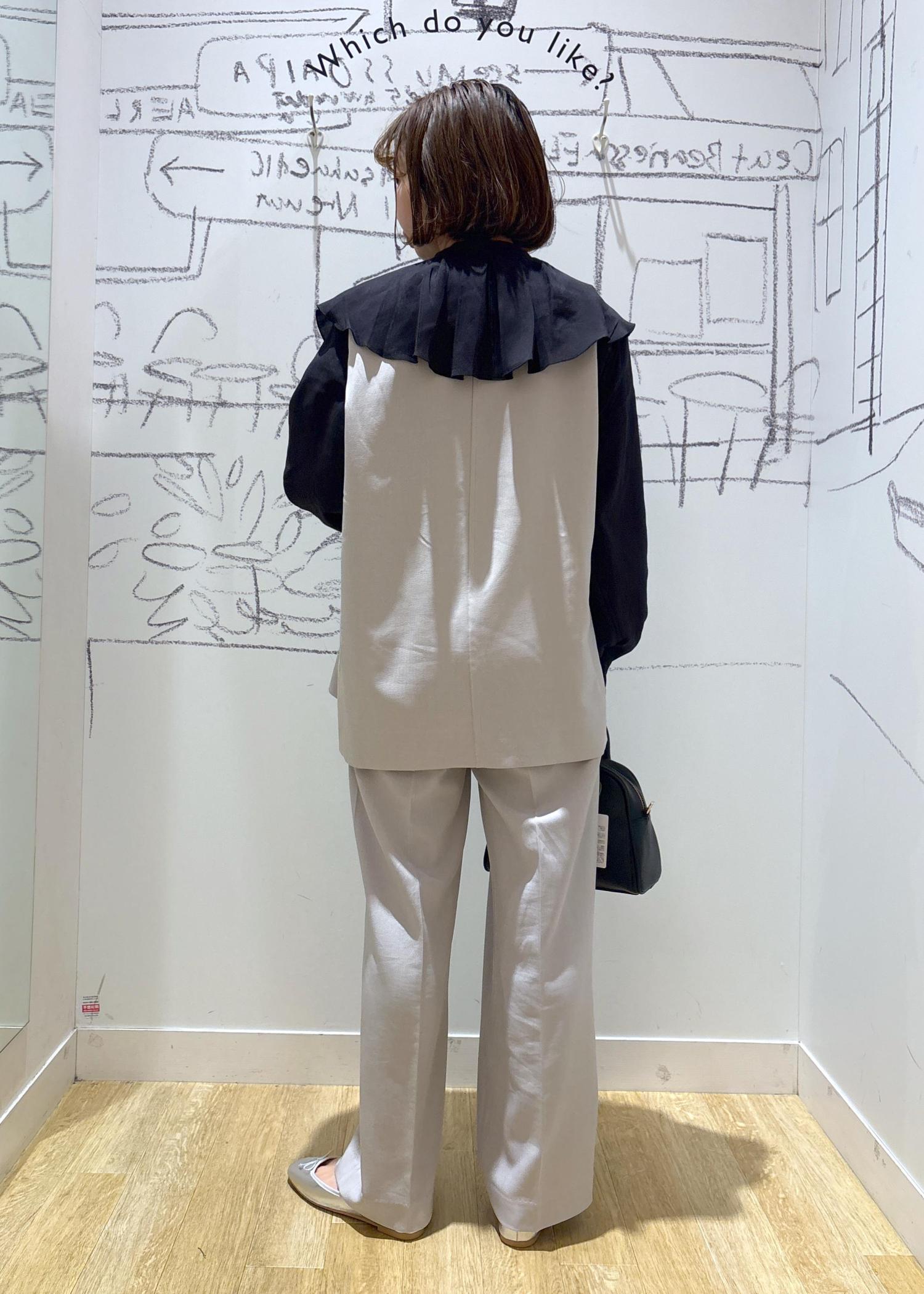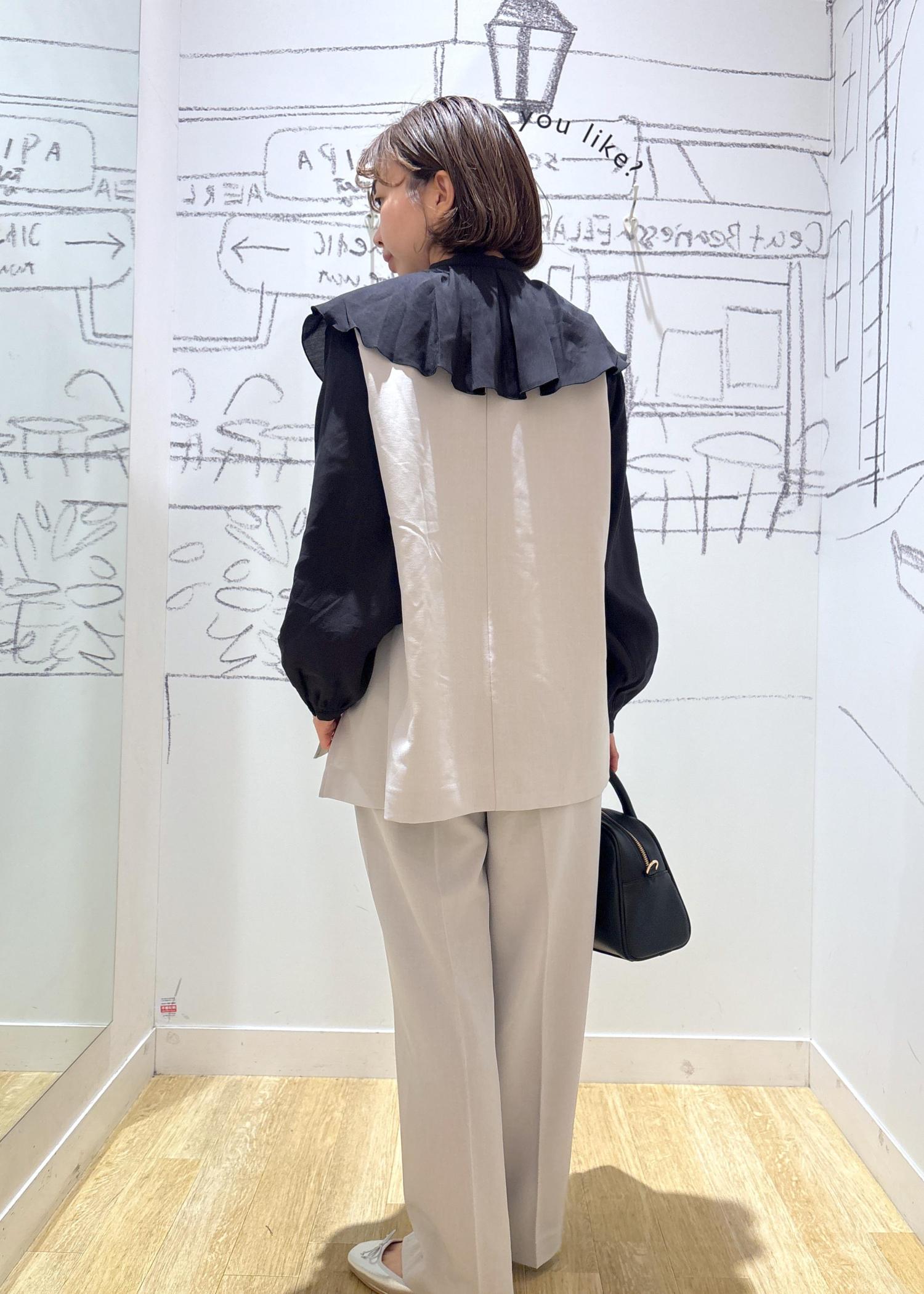 大きな襟がポイントでフェミニンな印象に仕上がります。