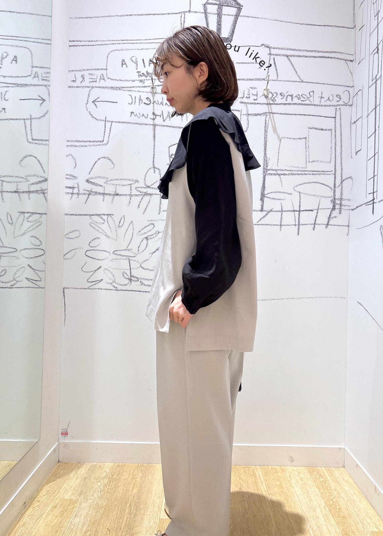 ジレとパンツのセットアップスタイルに