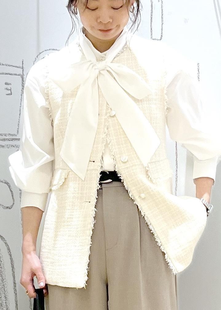 ROPÉ PICNICセレモニー・通勤対応/ツイードジレベストオフホワイト / 38¥8,789レビューペプラムラインがかわいいジレベスト。