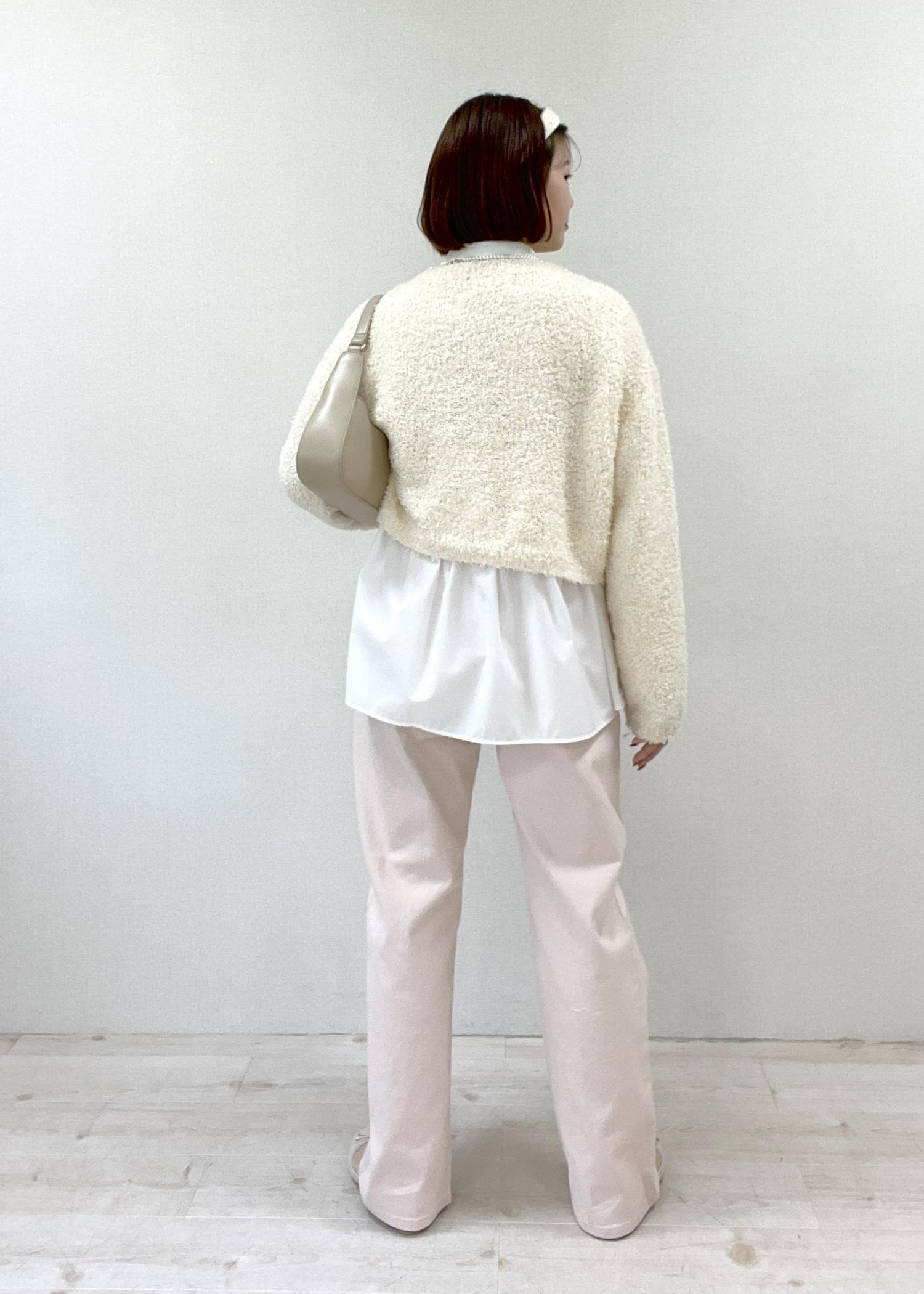 十分に素敵なんですが、少しだけ爽やかな雰囲気が欲しかったので、白シャツをレイヤードして軽やかさをプラス◎