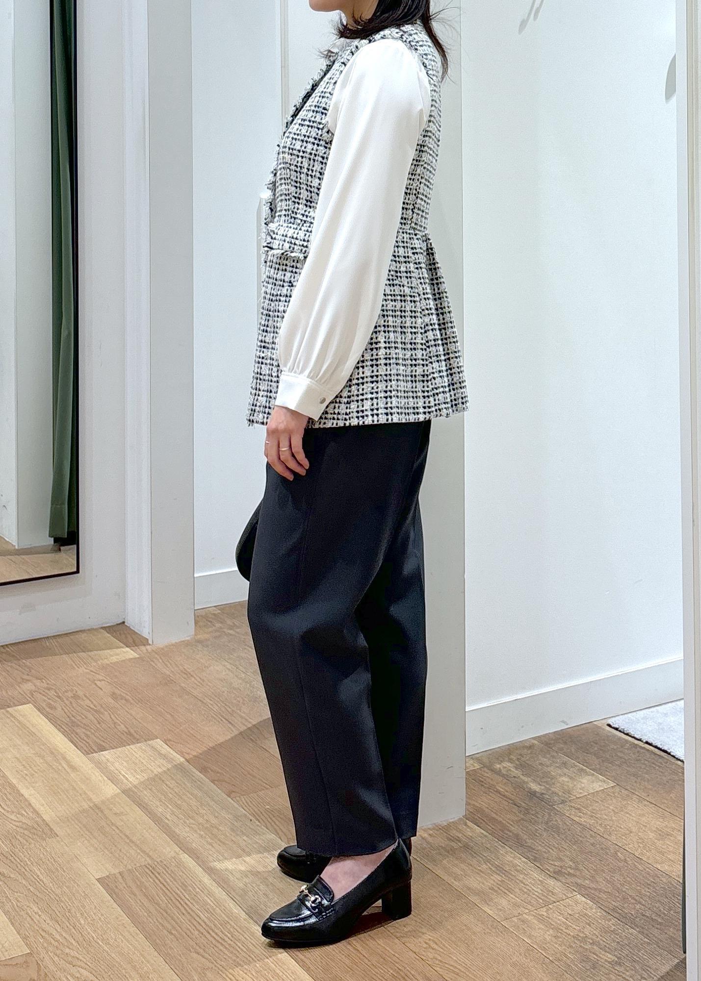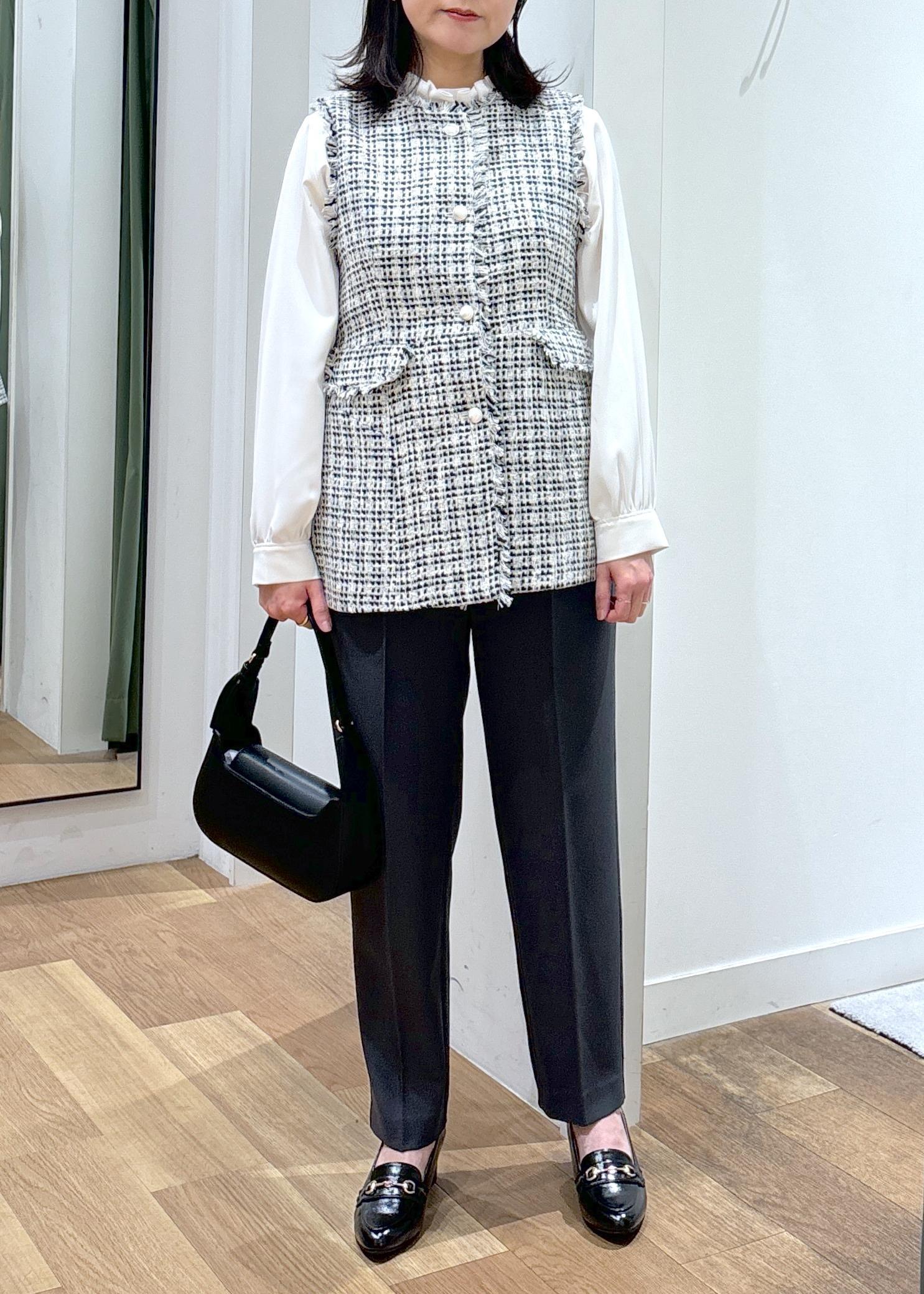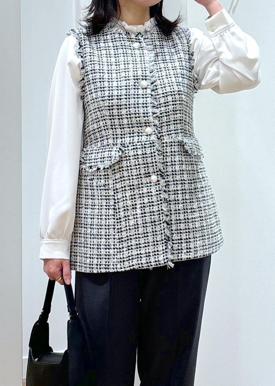こちらのツイードジレはしっかりときちんと感もありながら、