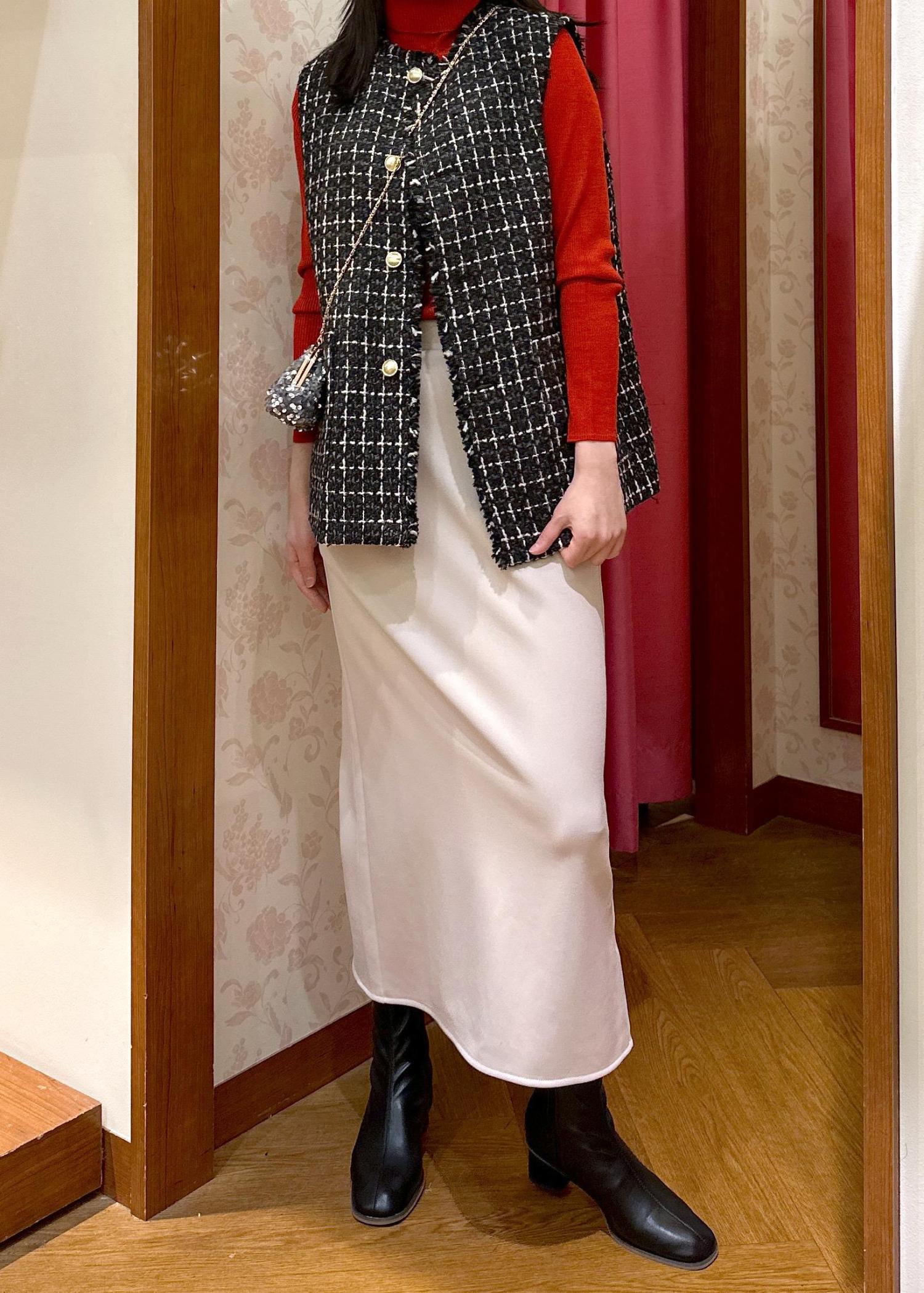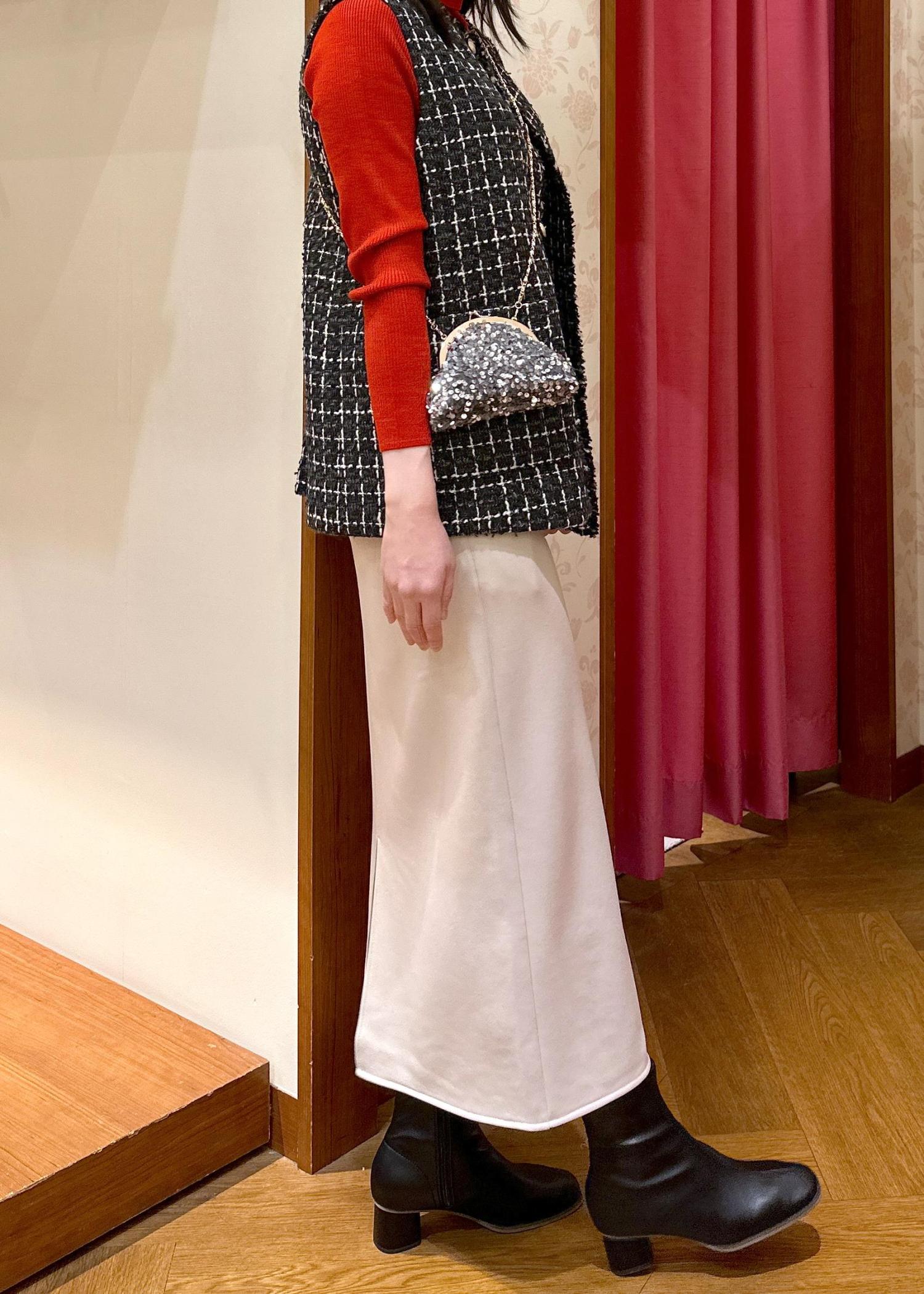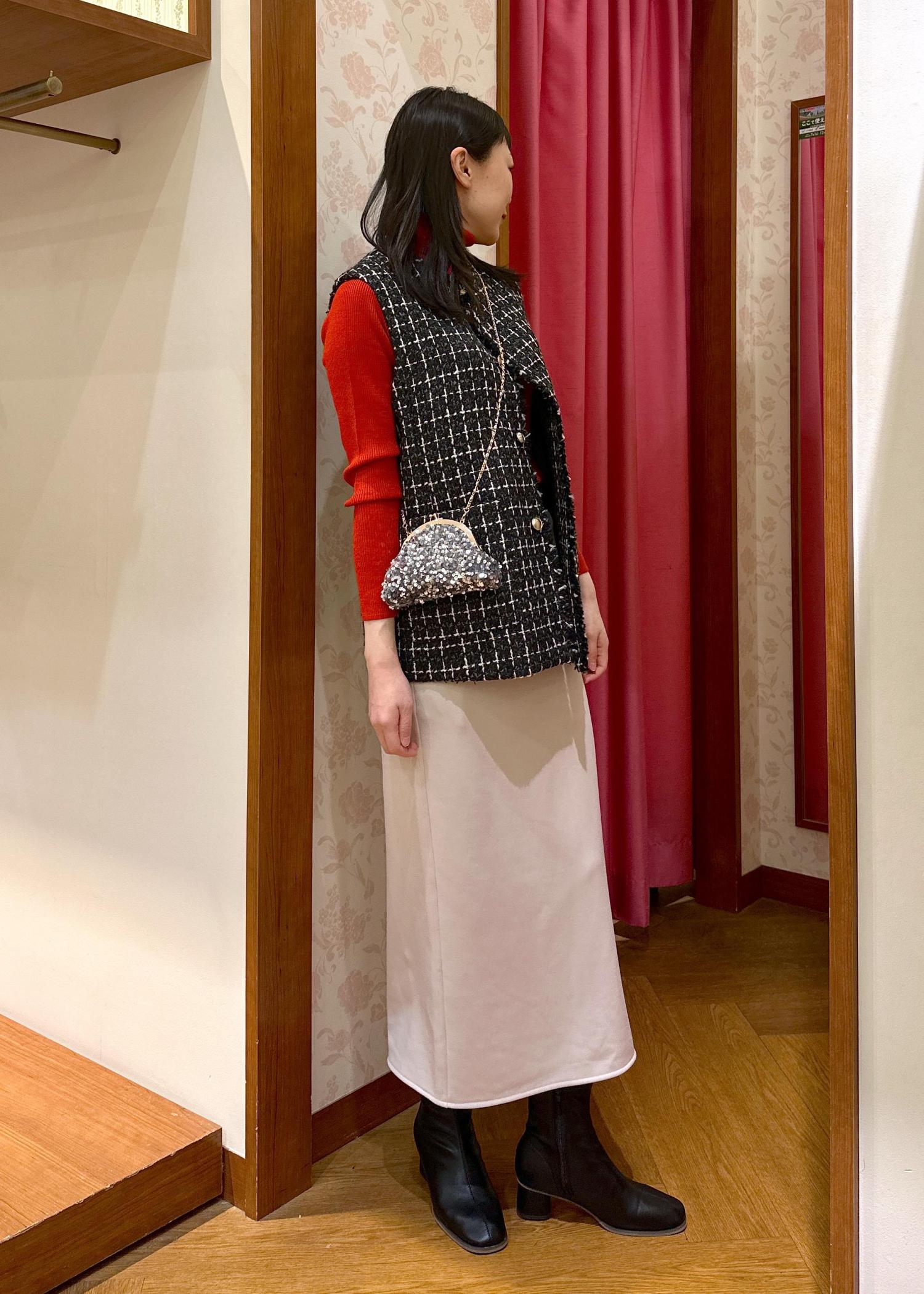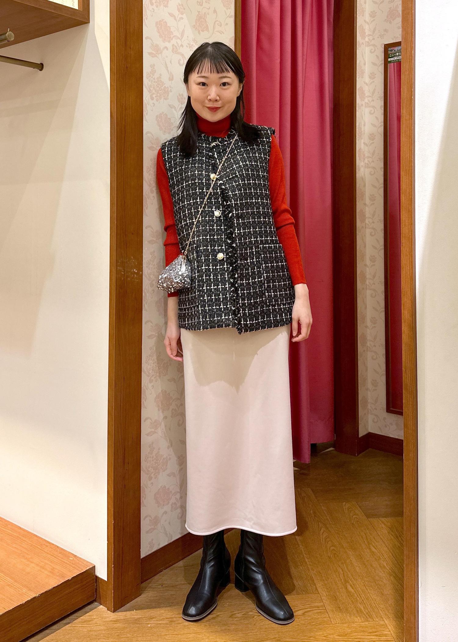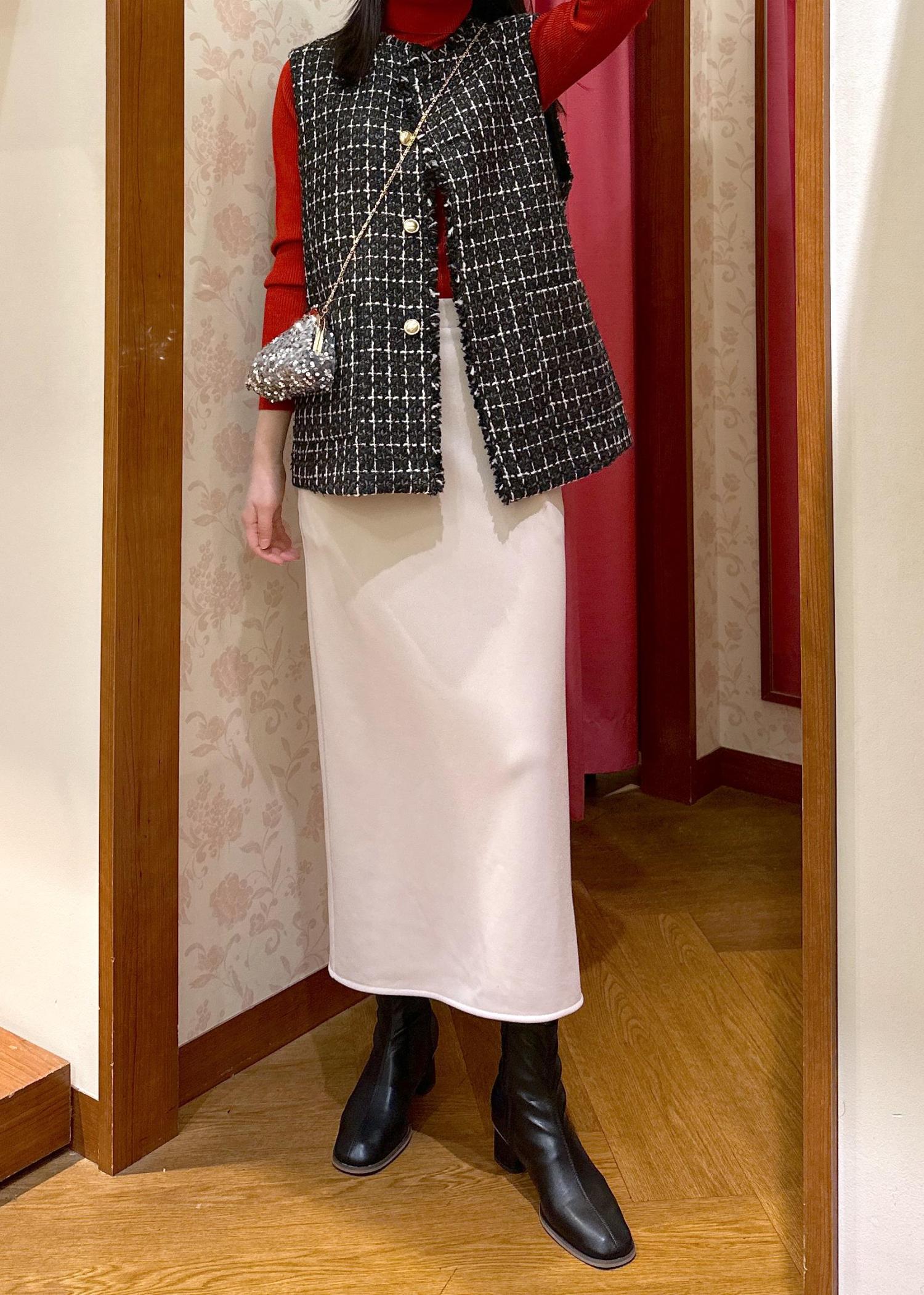 トップスのハイネック×スカート裏起毛で心地よい着用感で、寒い冬の味方になってくれます。ボタンの開け閉めでカジュアルからきれいめコーデに。