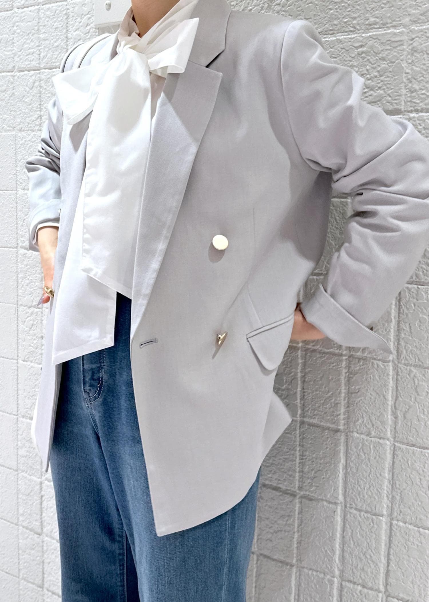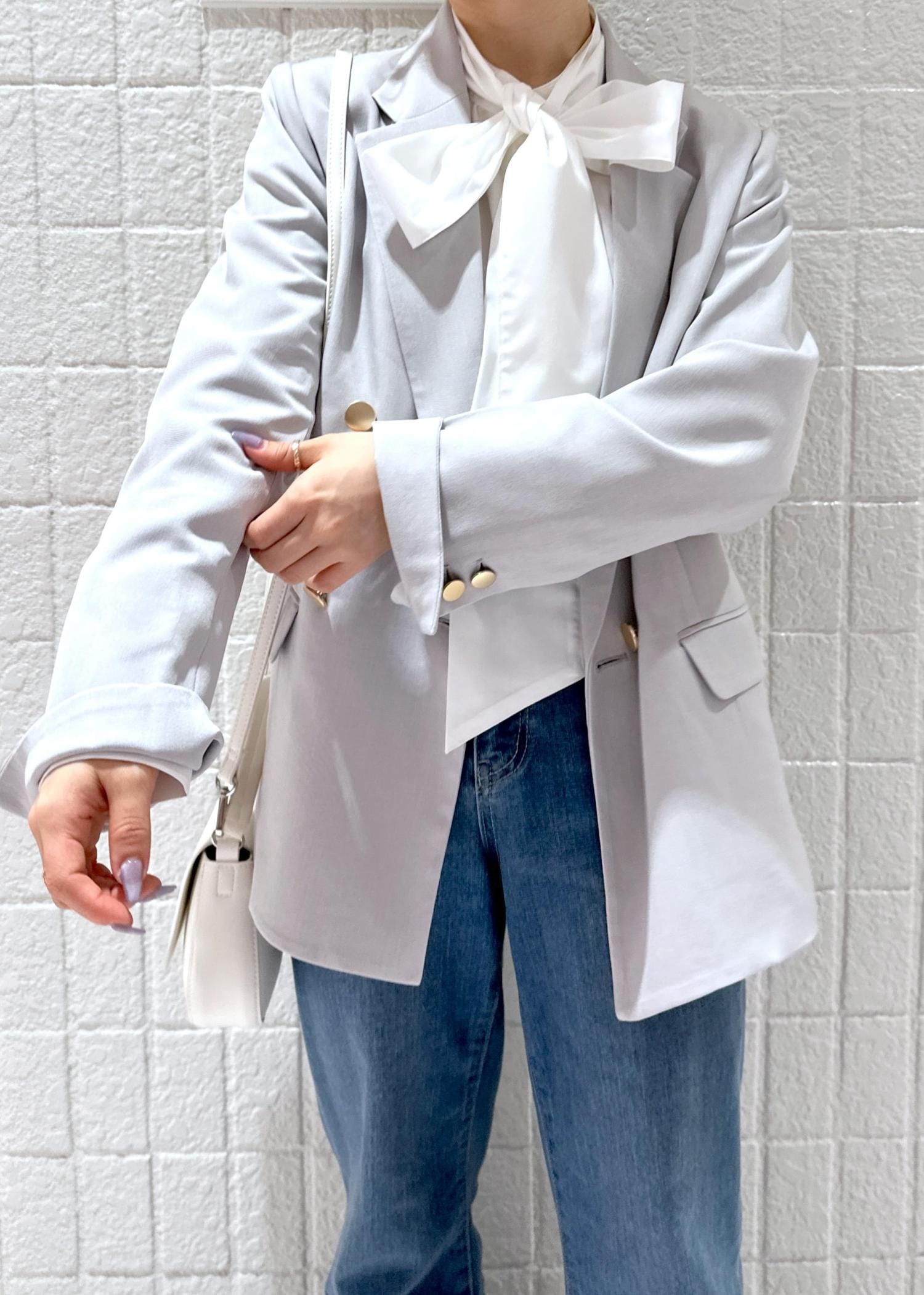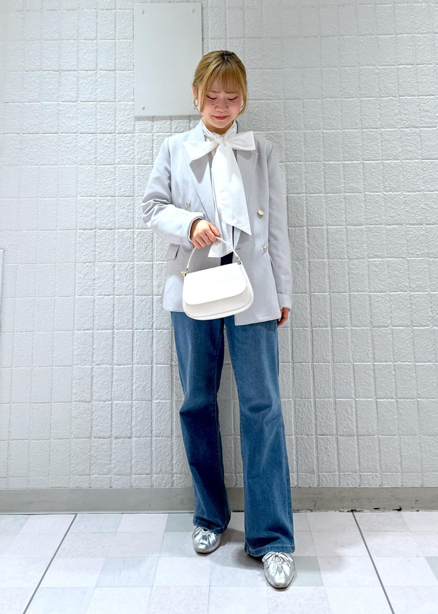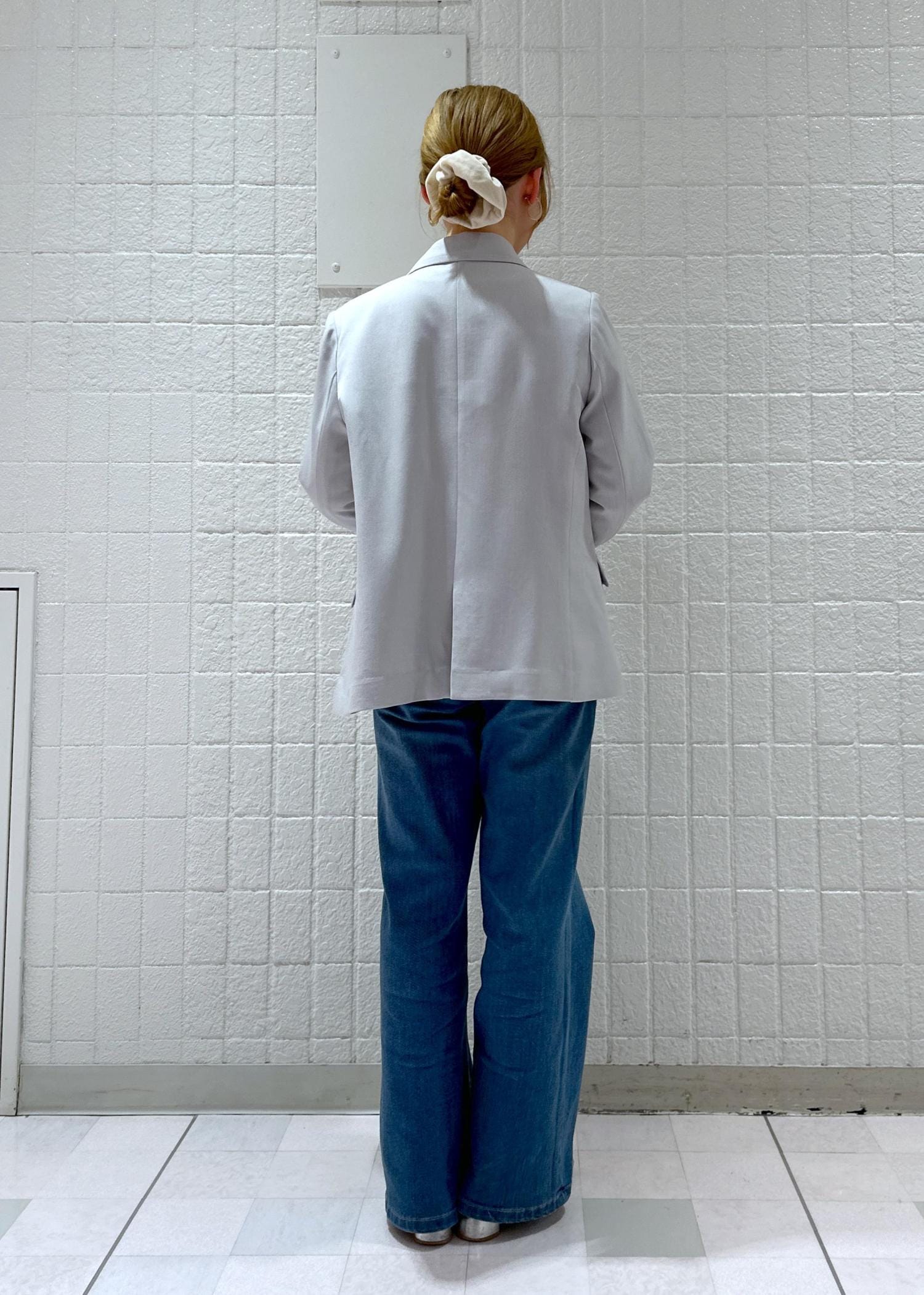 ジャケットにデニムを合わせ、きれいめカジュアルコーデにまとめました。