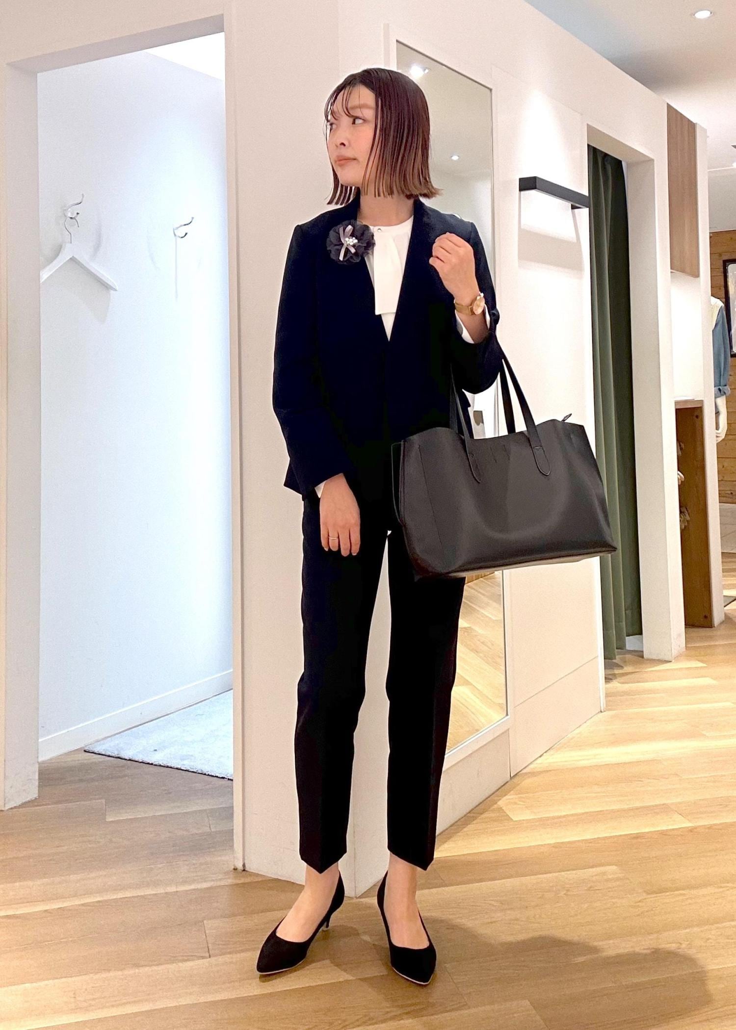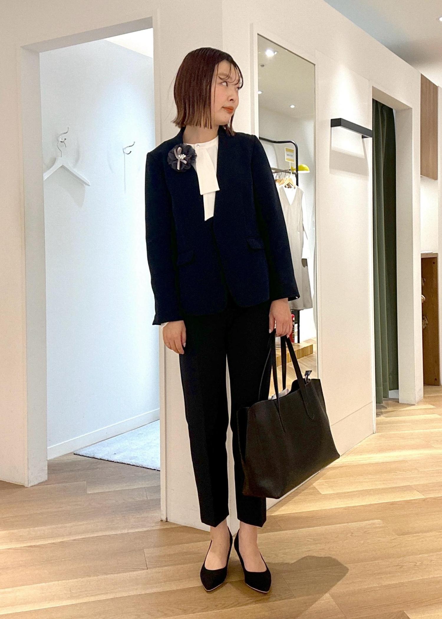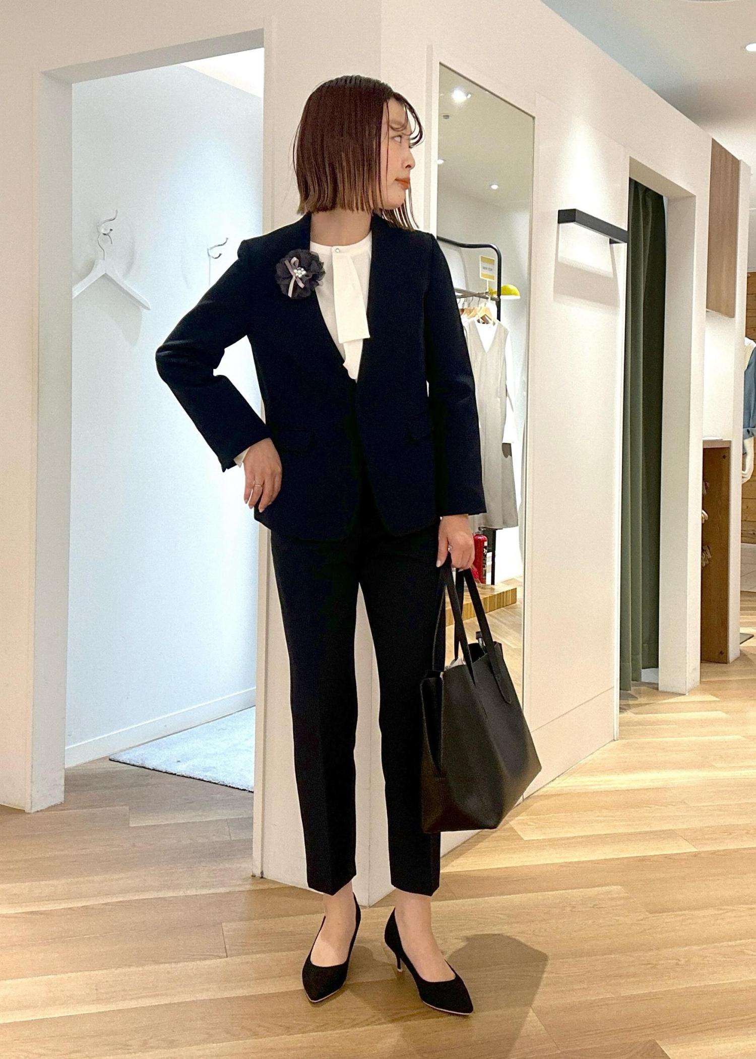 お仕事、セレモニーシーンなどで大活躍するウルトラストレッチシリーズのセットアップ。 定番の組み合わせに人気no1のボウタイブラウスを合わせれば間違いないです。