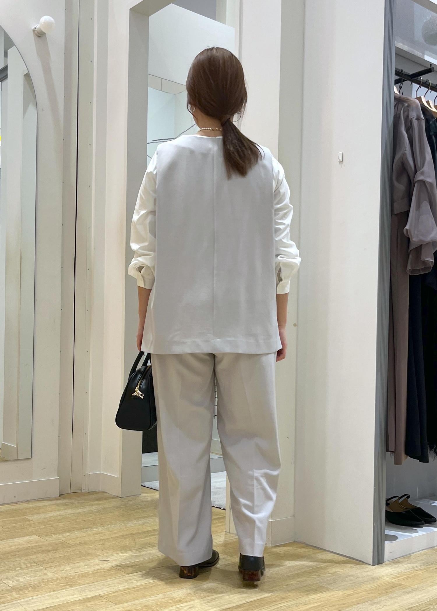 セレモニーにもオススメのクリアツイルシリーズのベスト×ワイドパンツのスタイリングです。