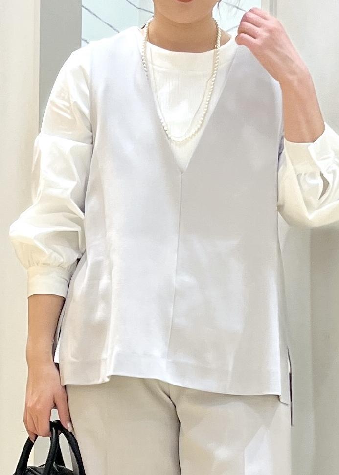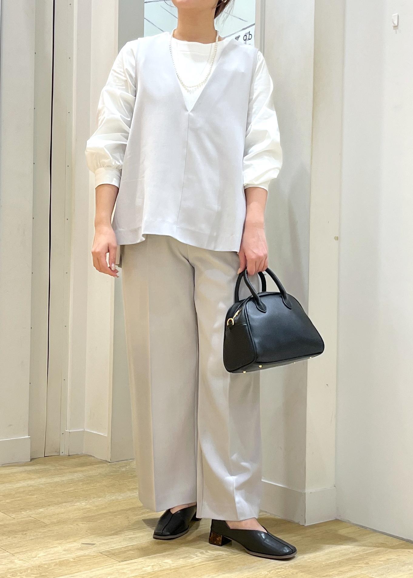 インナーは、オンオフ使えるトップスを合わせてコーディネートしてみました。