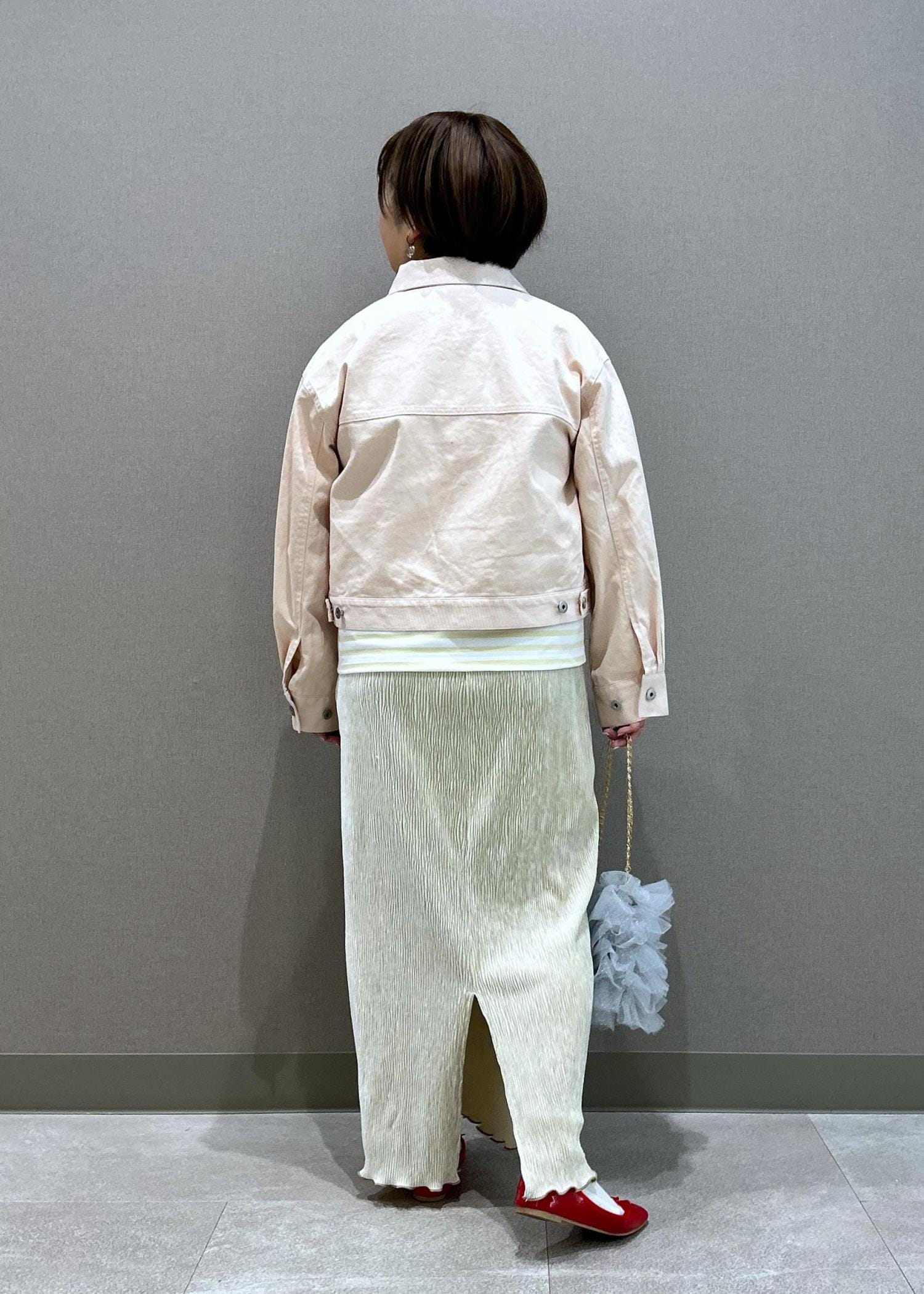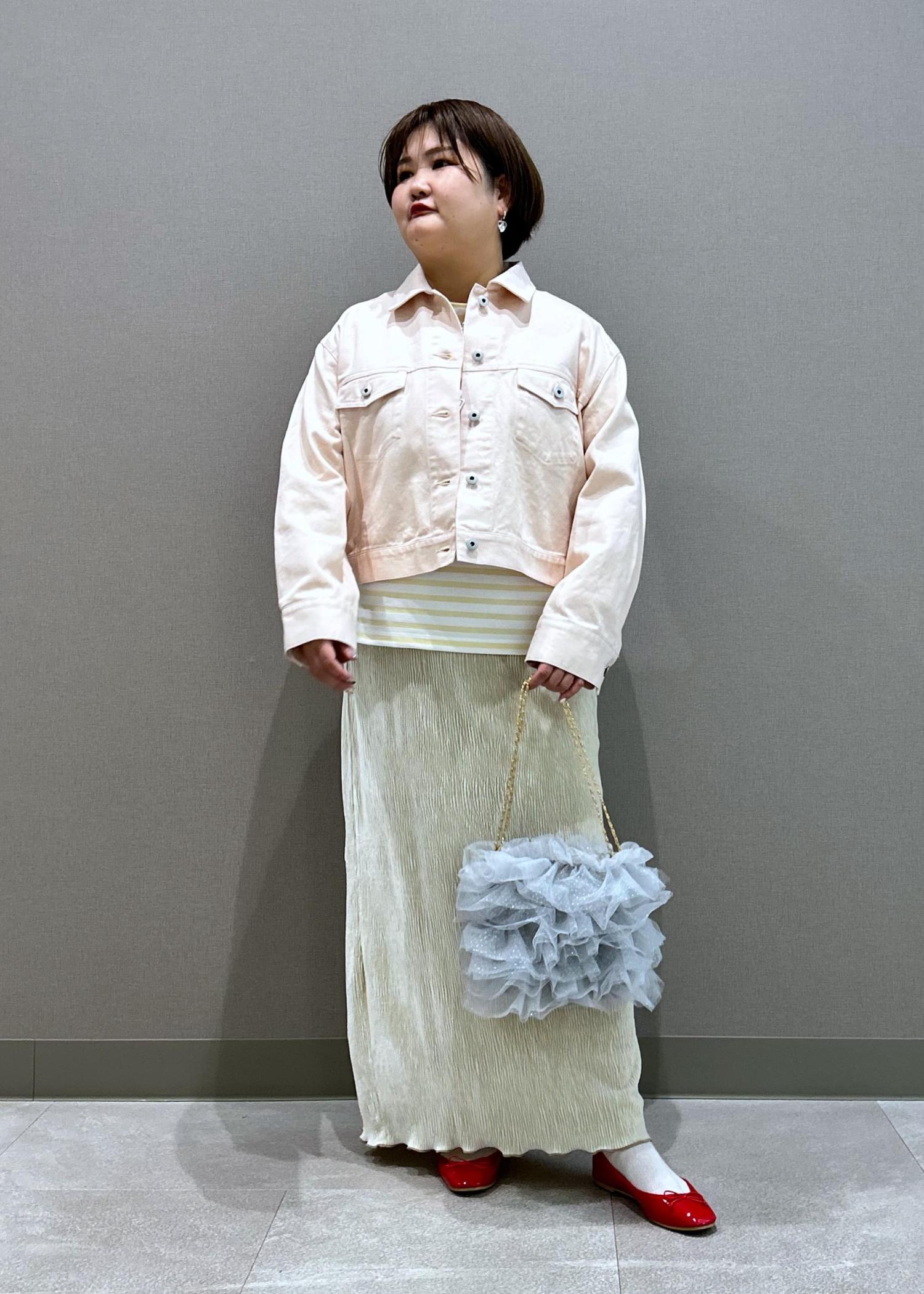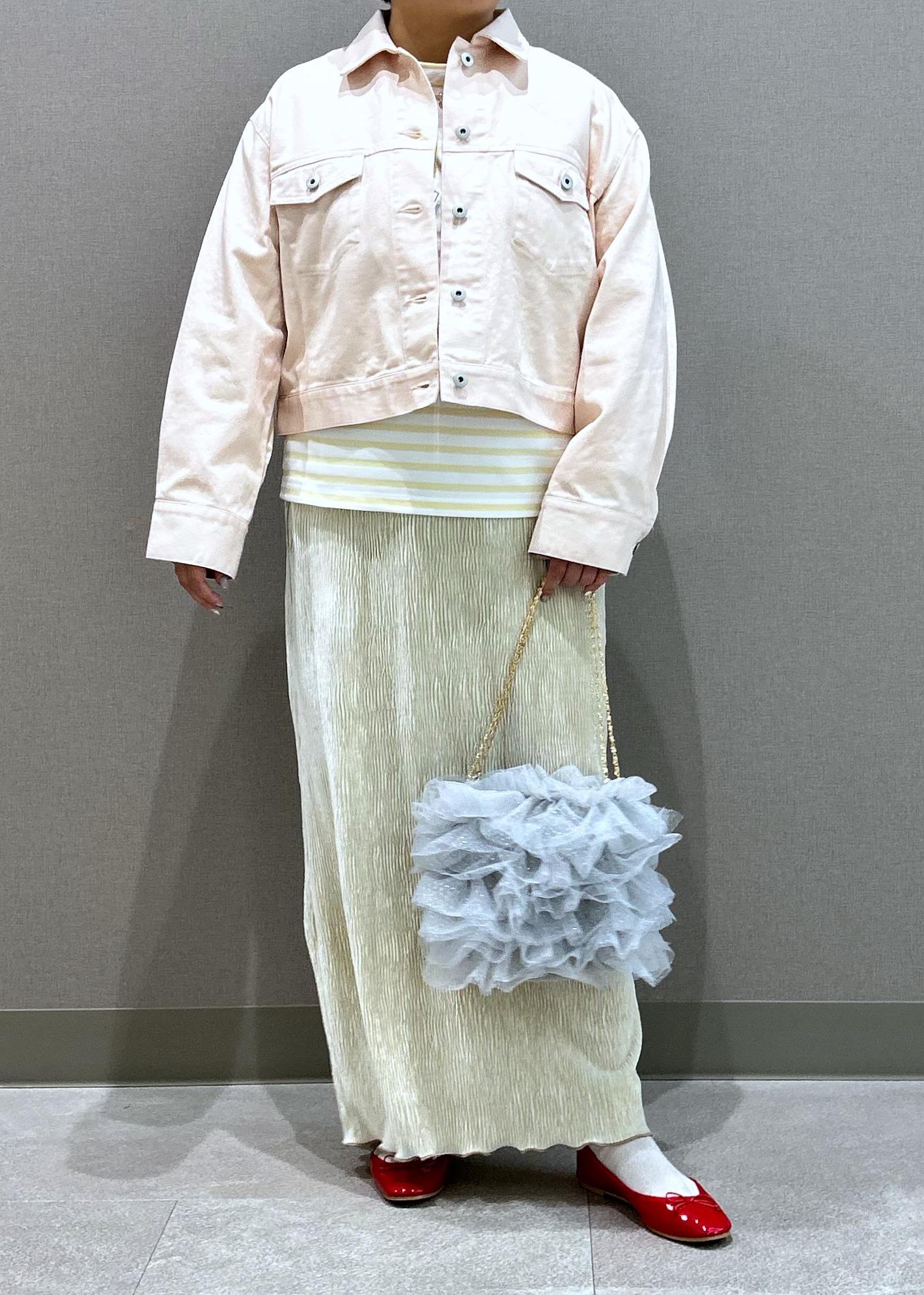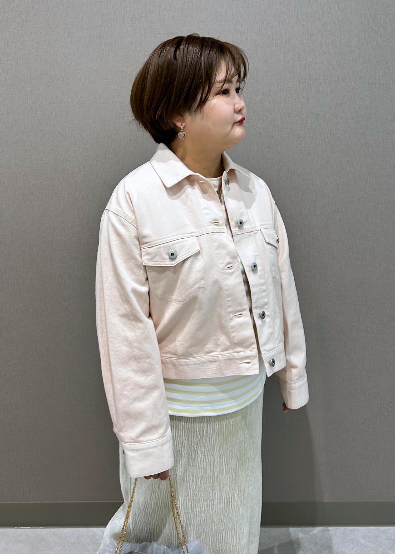 柔らかなピンクカラーのデニムジャケットで春先取りのスタイリング♪