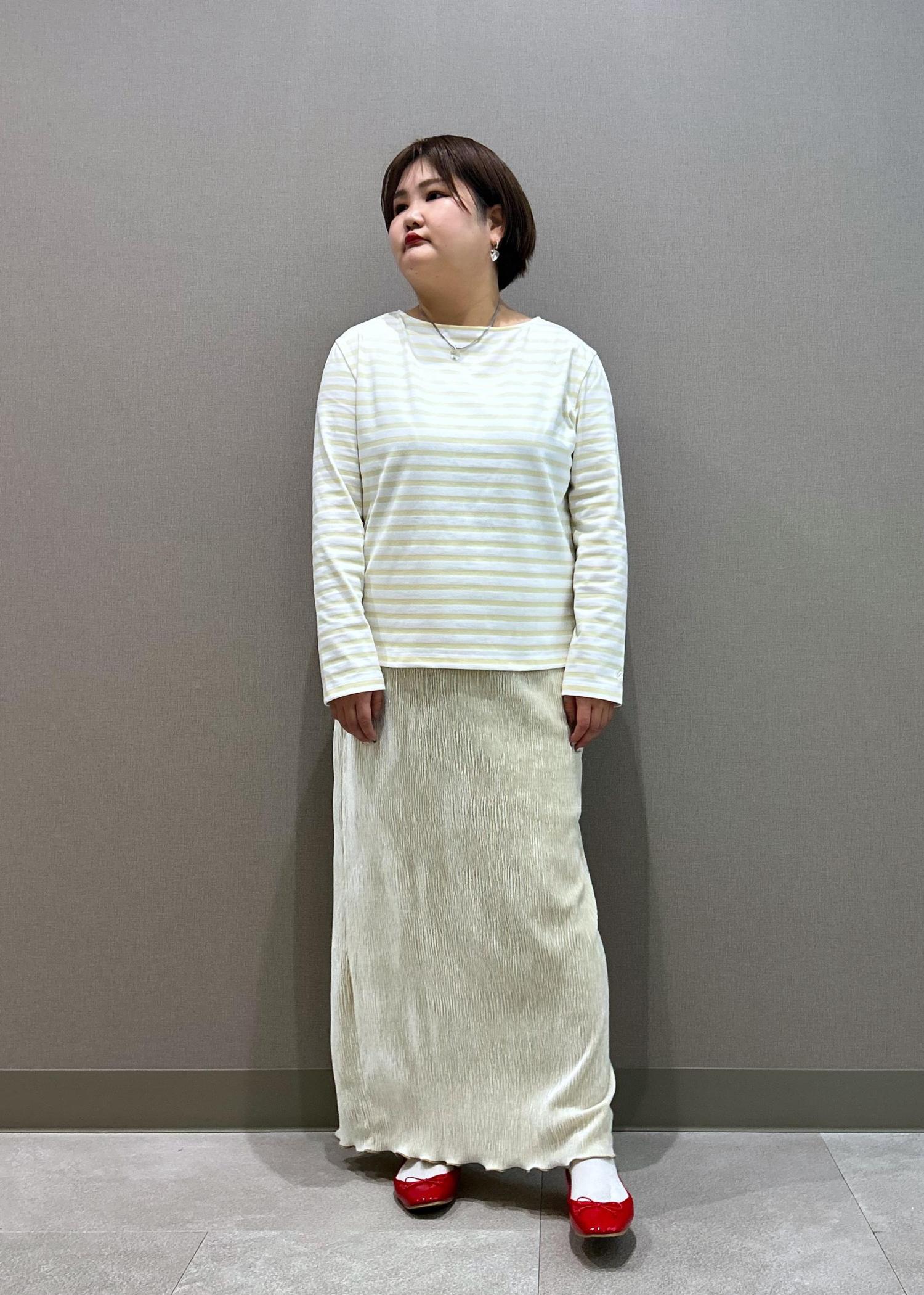 ボーダーカットソーとのレイヤード感もポイントなコーディネートです♪