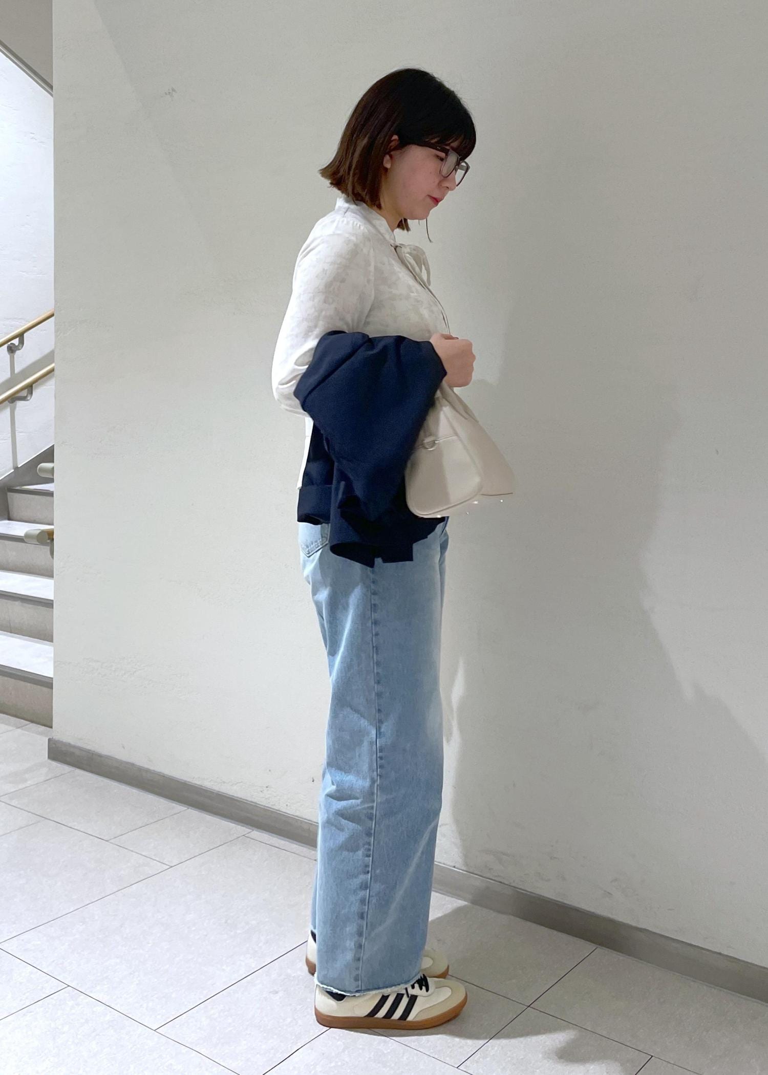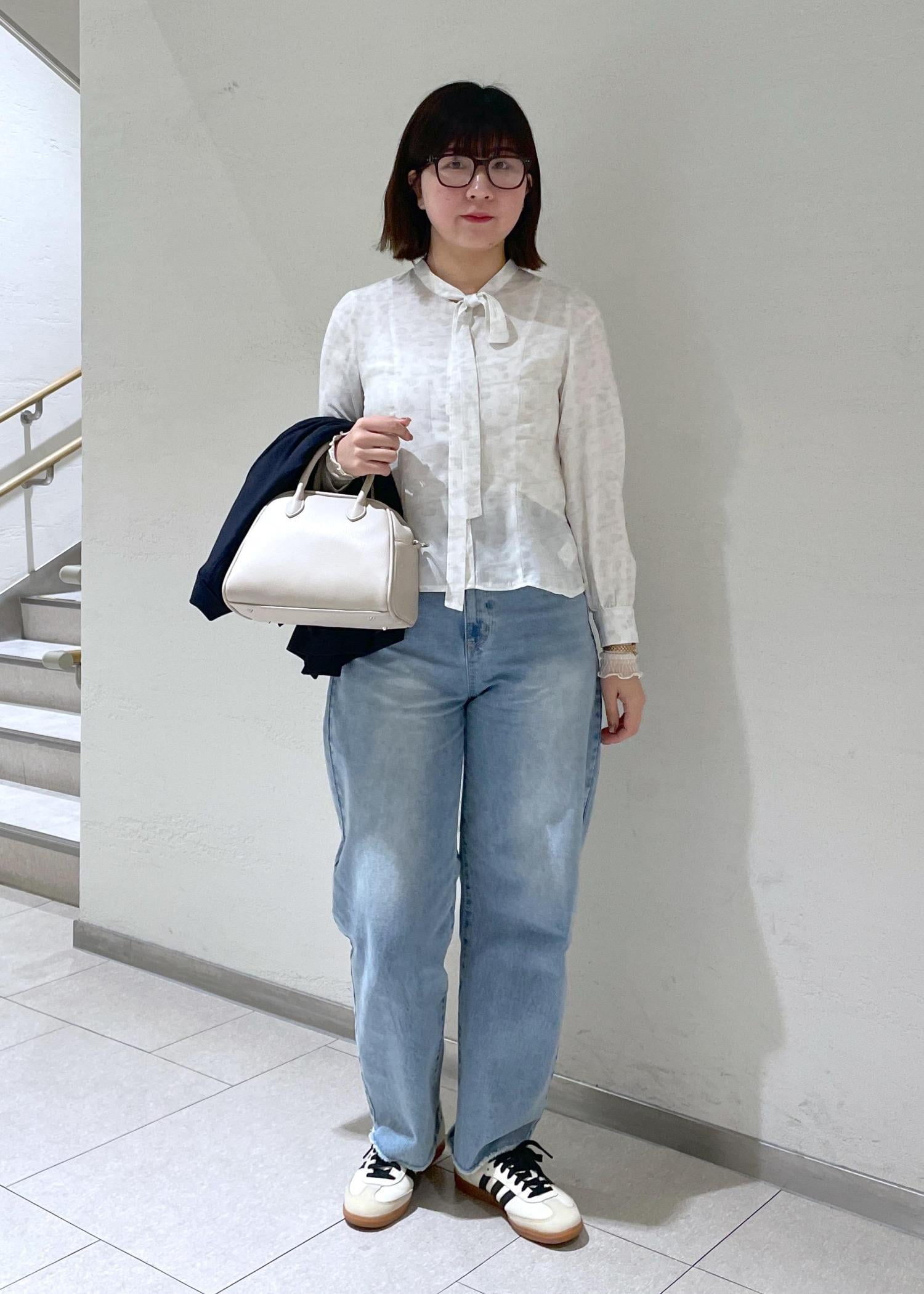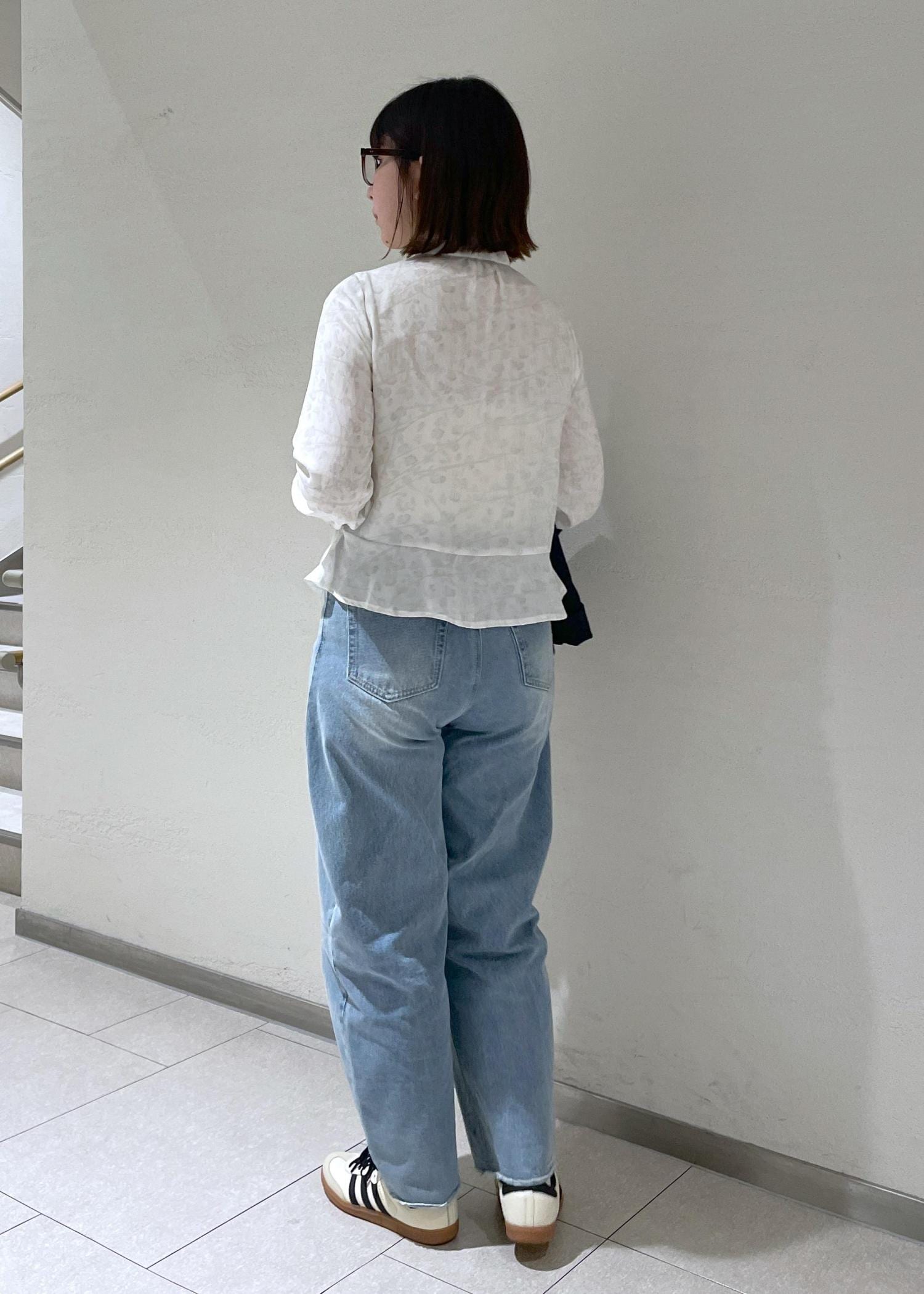 ブラウスはペプラムシルエットでインしなくてもOKなスタイル✨