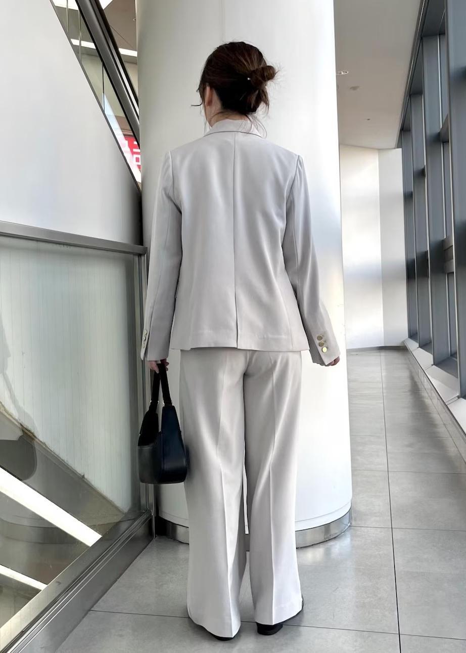 2タックのデザインで足のラインを拾いにくく体型カバーにも◎。 -