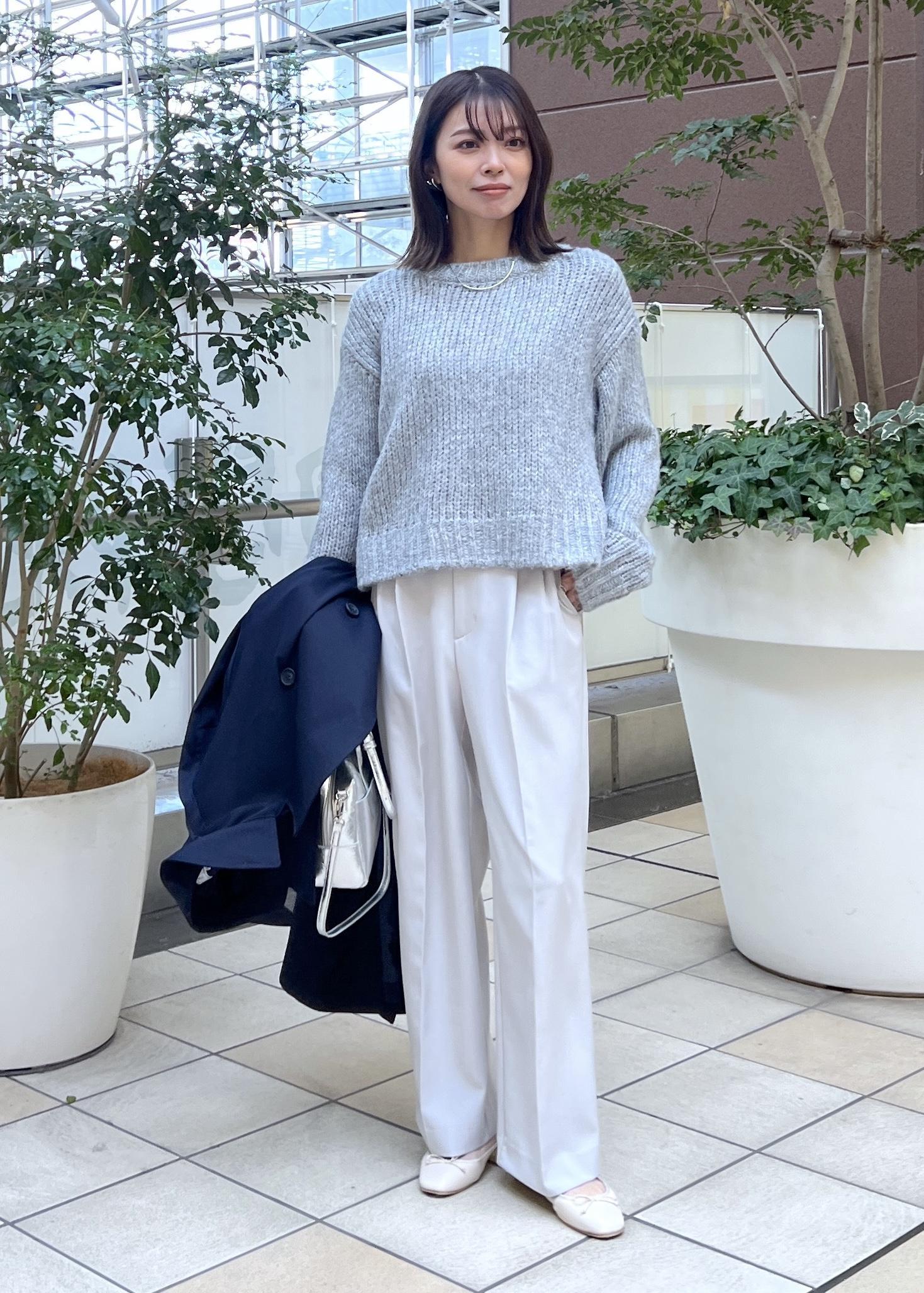 まだ肌寒さの残る時期にはニットをインして、シンプルなきれいめカジュアルスタイルに。