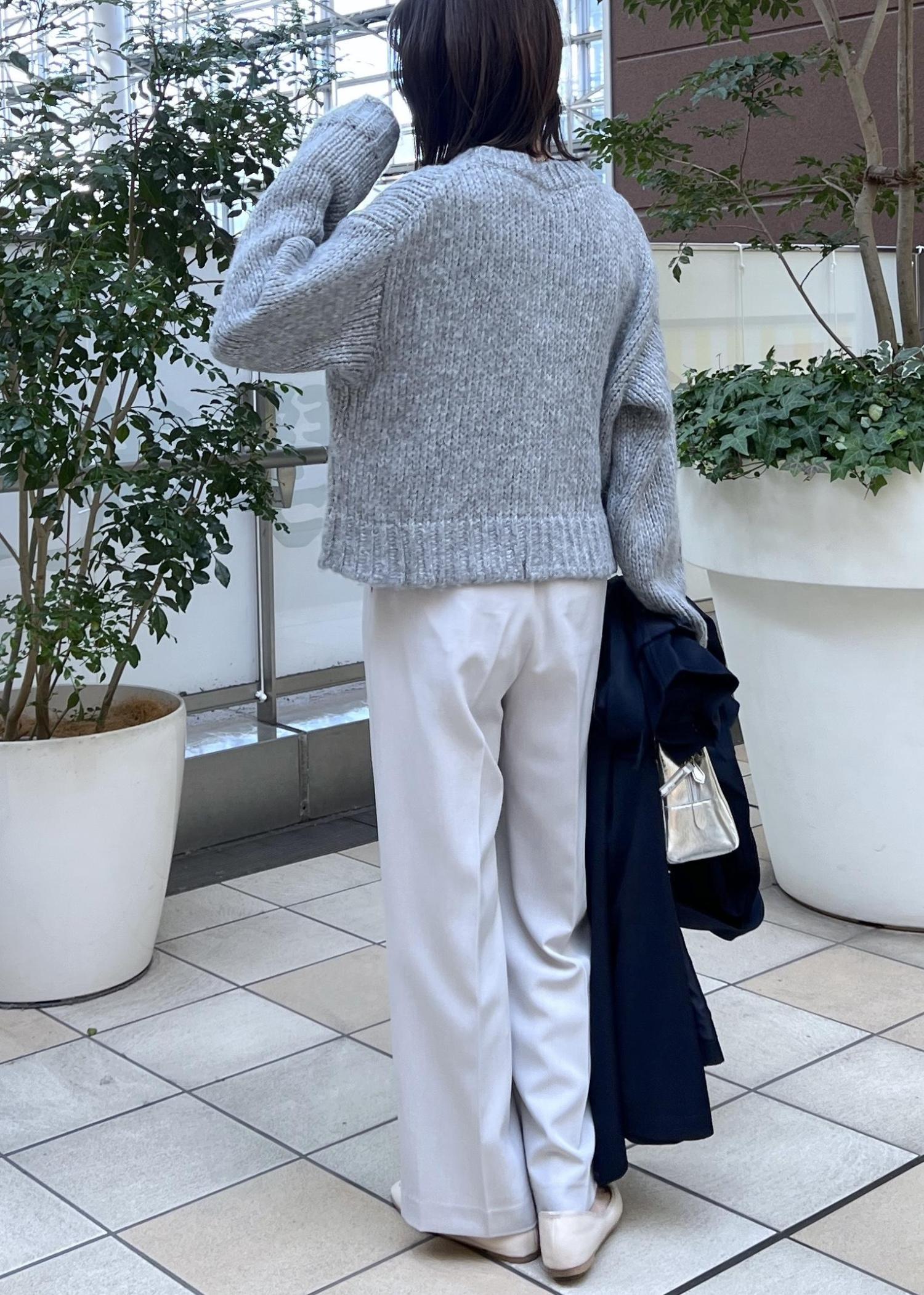 短めの着丈なのでウエストインしなくてもバランス良く合わせやすい丈感です。