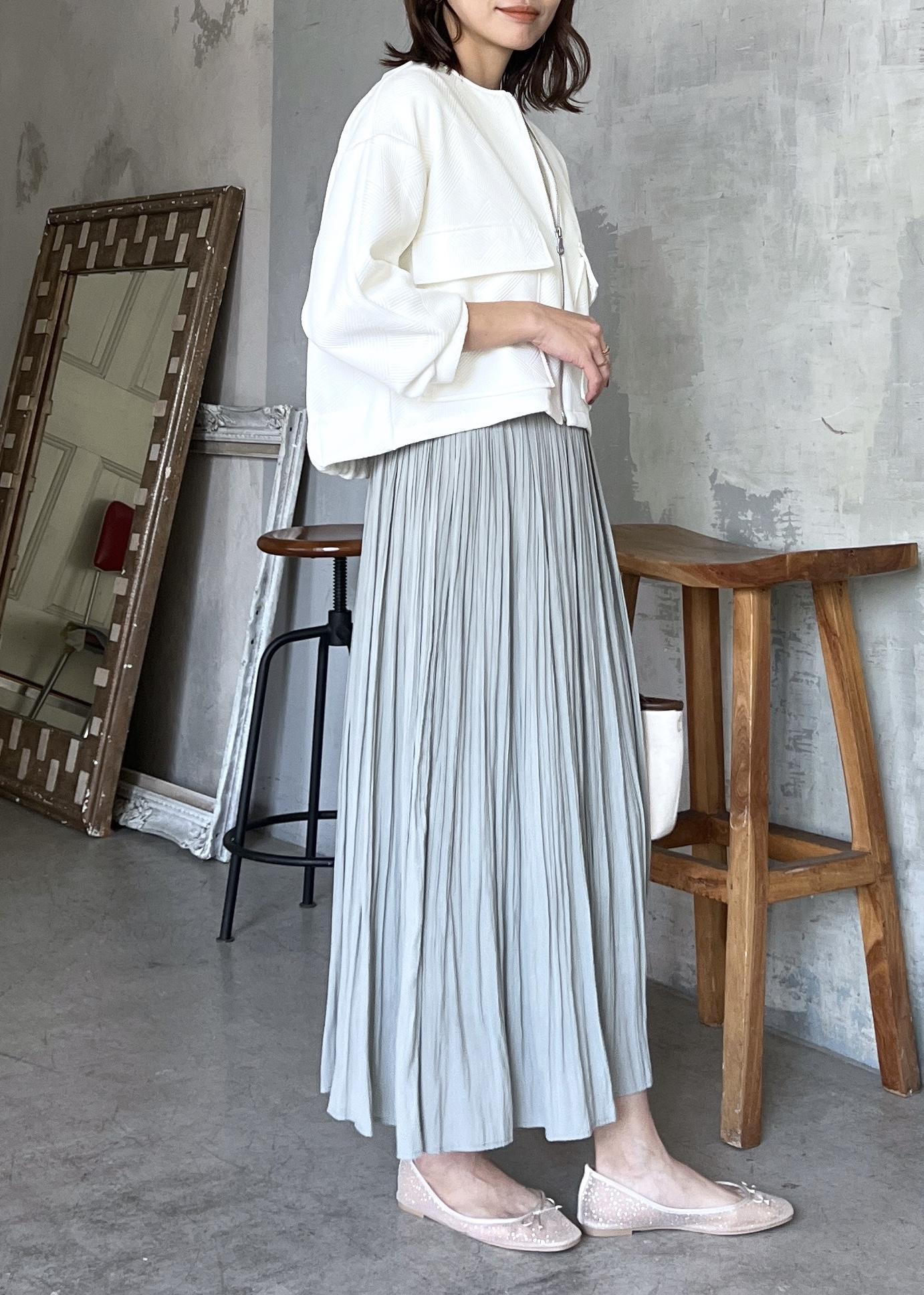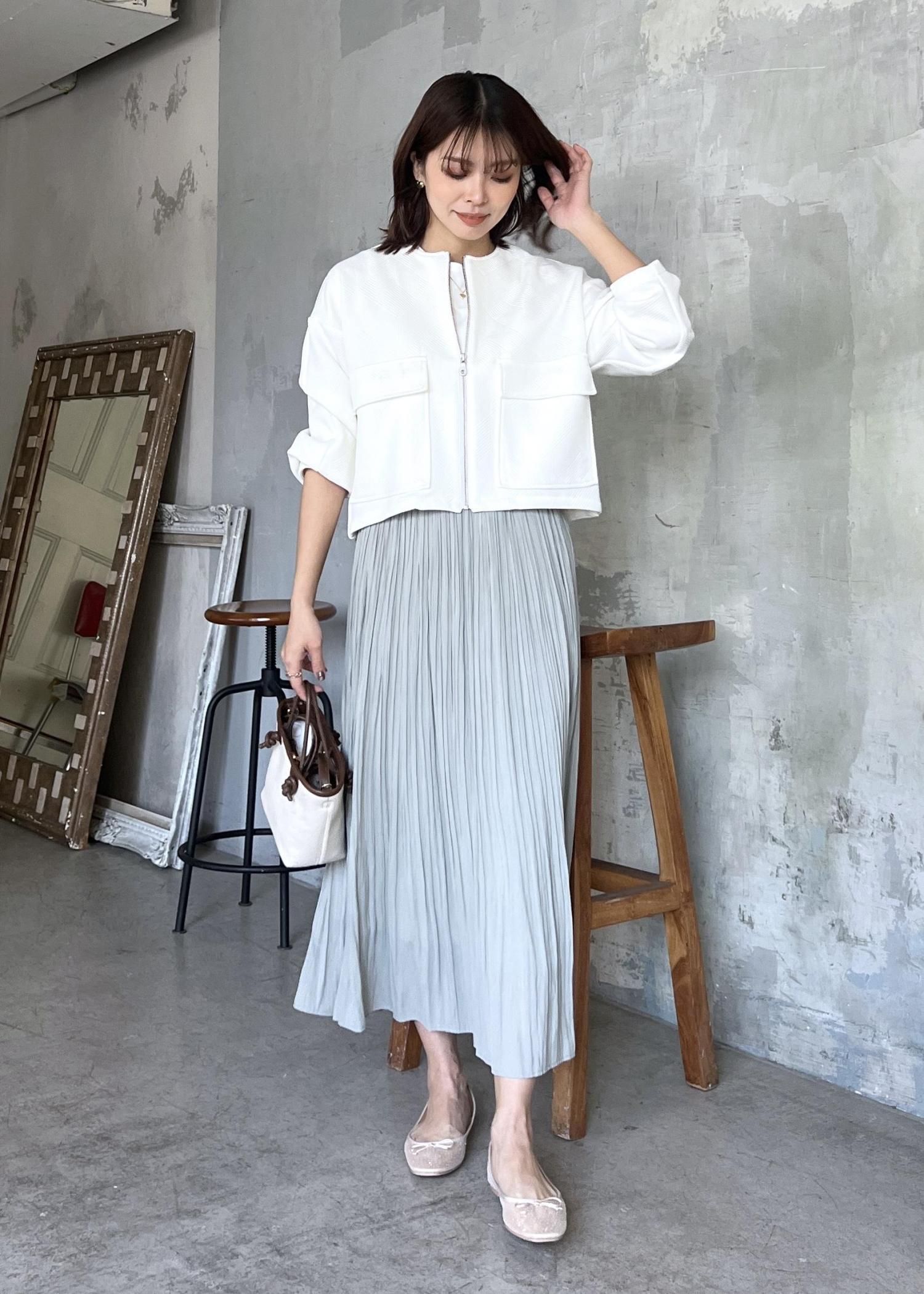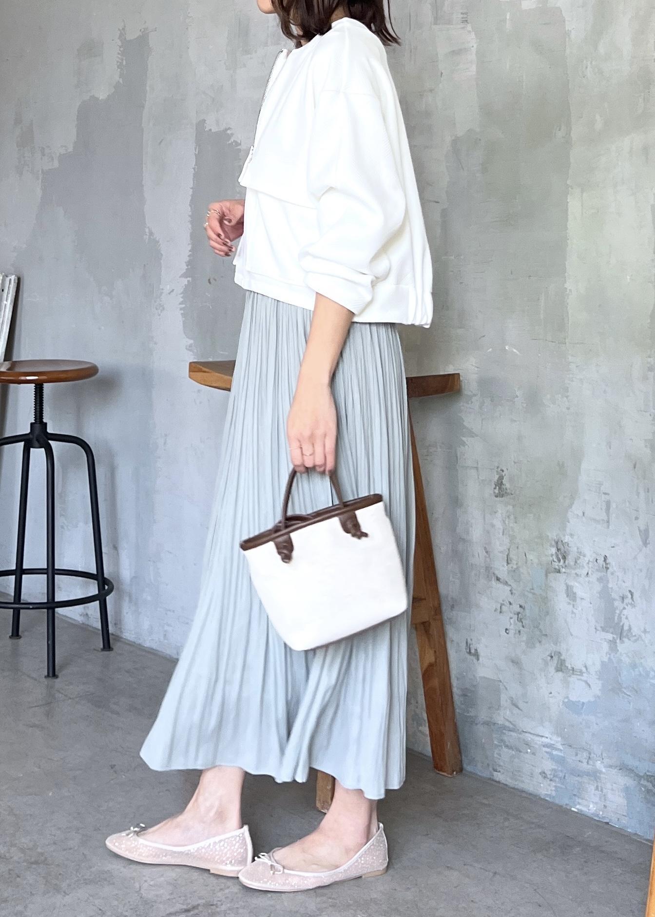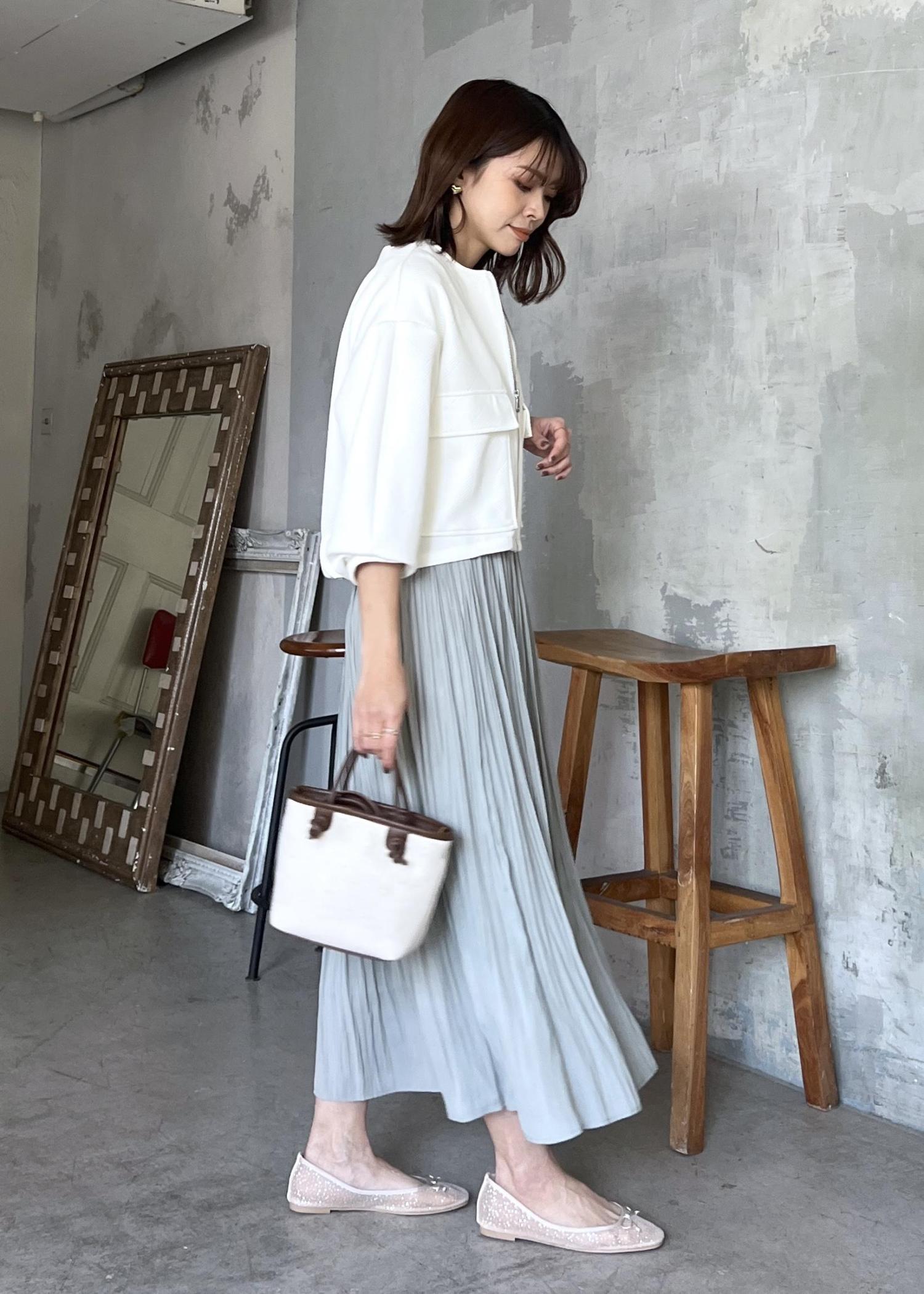 プリーツスカートできれいめカジュアルなスタイリングにしました。
