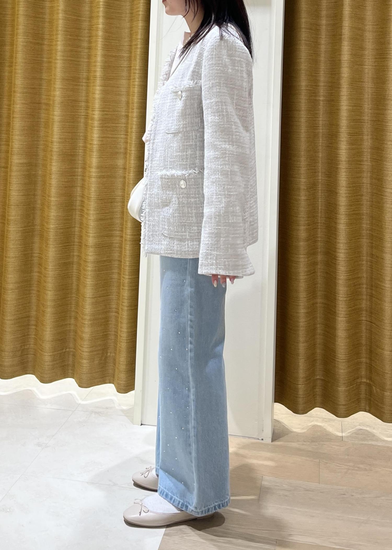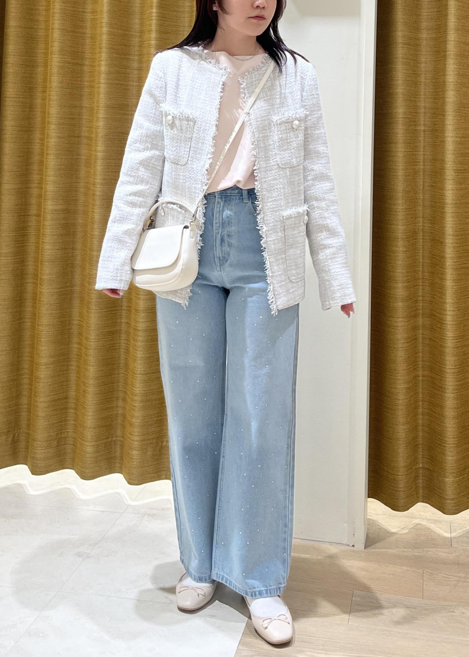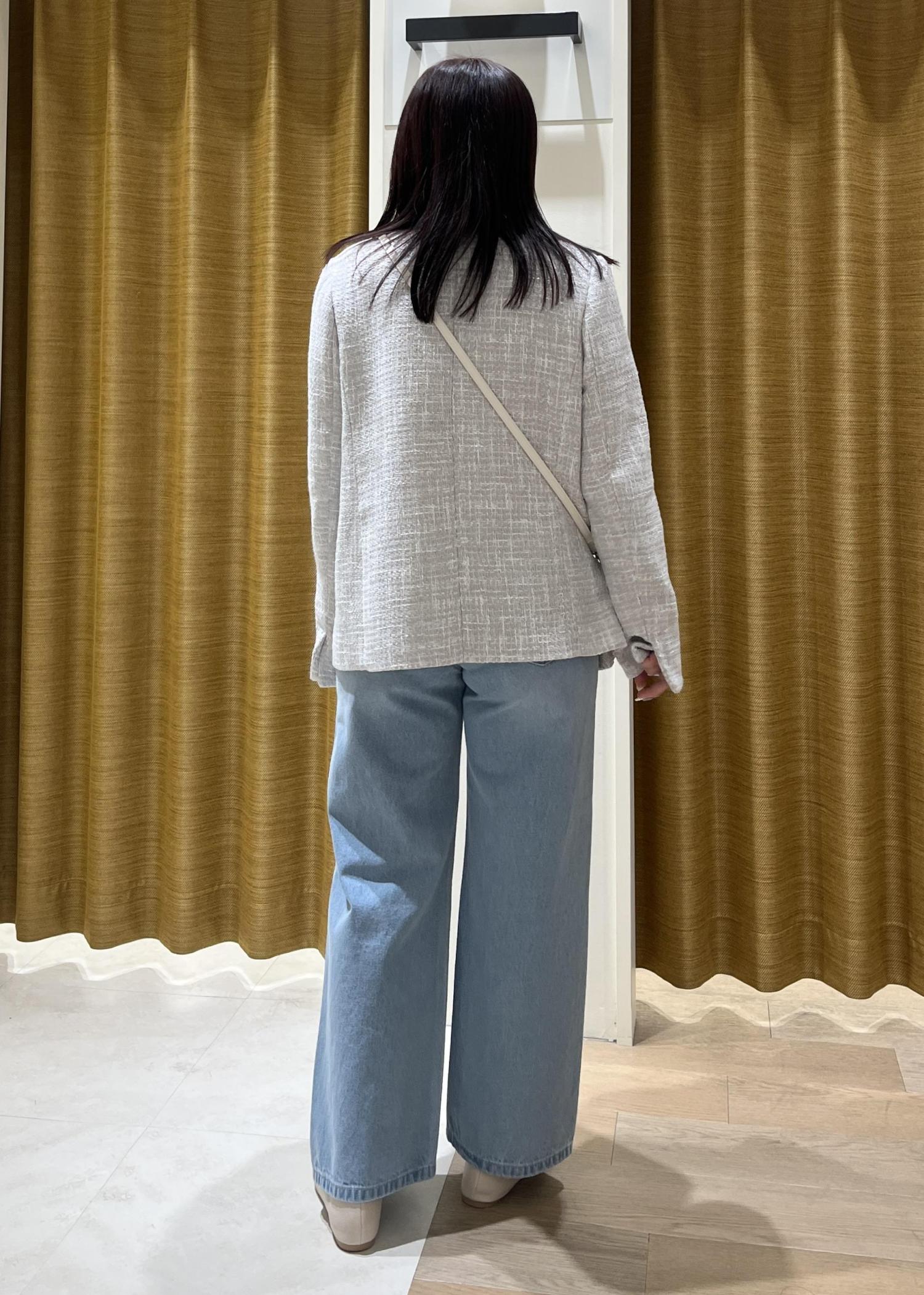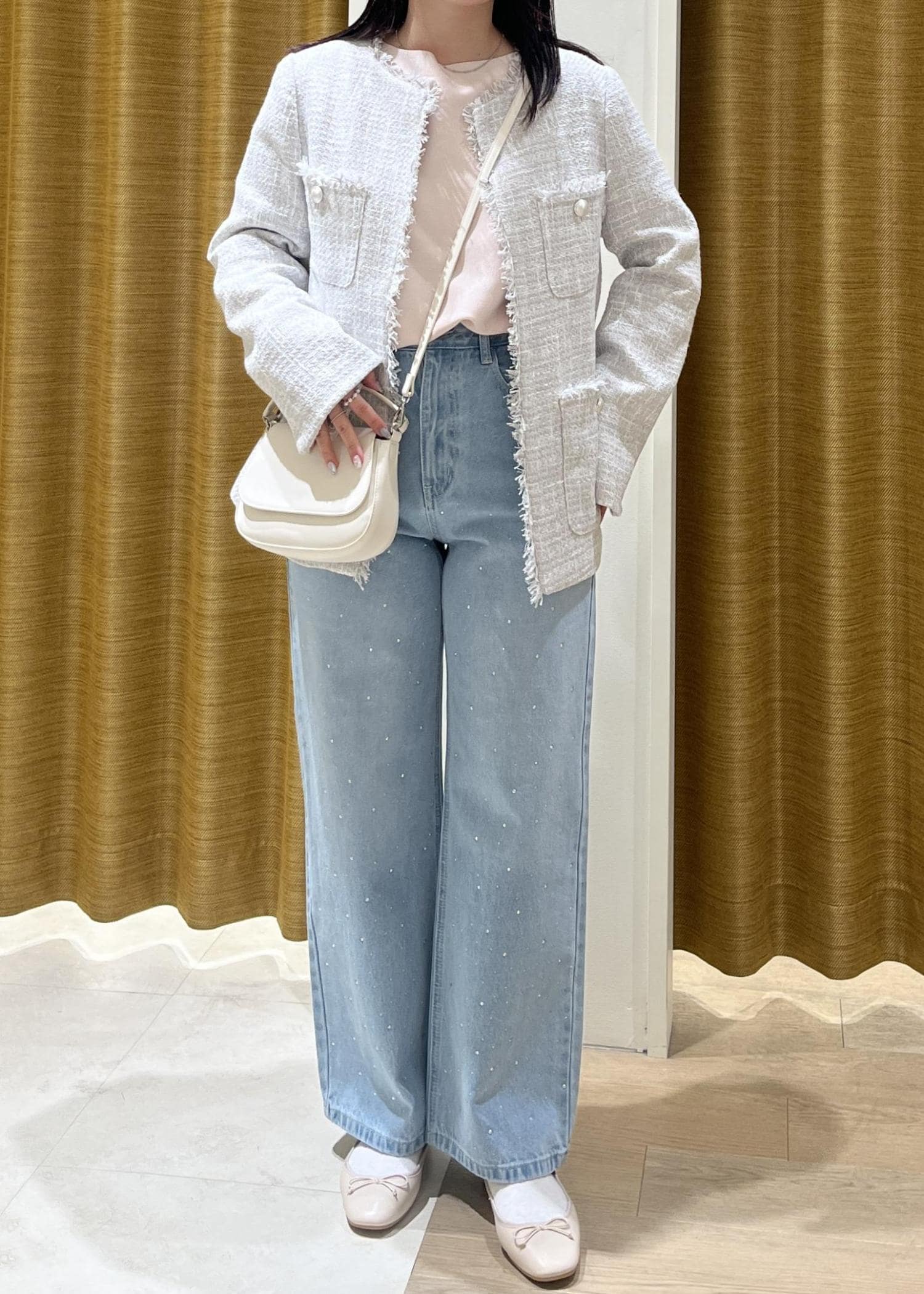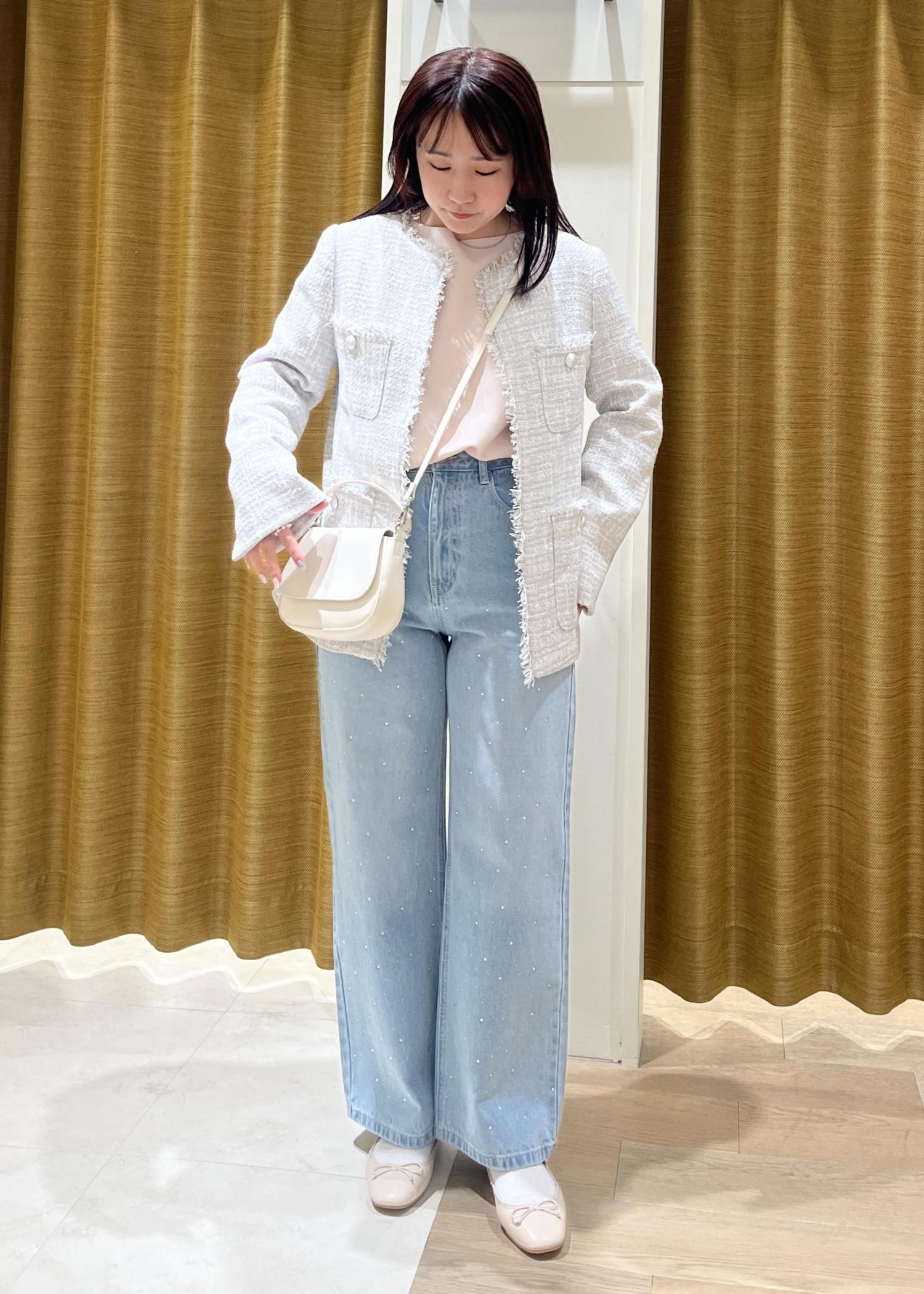 女性らしいさもありつつ、デニムでカジュアルダウンしたコーディネートです。