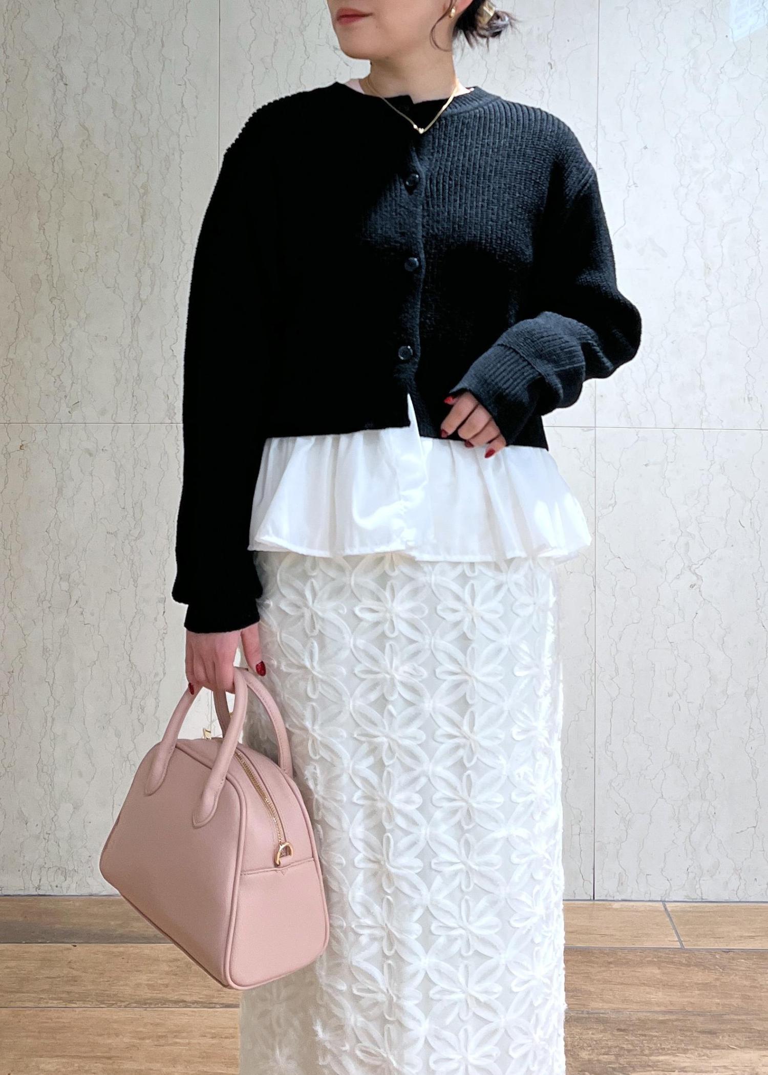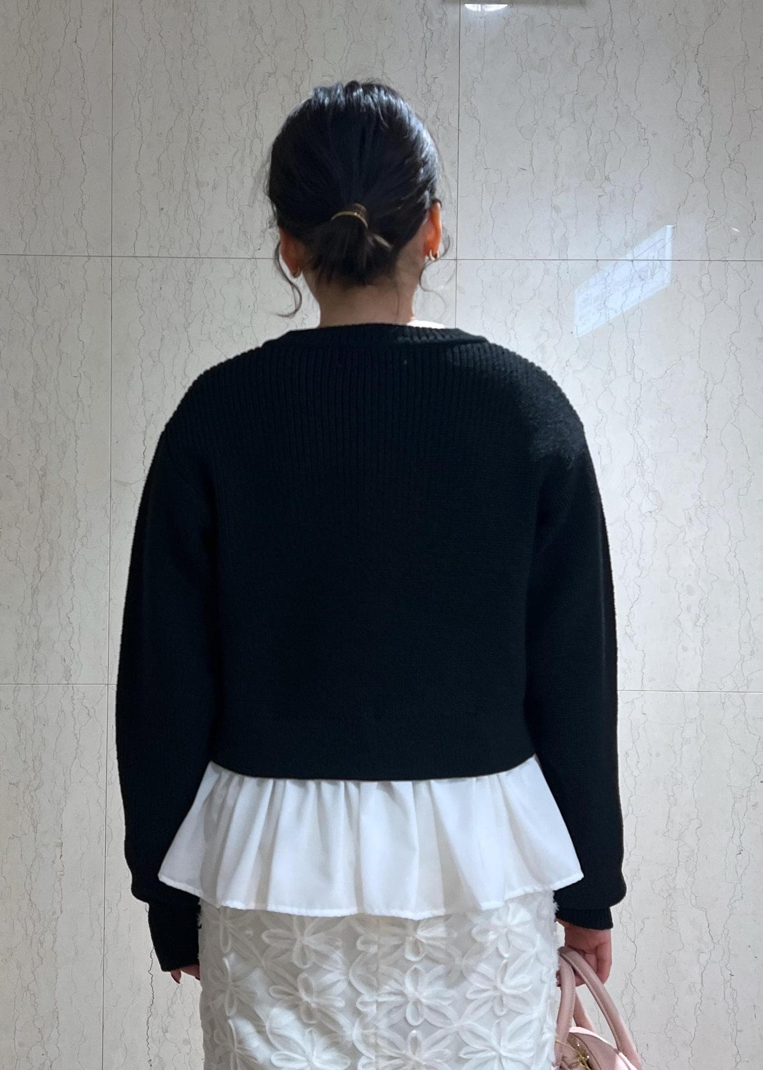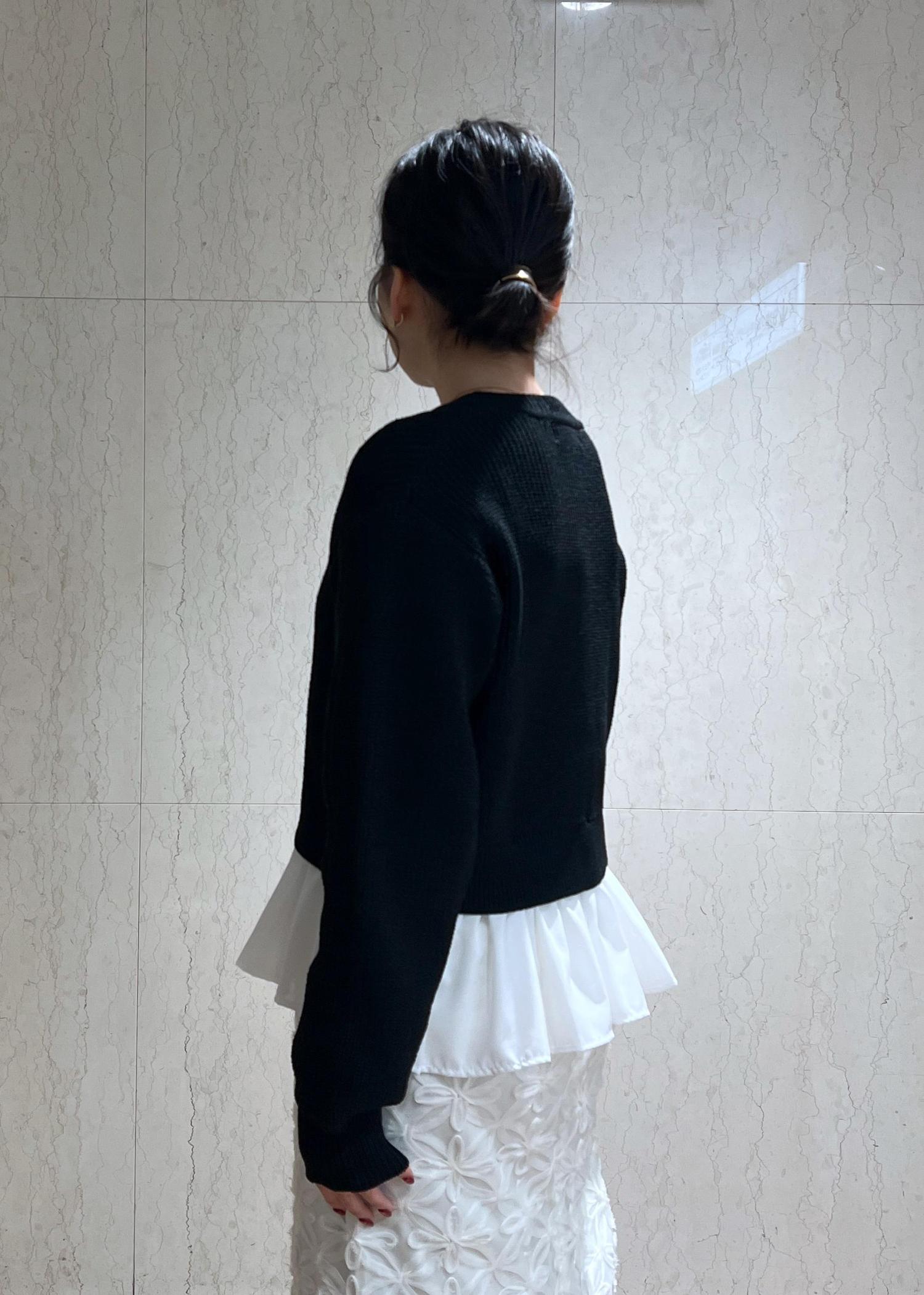 ペプラム部分は取り外しが可能で、シンプルなクロップド丈のカーディガンとしても着用可能です。