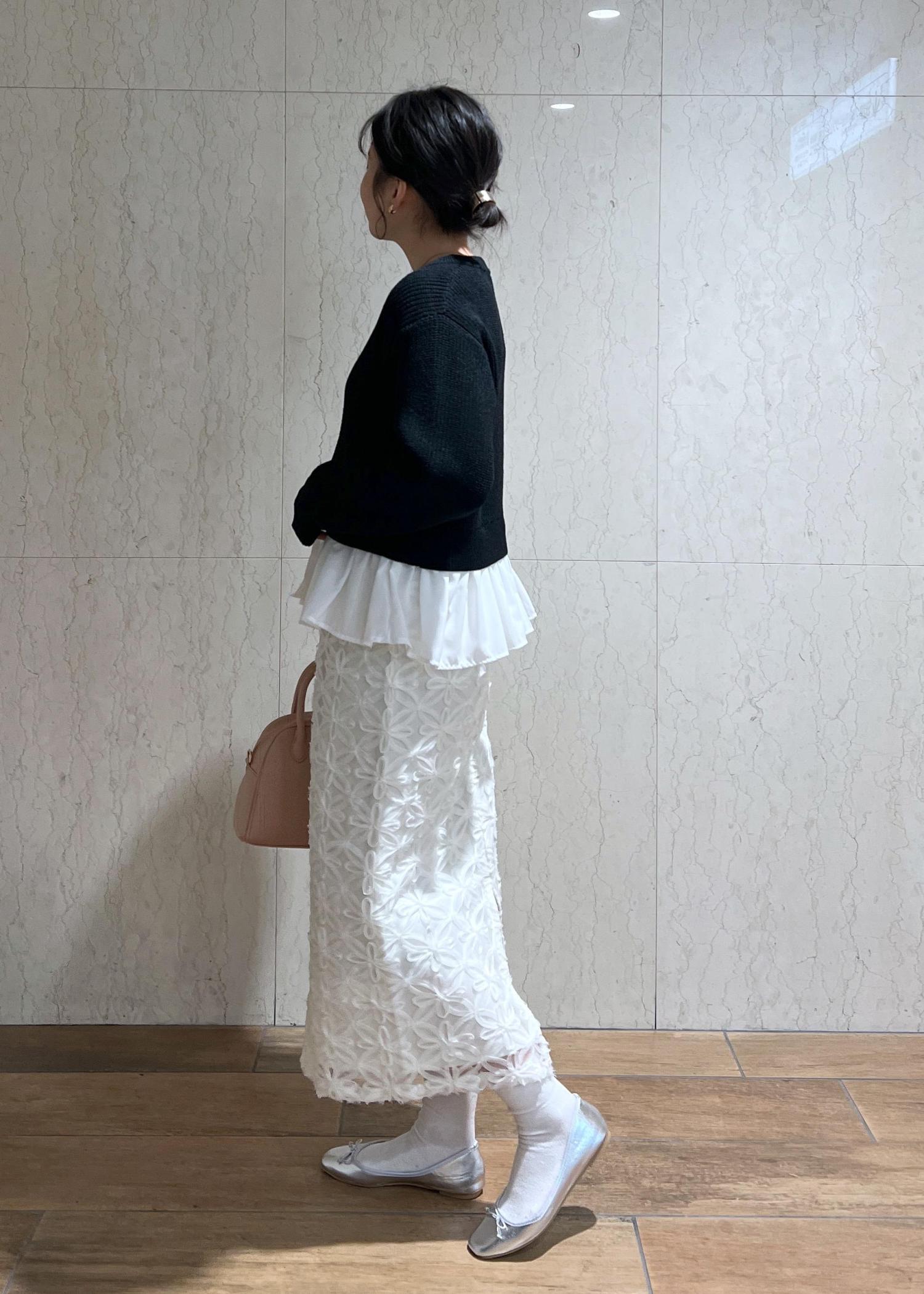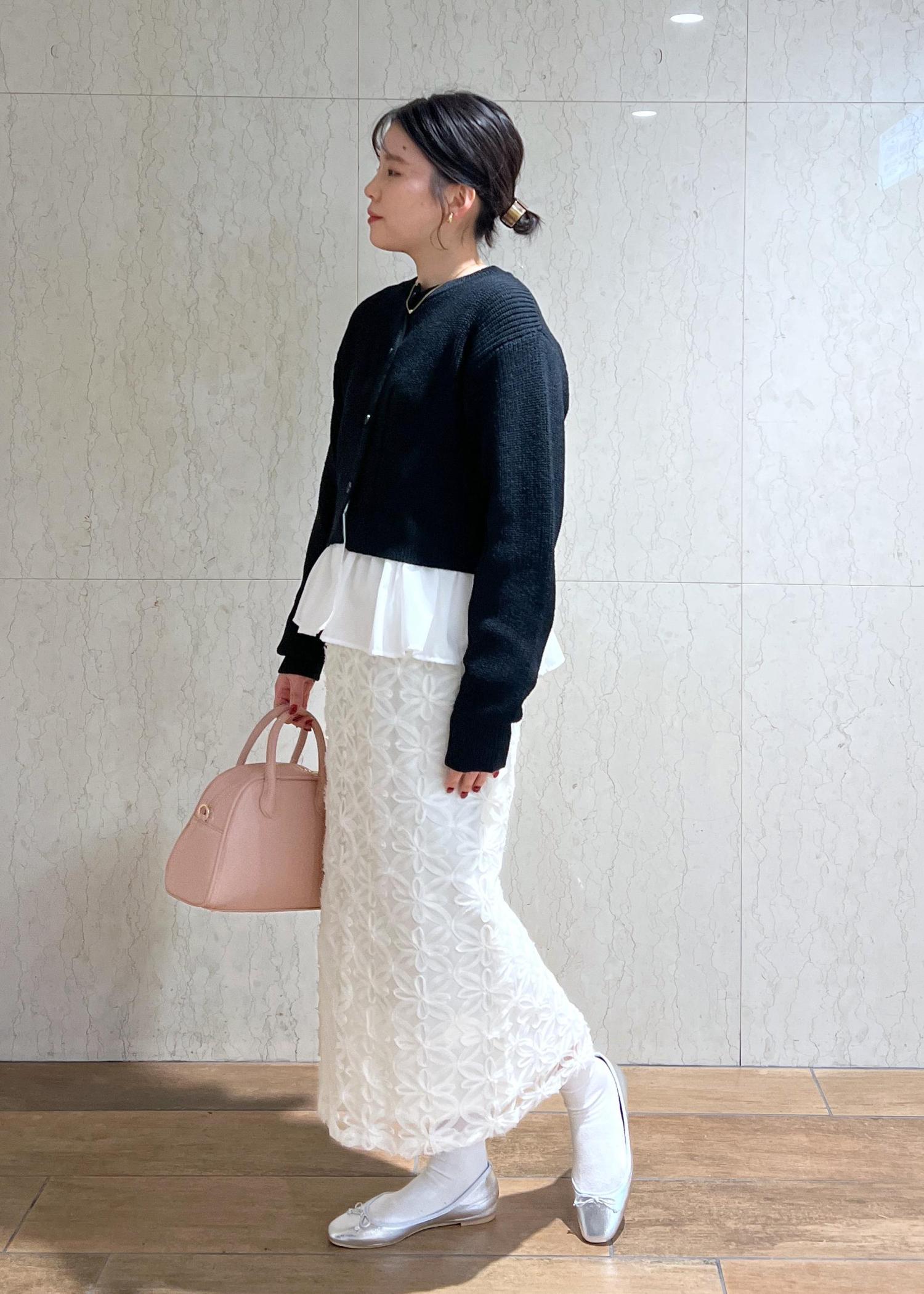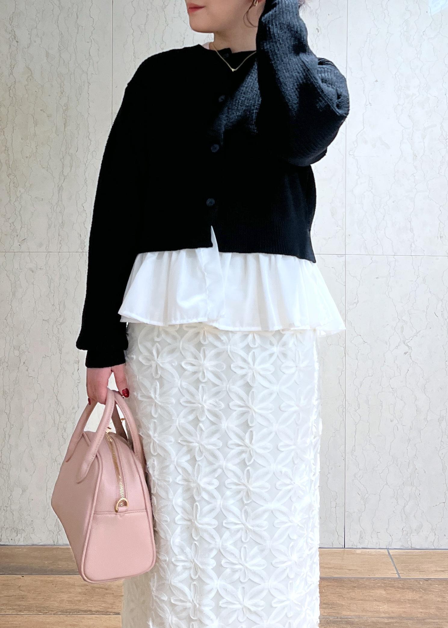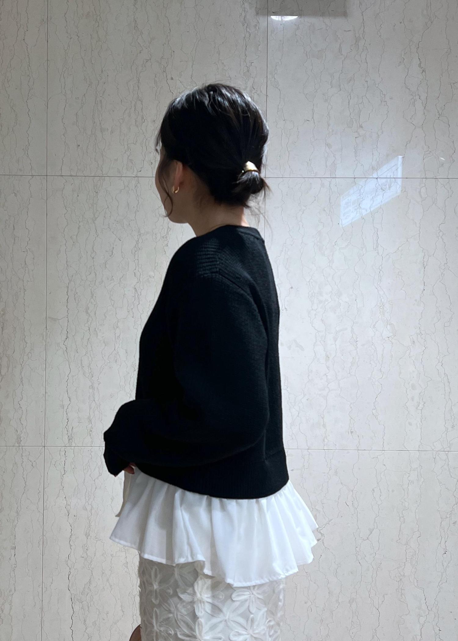 ペプラム部分は取り外しが可能で、シンプルなクロップド丈のカーディガンとしても着用可能です。
