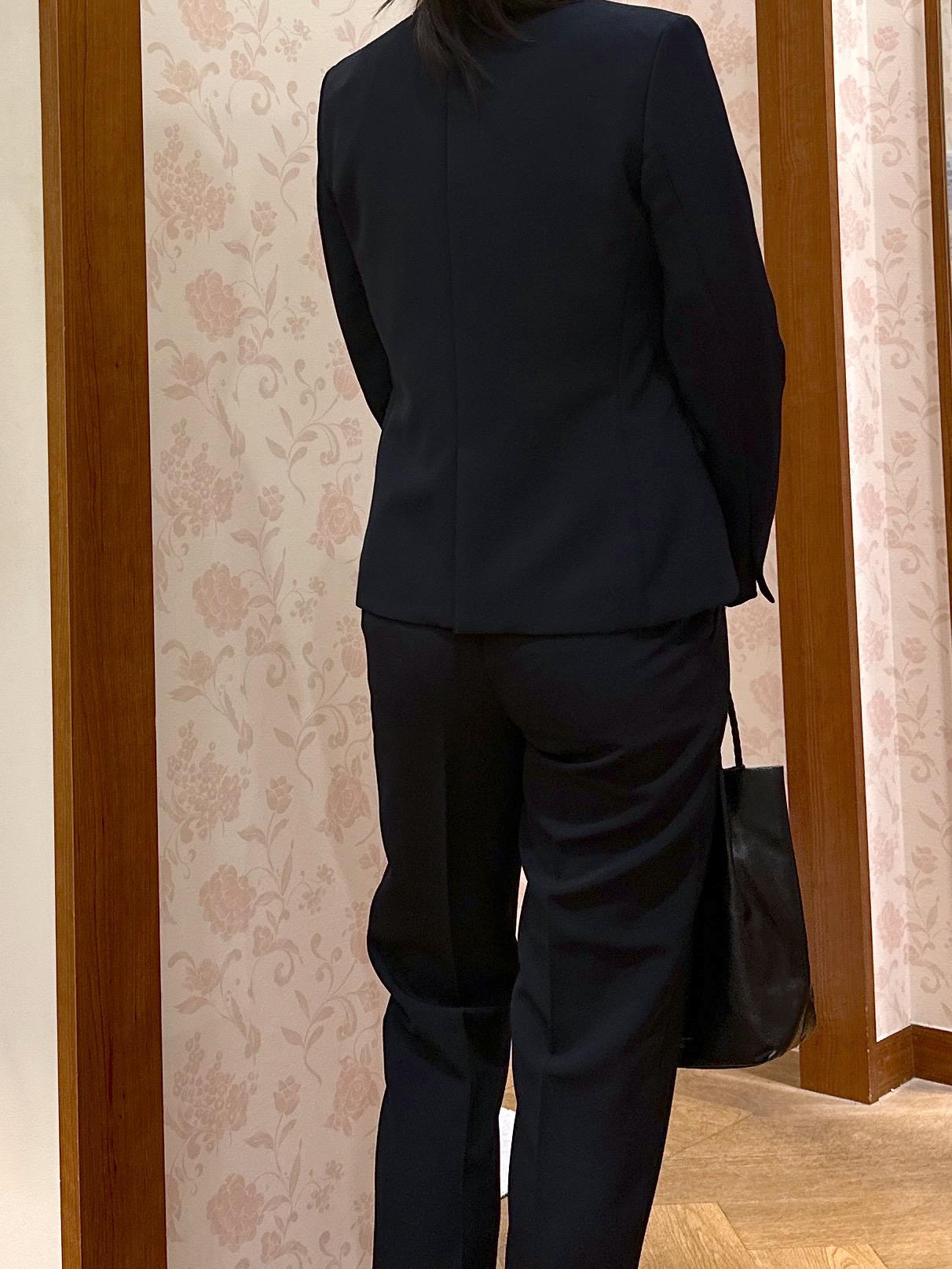 中のブラウスをブルーにして、爽やかな雰囲気にしてみました。