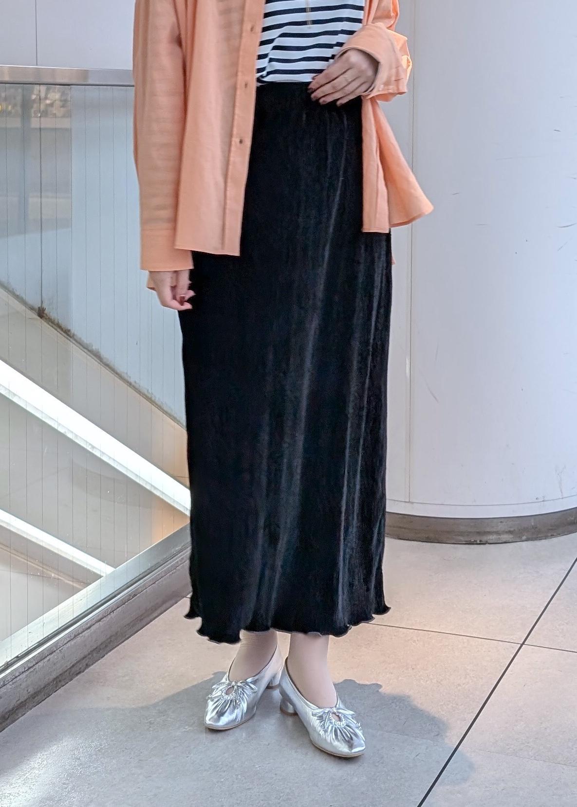 アウトレットROPÉ PICNICベロアプリーツタイトロングスカートブラック / 38¥3,498レビュー柔らかく伸縮性があるためアイラインシルエットですが楽に着用できました。