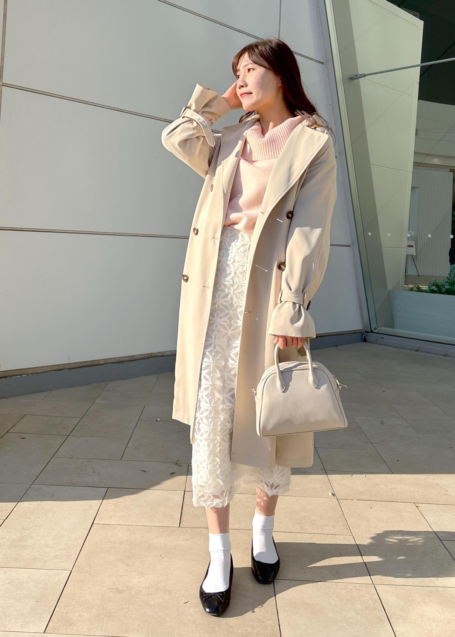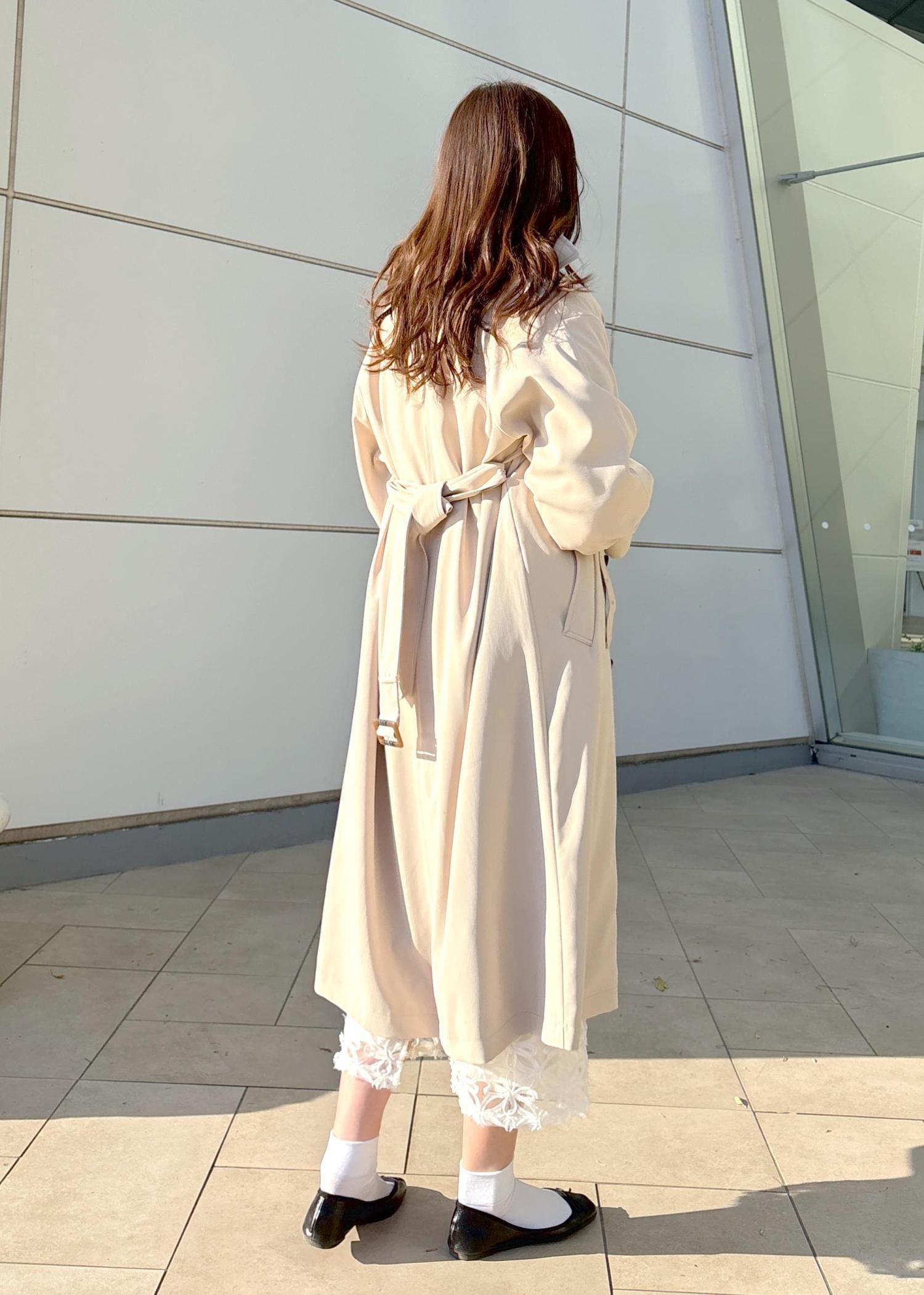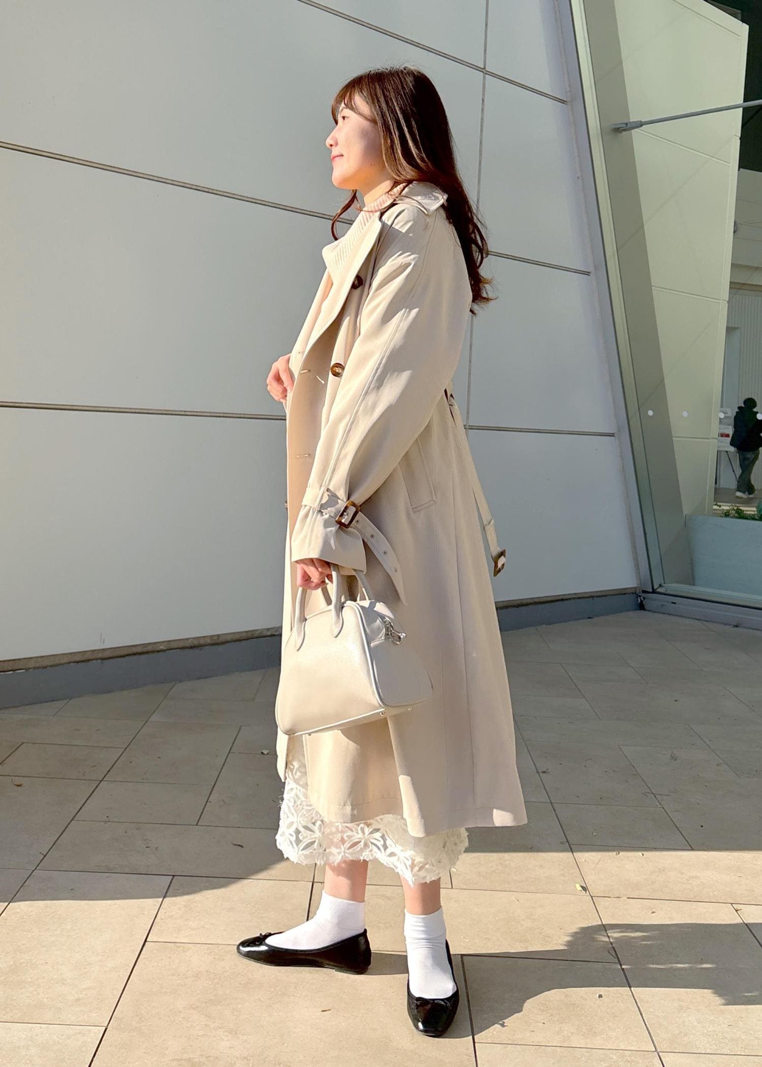 ROPÉ PICNIC撥水加工・花粉ガード/トレンチコートベージュ / 38¥14,300レビュー花粉ガード機能付きのトレンチコートで春におすすめです。袖口はキュッと絞られており、フェミニンな印象です。着丈はふくらはぎにかかるくらいで高身長さんにもおすすめです◎