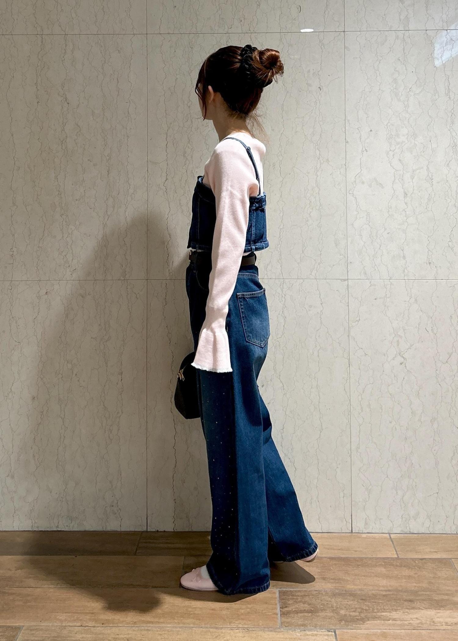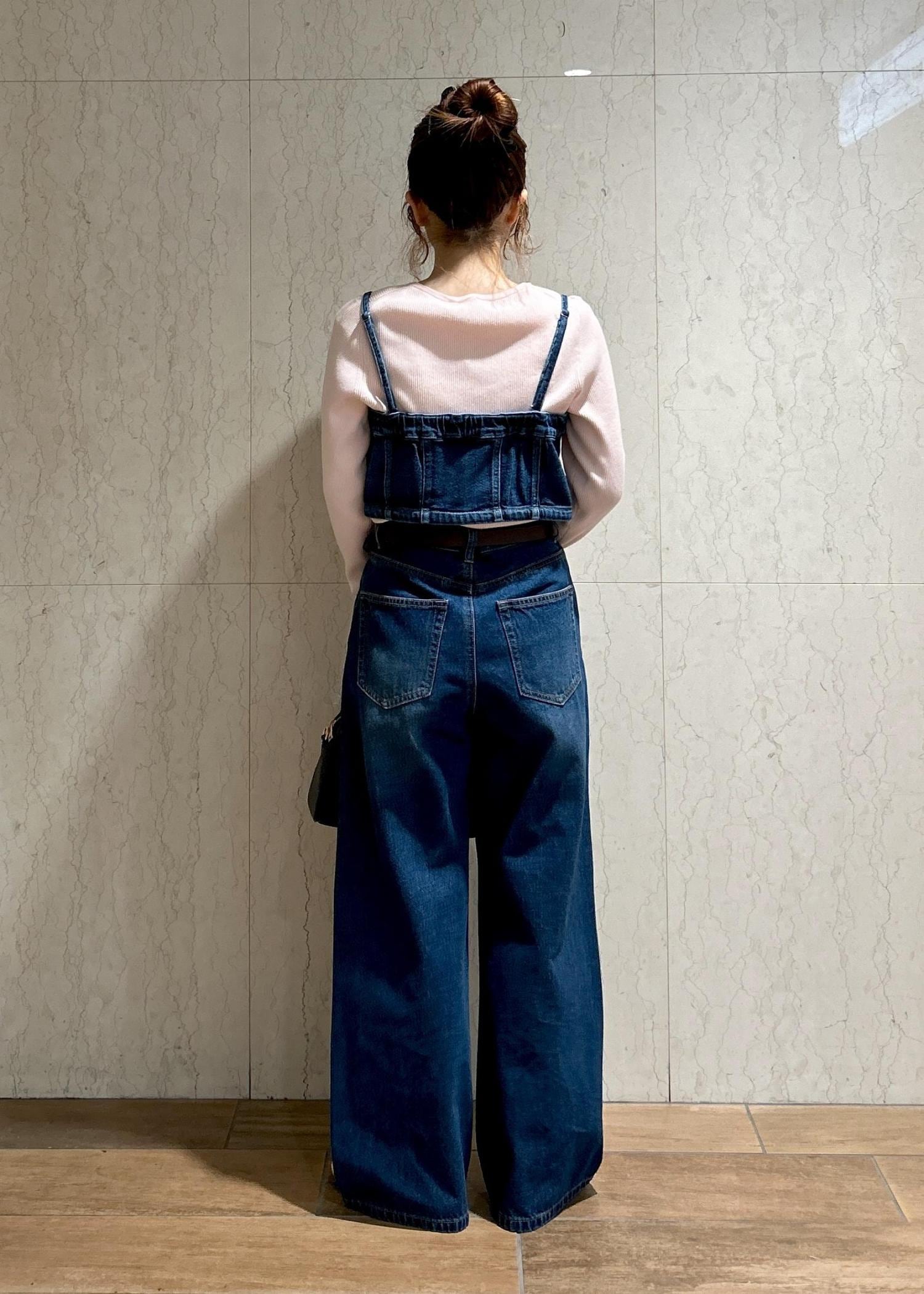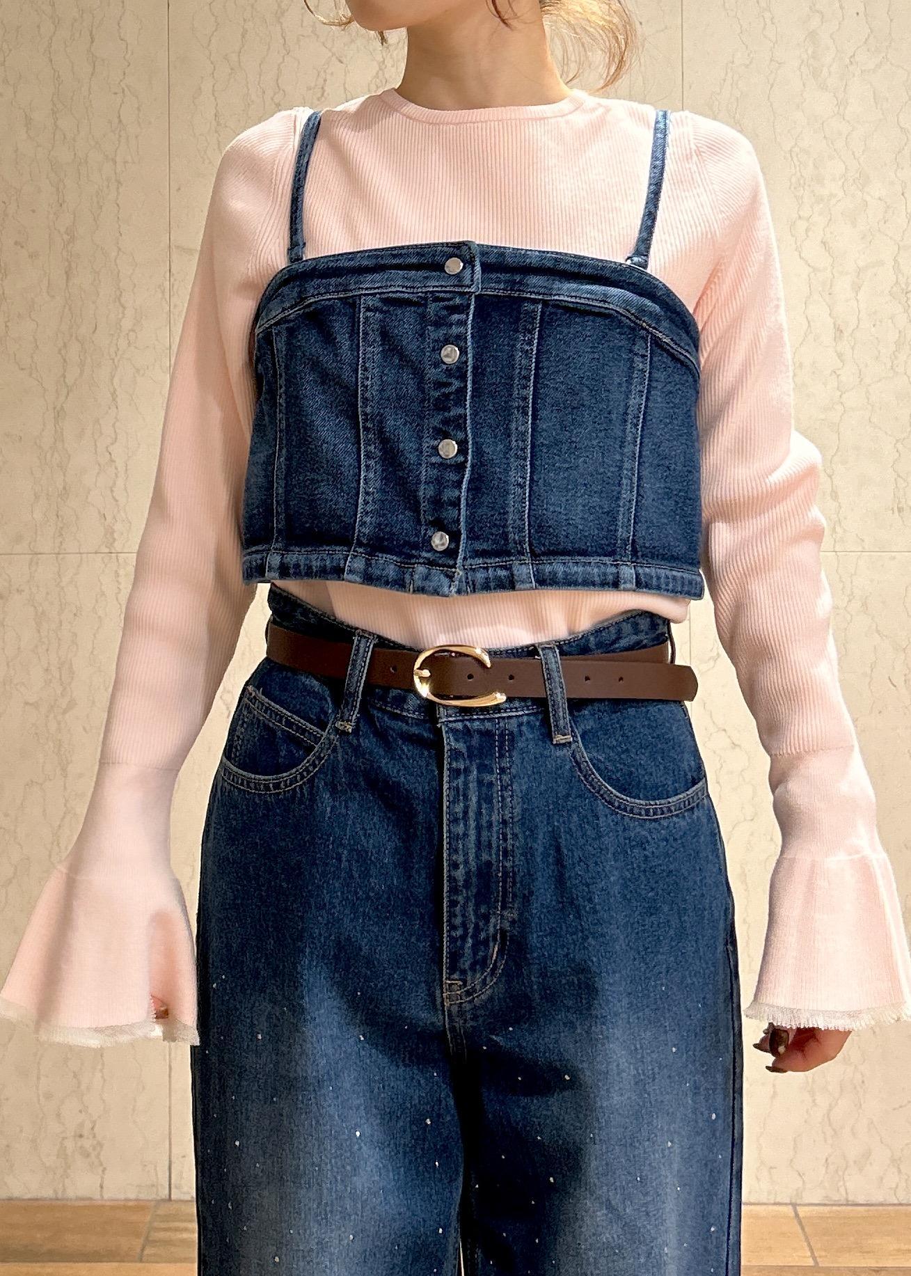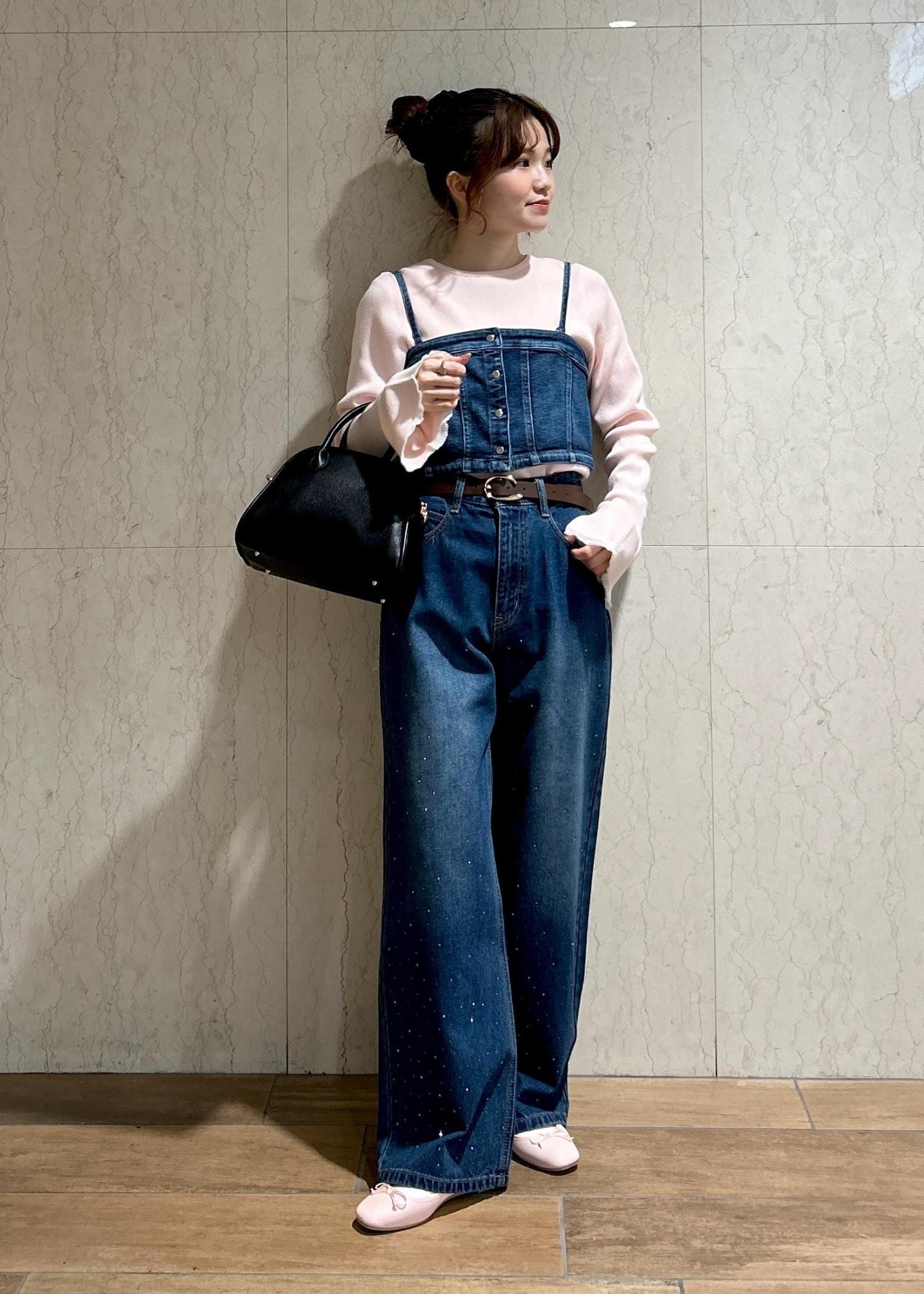 デニムのビスチェにビジューデニムパンツを合わせてセットアップ風に着てみました!