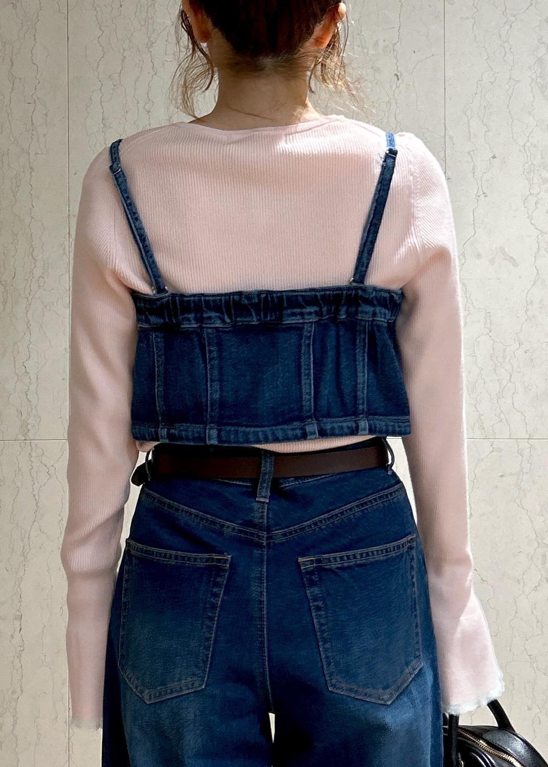 アウトレットROPÉ PICNICデニムビスチェブルー / 38¥3,993レビュー丈が短めなデニムビスチェで、ブラウスやTシャツ、ワンピースなど幅広く合わせていただける万能ビスチェです。
