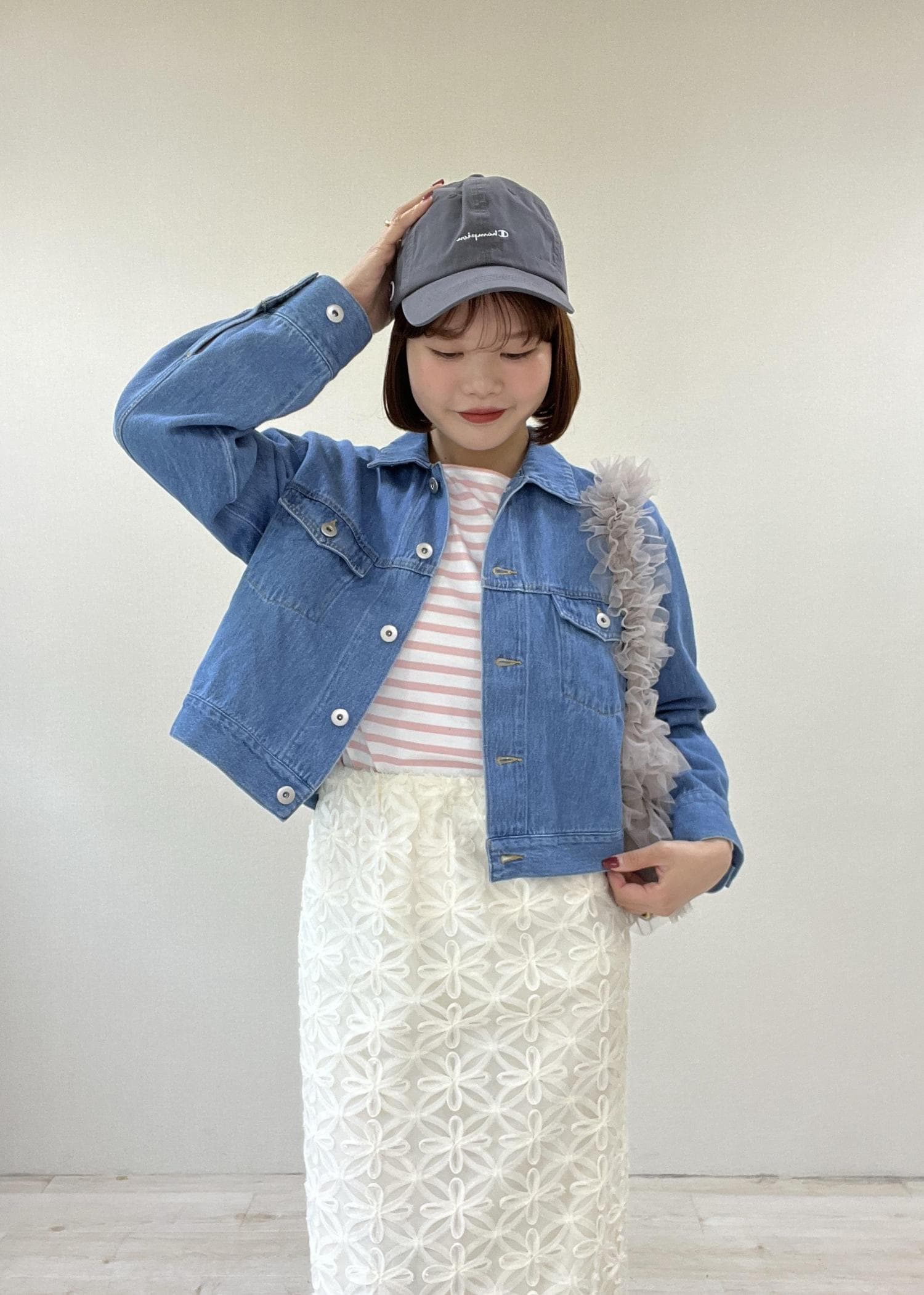 春らしい装いがグッと増すデニムジャケットをメインに柄×柄のコーディネートを組んでみました!