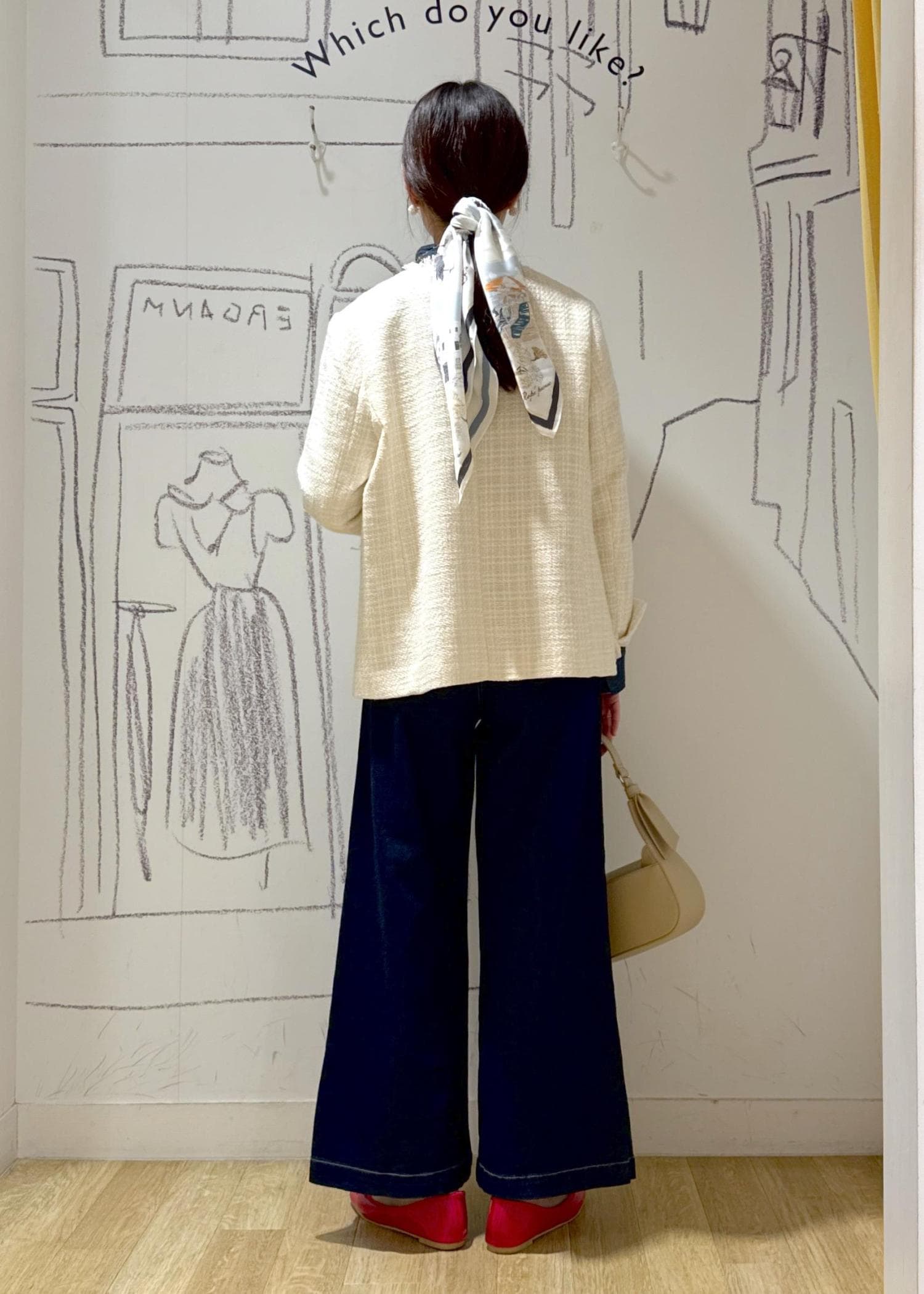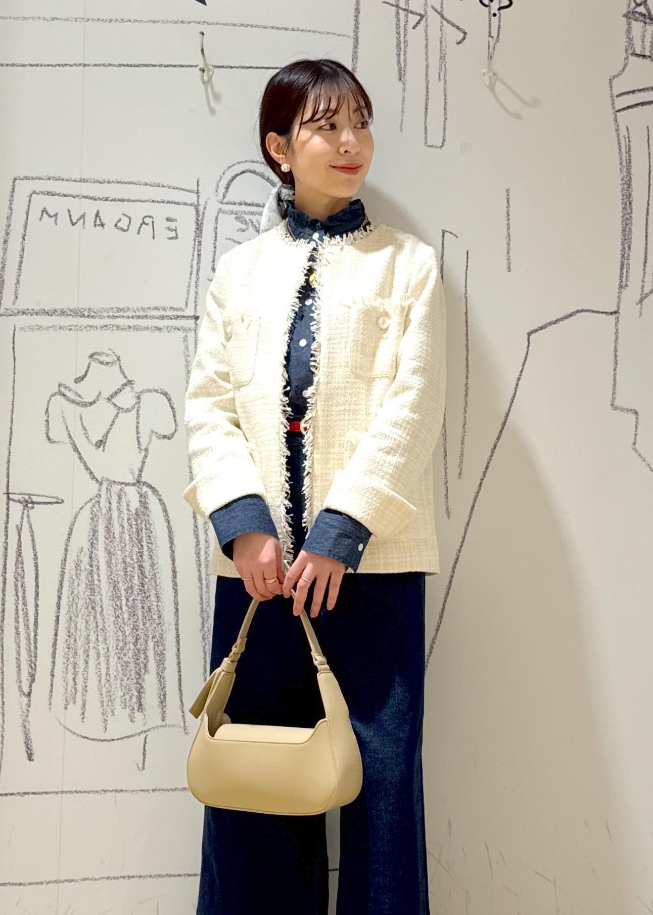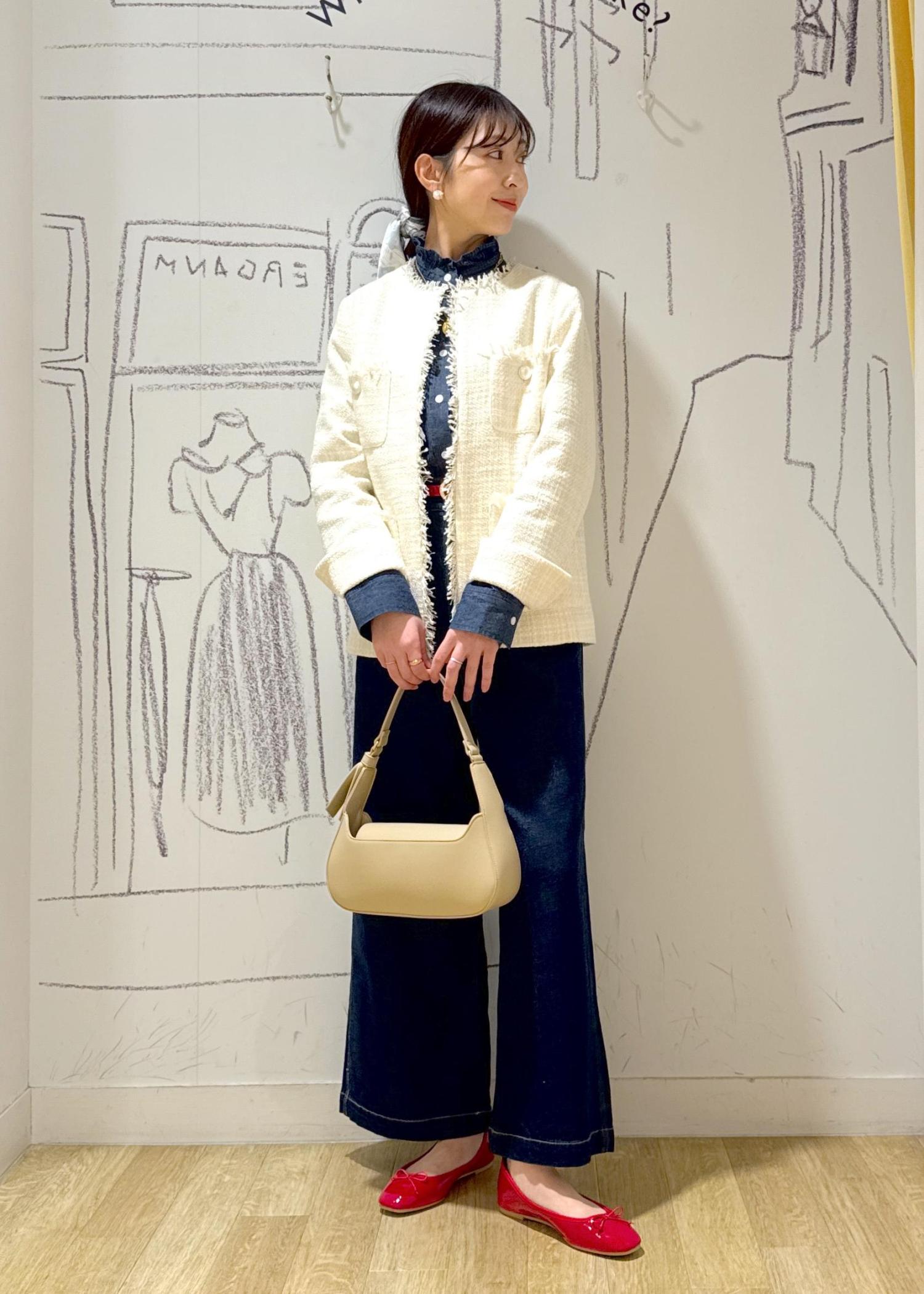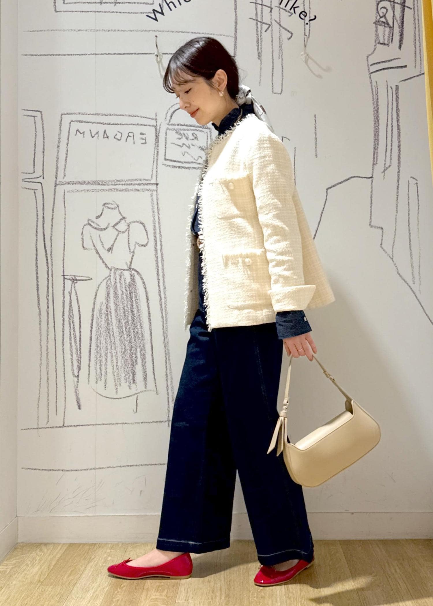 ROPÉ PICNICセレモニー・通勤対応/ツイードジャケット/リンクコーデオフホワイト / 36¥10,439レビュー着丈はお尻にほんの少し掛かる短すぎない長さです。普段38サイズですがこちらは36サイズでも窮屈さはなく羽織れました。より綺麗めに着こなすならこちらのサイズが良さそうです。生地の硬さは特に気になりませんでしたのでデイリー使いにもお勧めです。