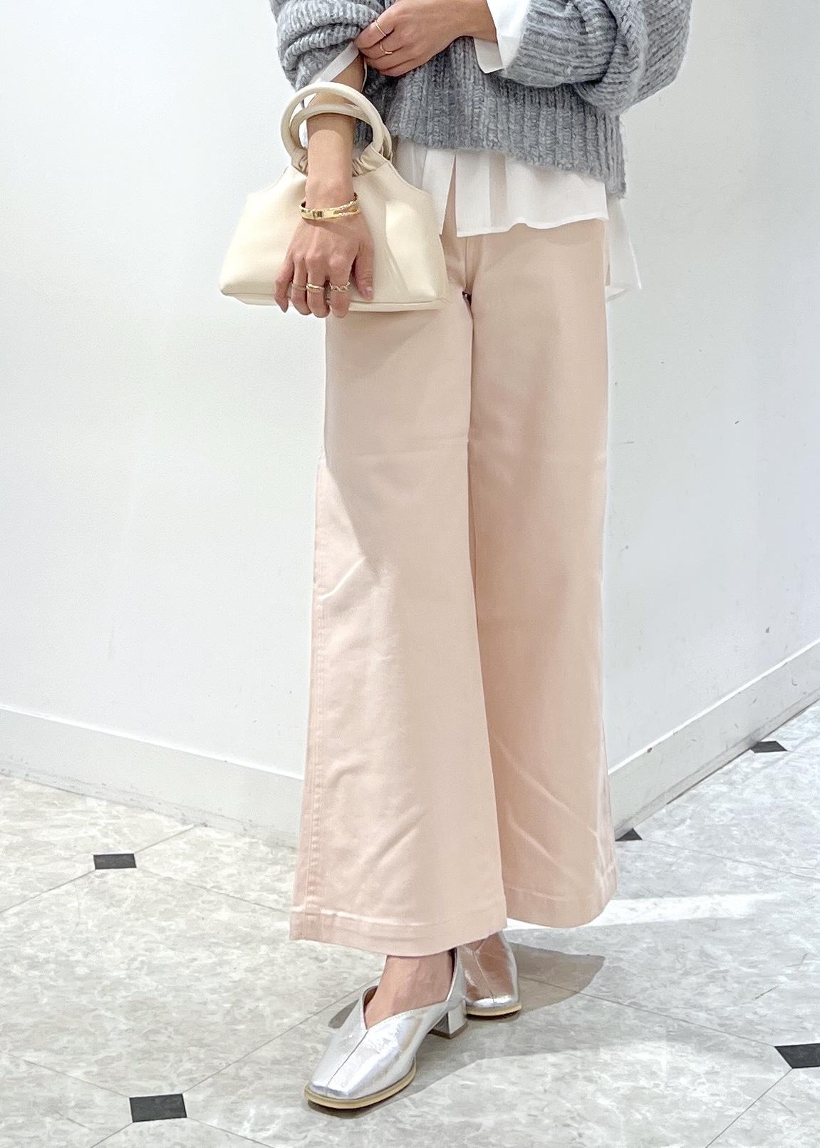 より春らしい雰囲気にしてくれるピンクカラーのデニムで、明るい春コーデにしました。