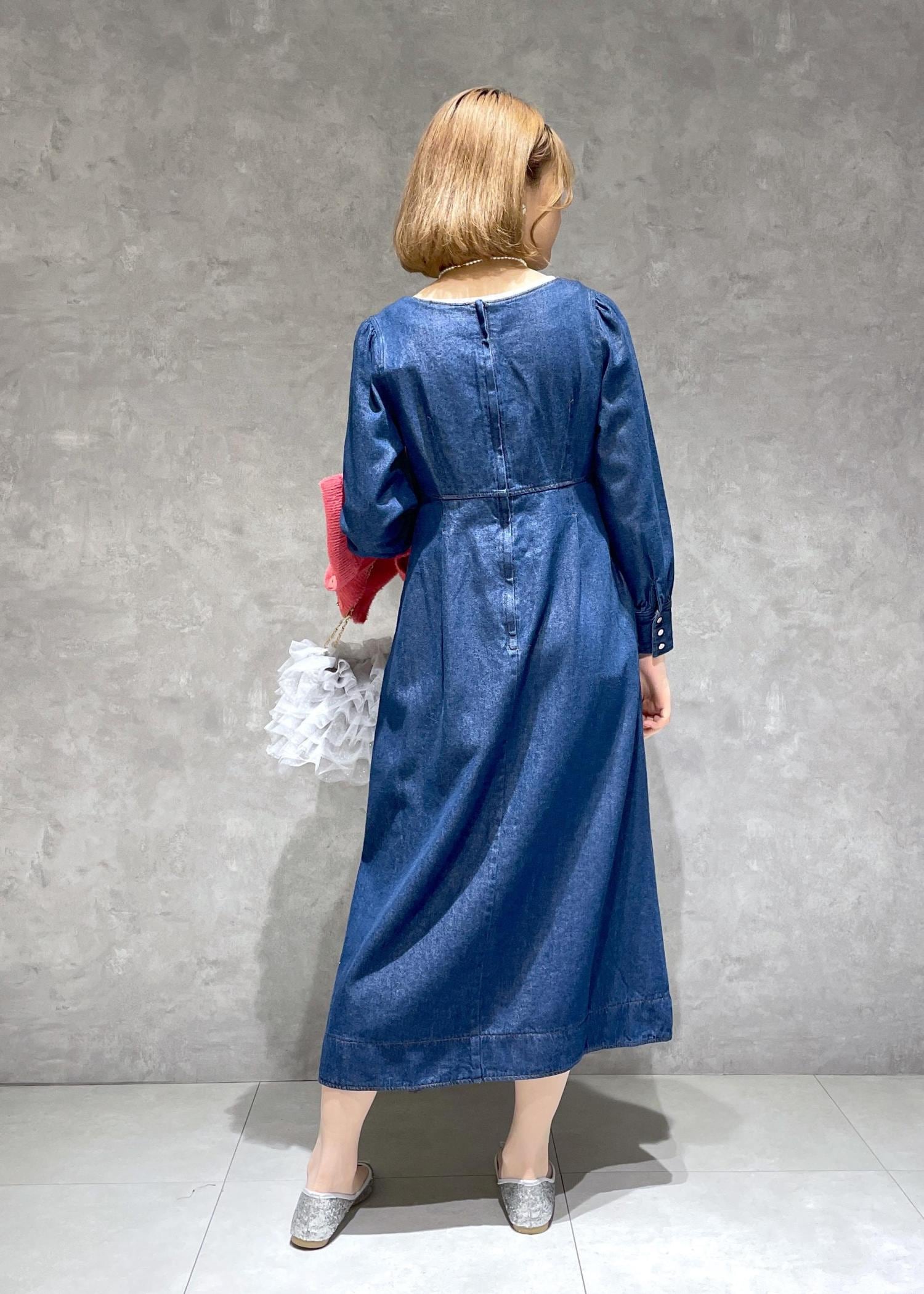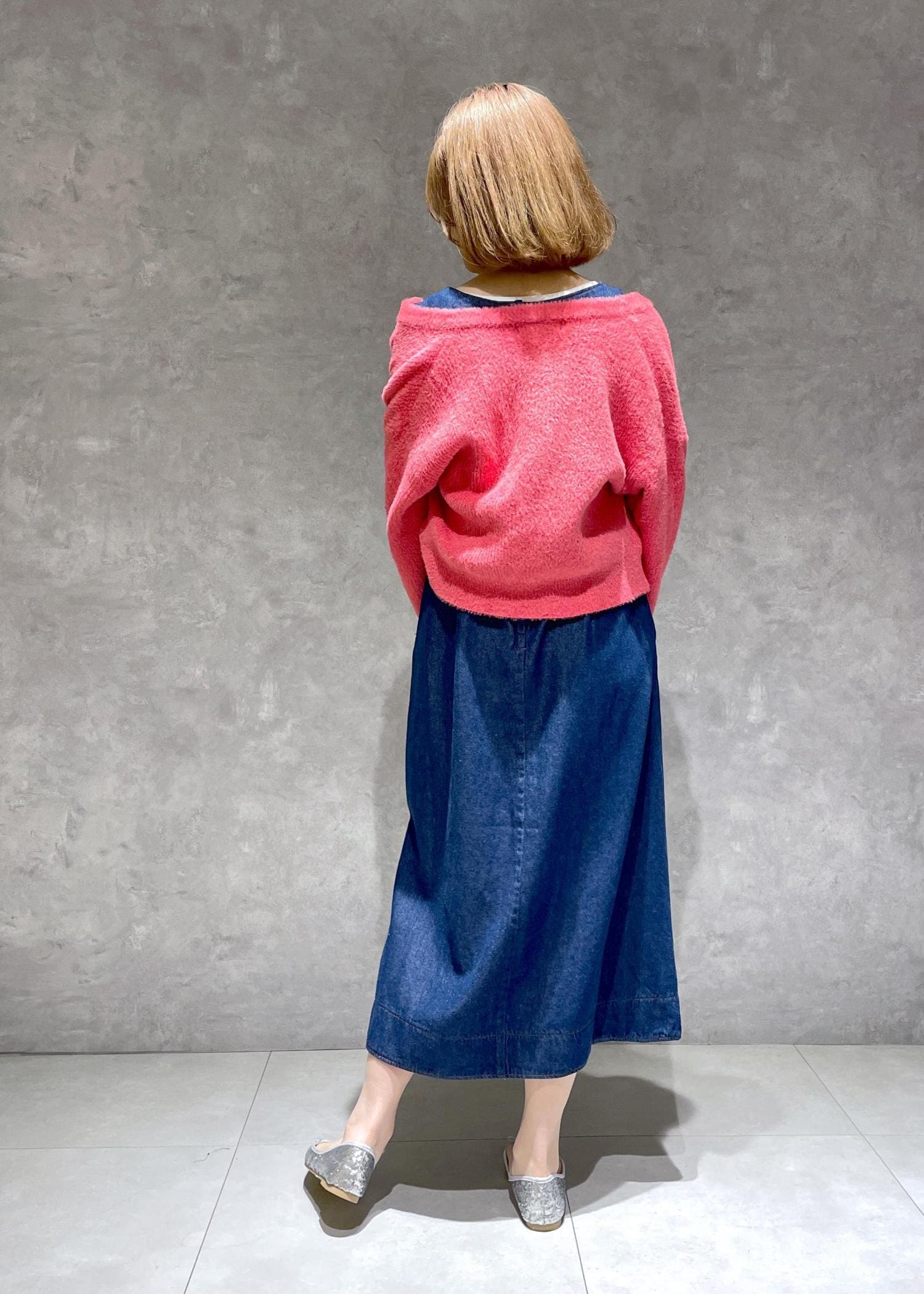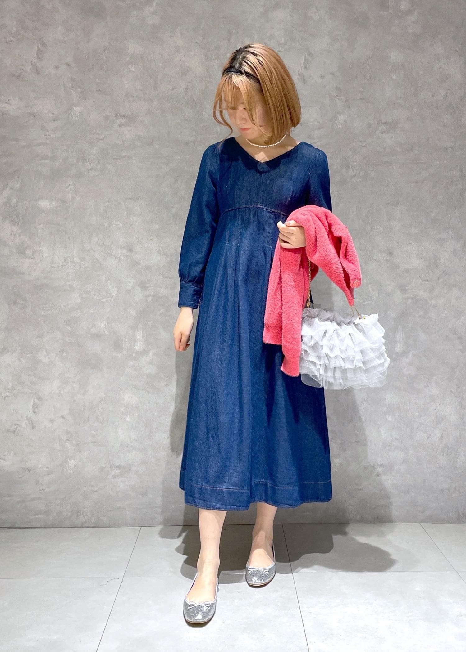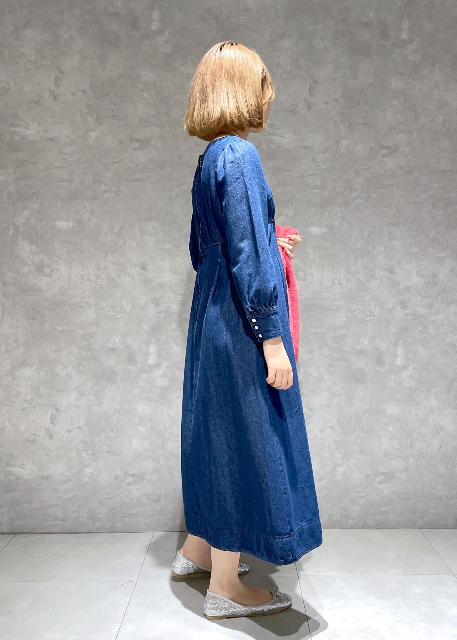 デニム素材ですが身頃の切り替えがスッキリ見えするデザインなので細見え効果も抜群です◎