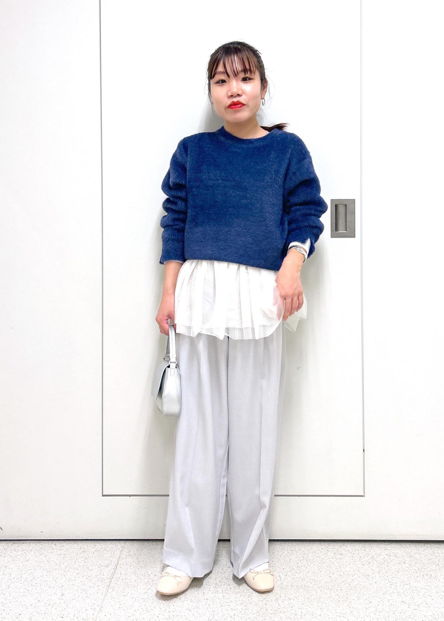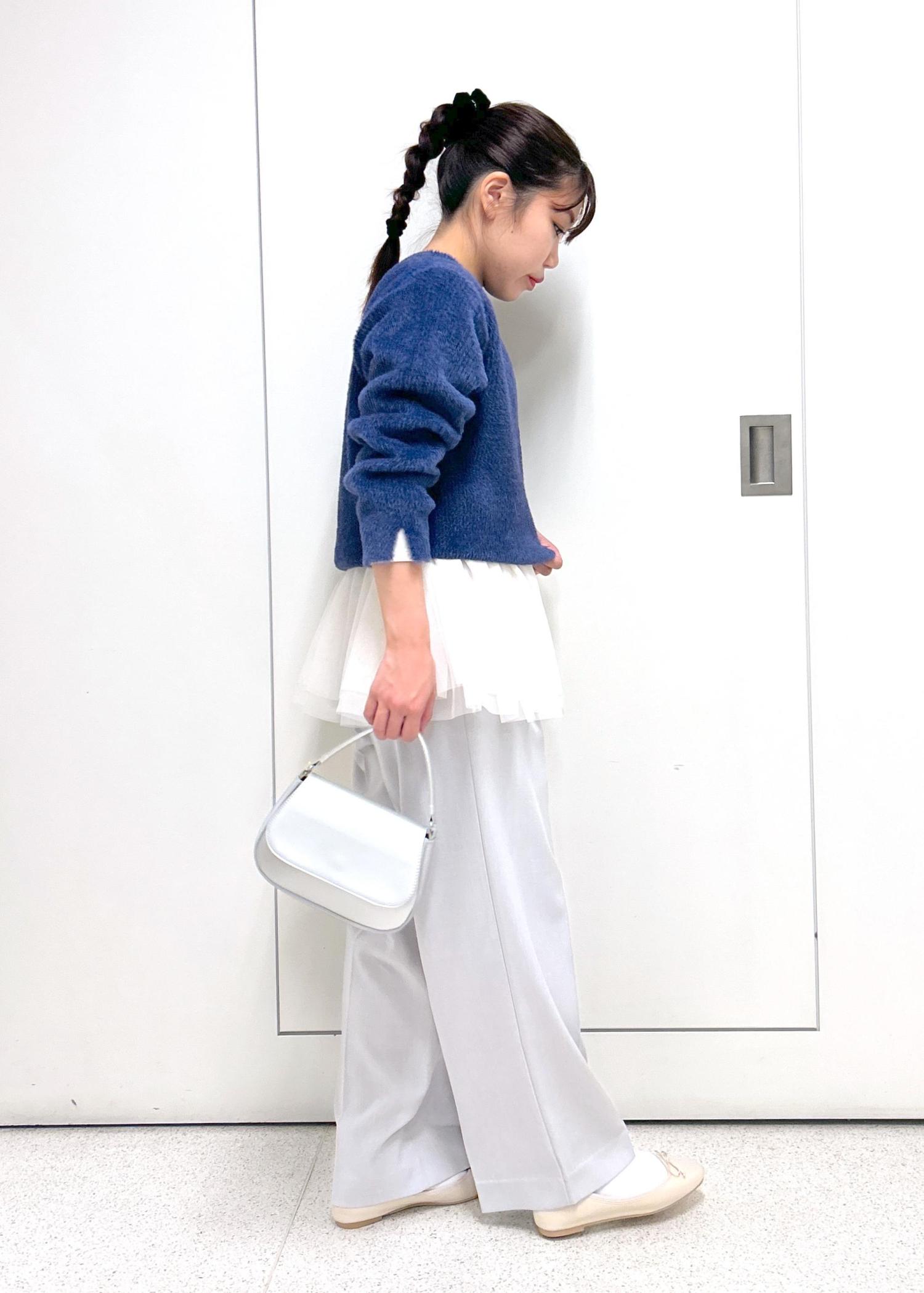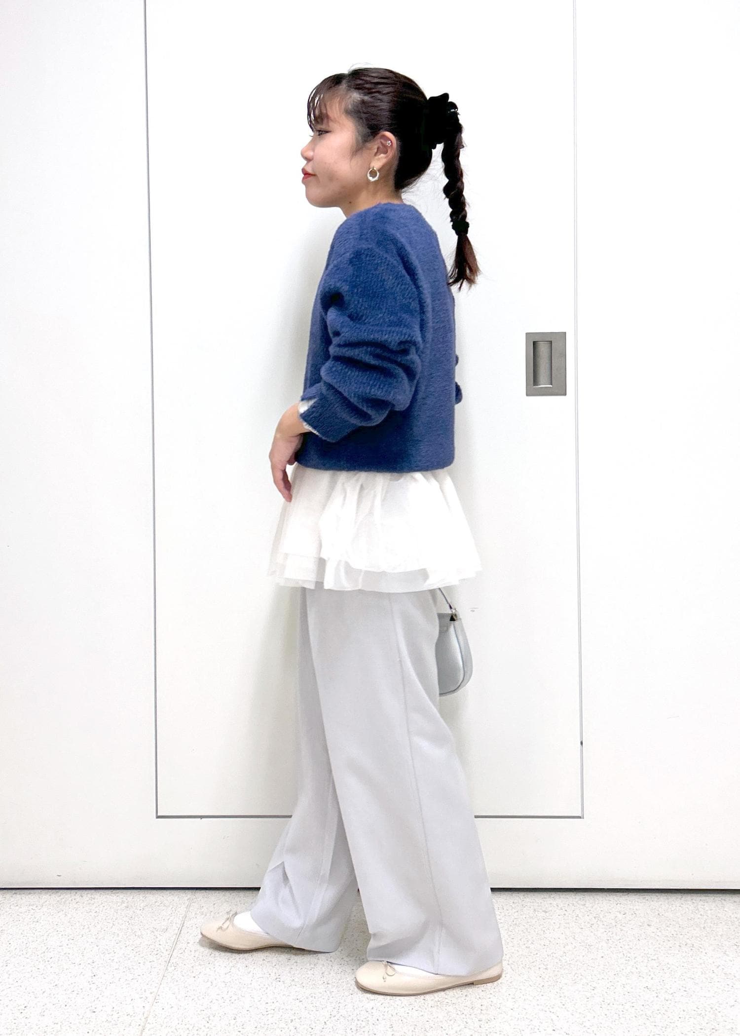 腰丈ぐらいの着丈なのでインナーにチュールやシャツをレイヤードしても可愛いです。