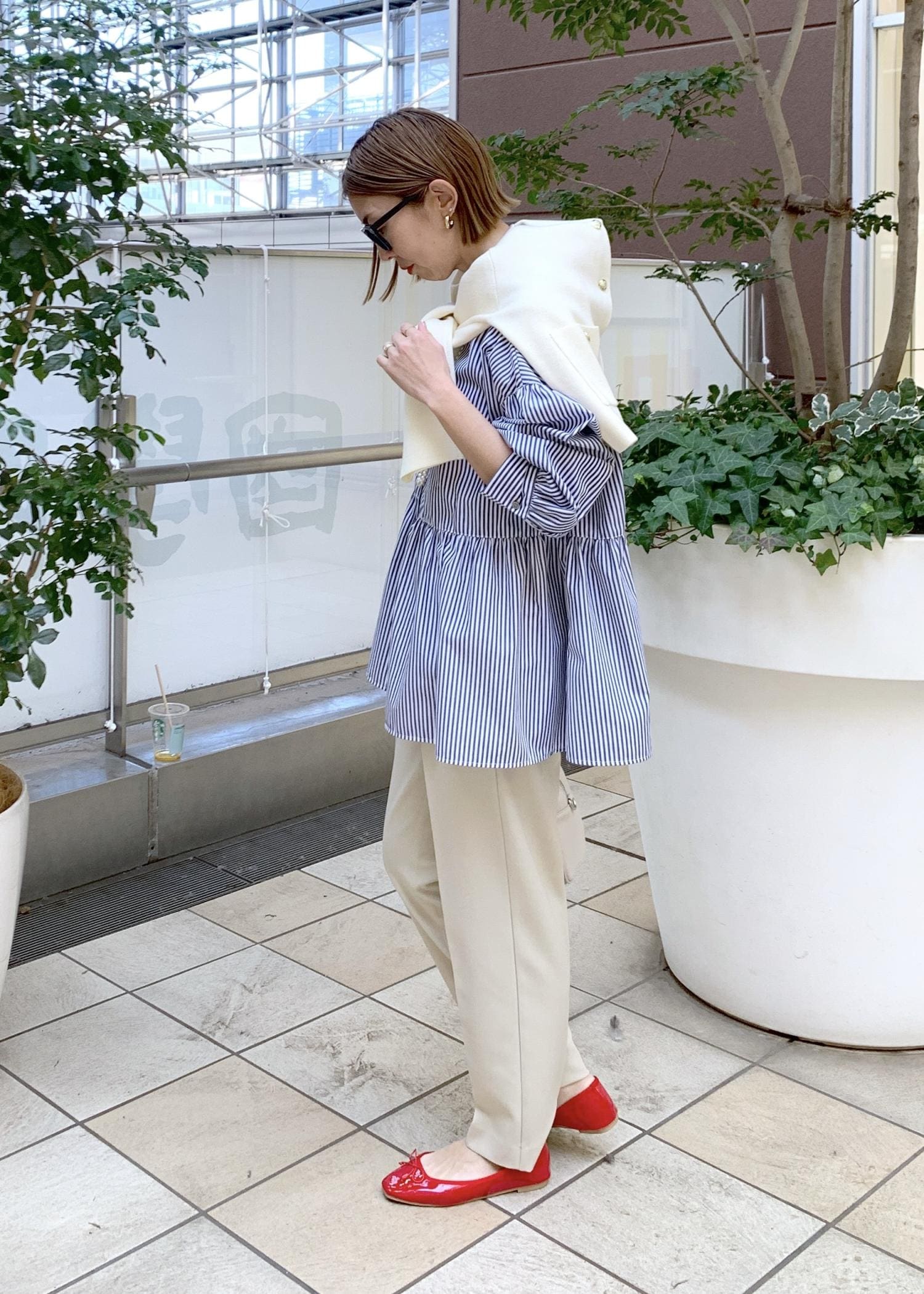 丈感は、短めなのでハイウエストボトムやワンピースなどとの相性◎