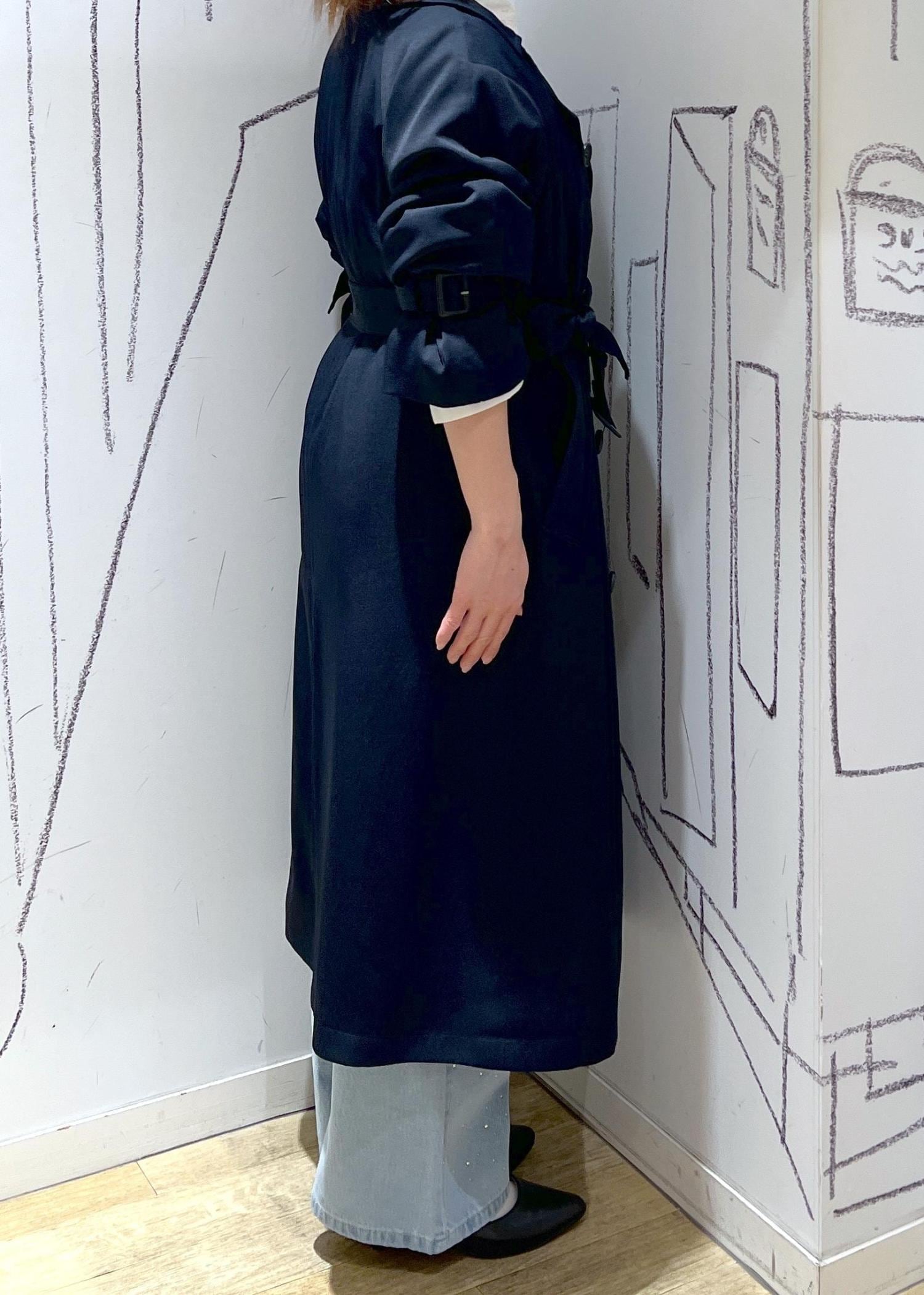着られない小柄さんトレンチコートがついに完成!背中もコンパクト見えで小柄でもロングトレンチコートを着れる日が来るとは!春のお出かけがよりわくわくです。ハンサム仕上がりでこの春かっこよく◎