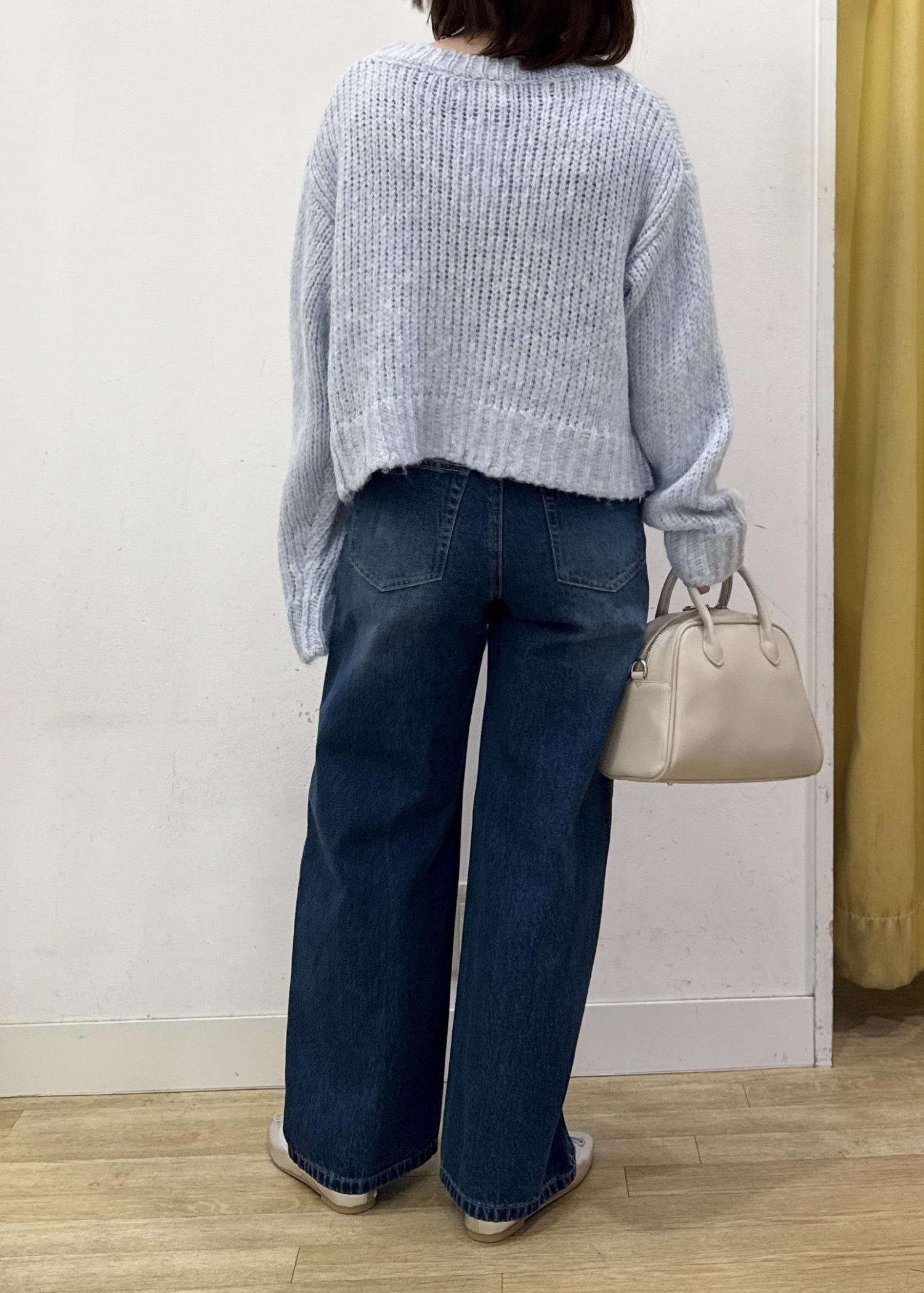 ニットトップスは、サックスの爽やかなカラーで春に向けても大活躍!!