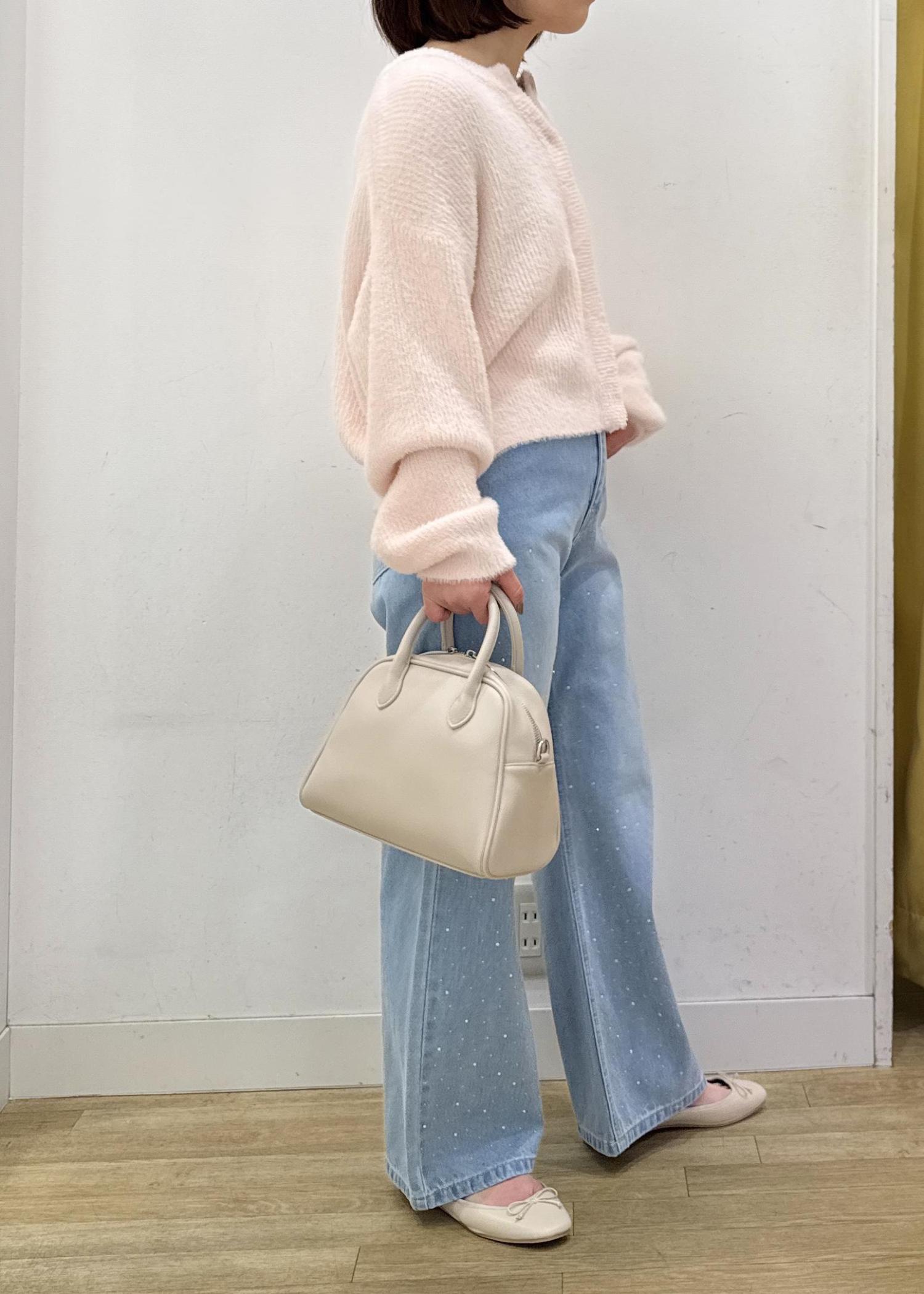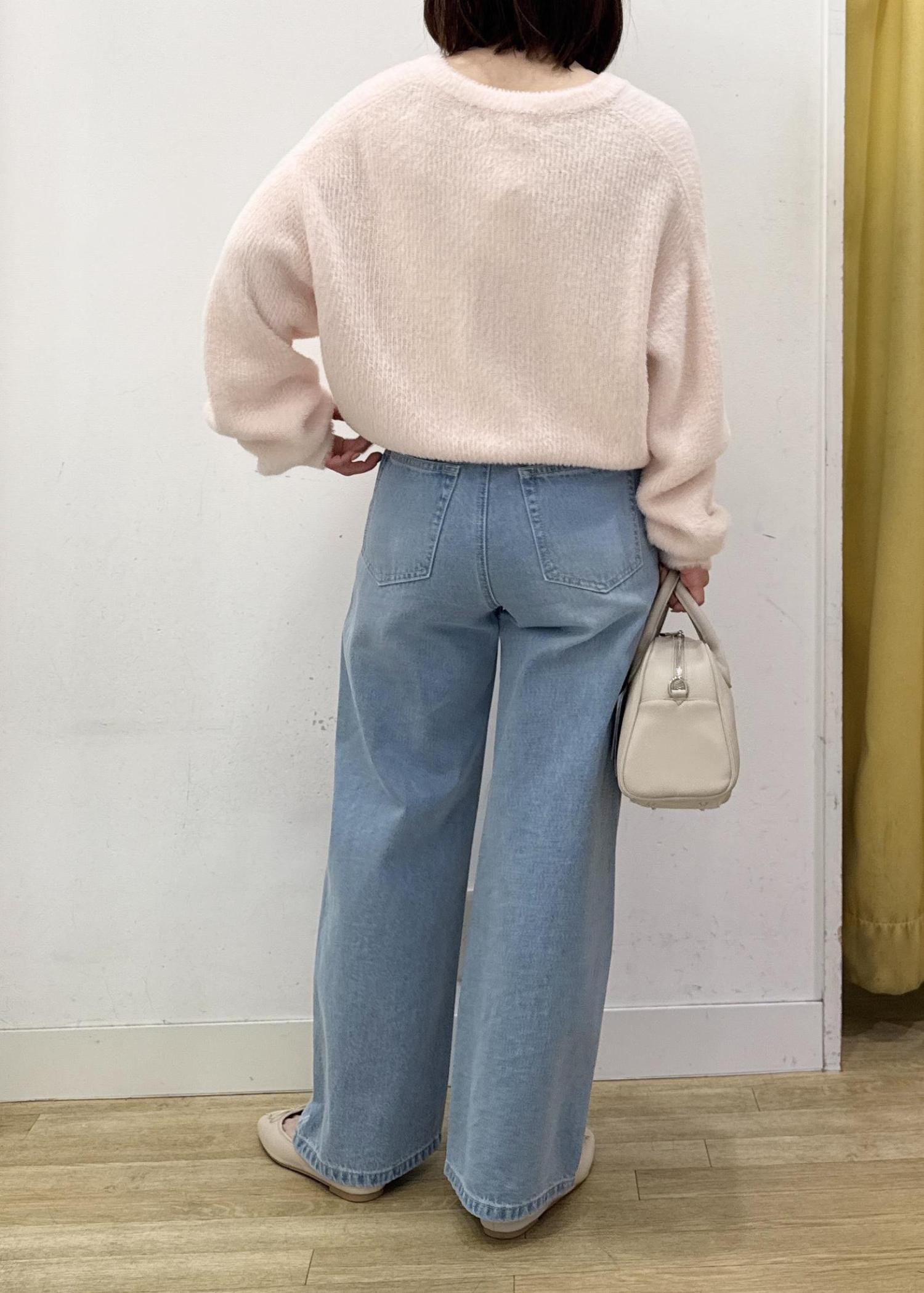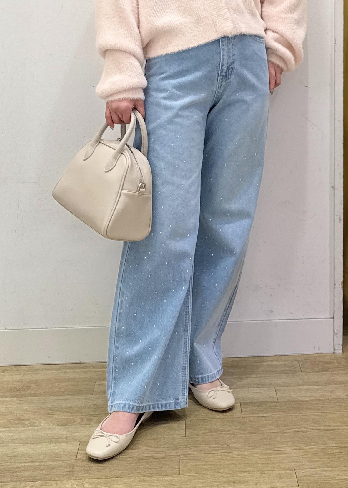 脚のラインは拾わないワイドシルエットで、カジュアルになりがちなデニムもビジューデザインで華やかに着ていただけます。 -