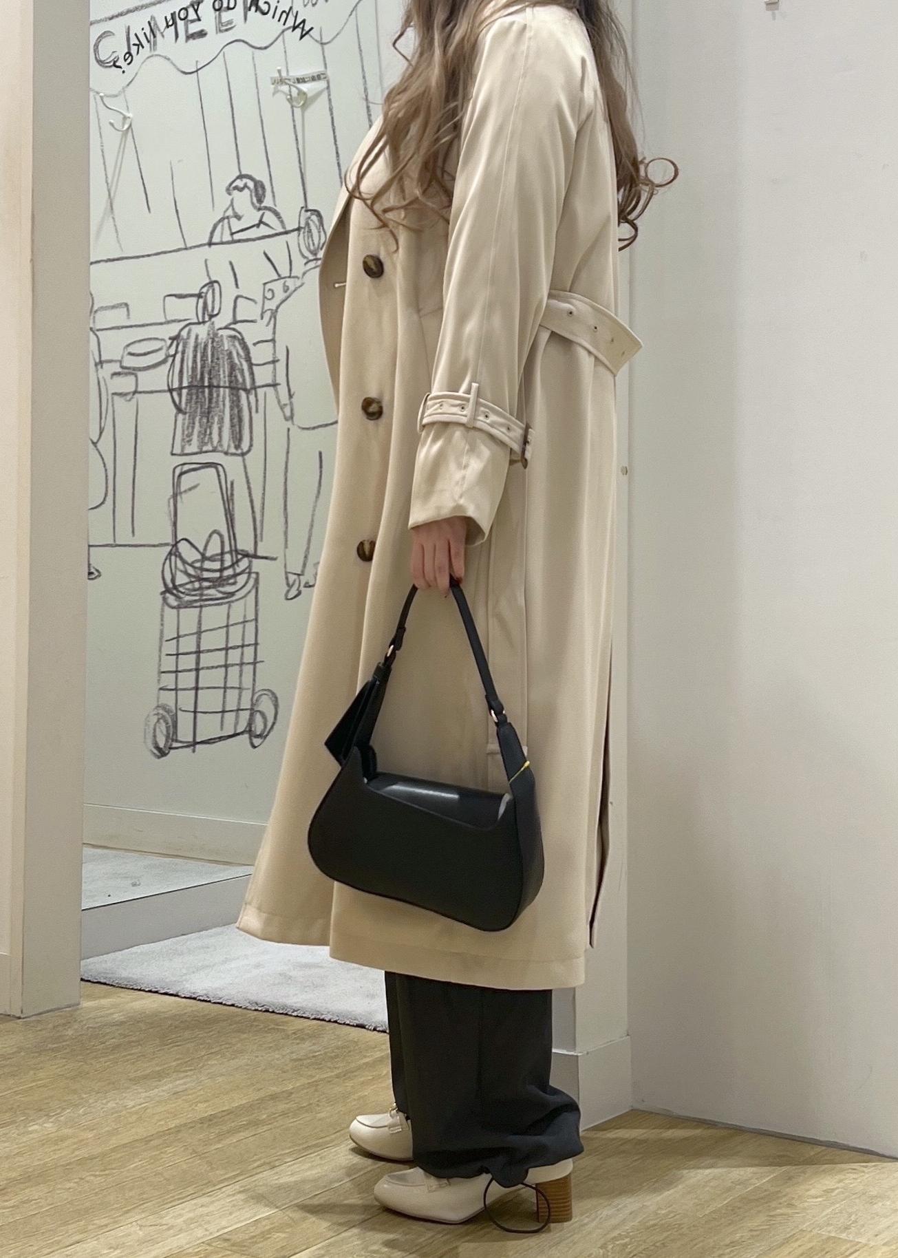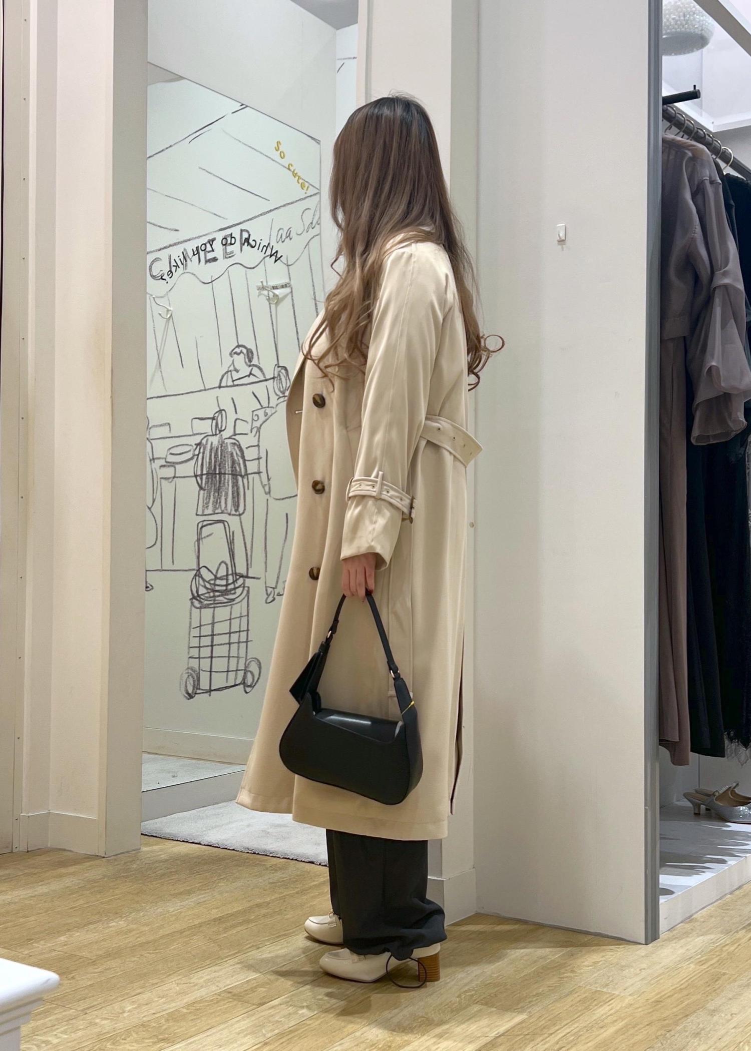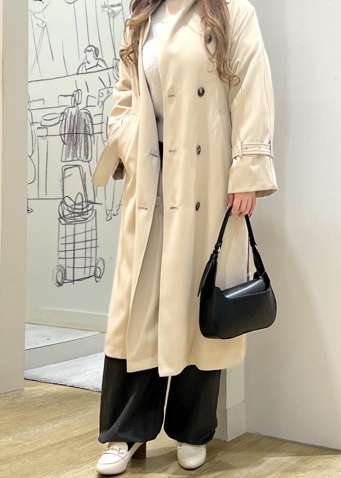 新作の大きさを選べるトレンチコートを使用したスタイリングです
