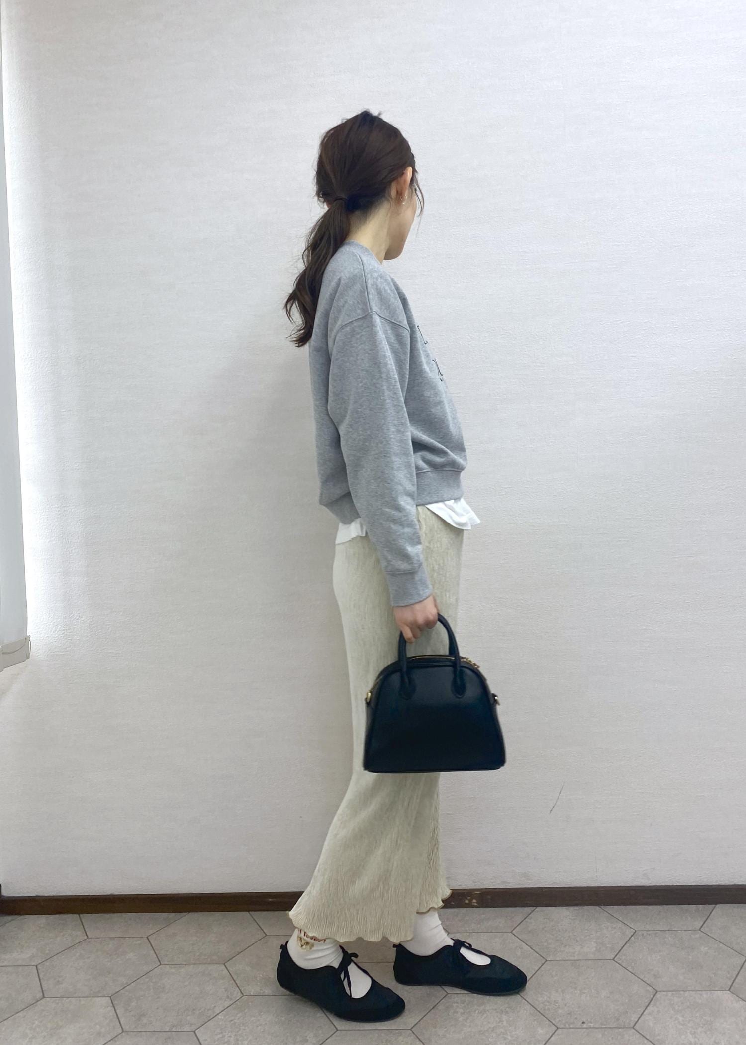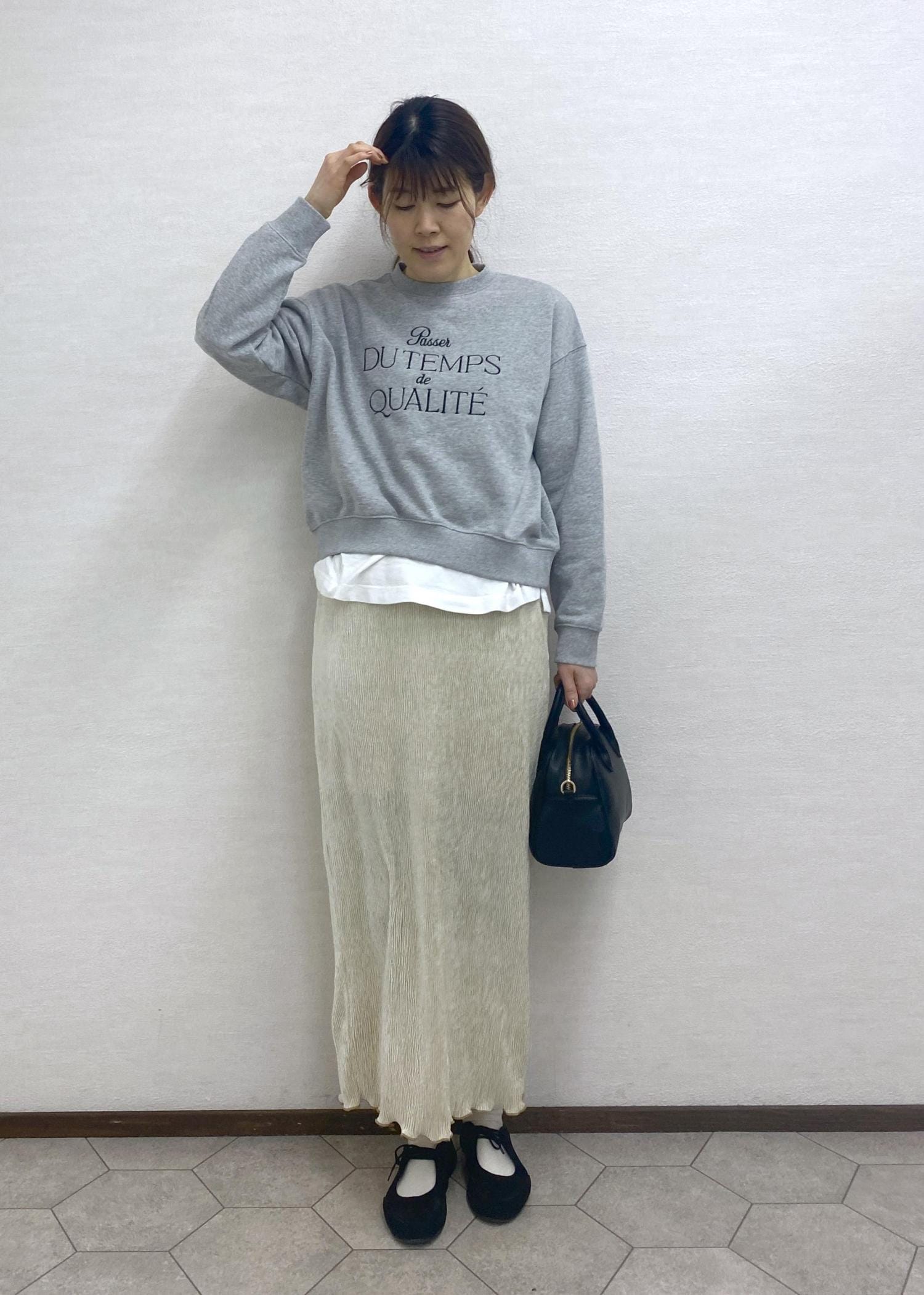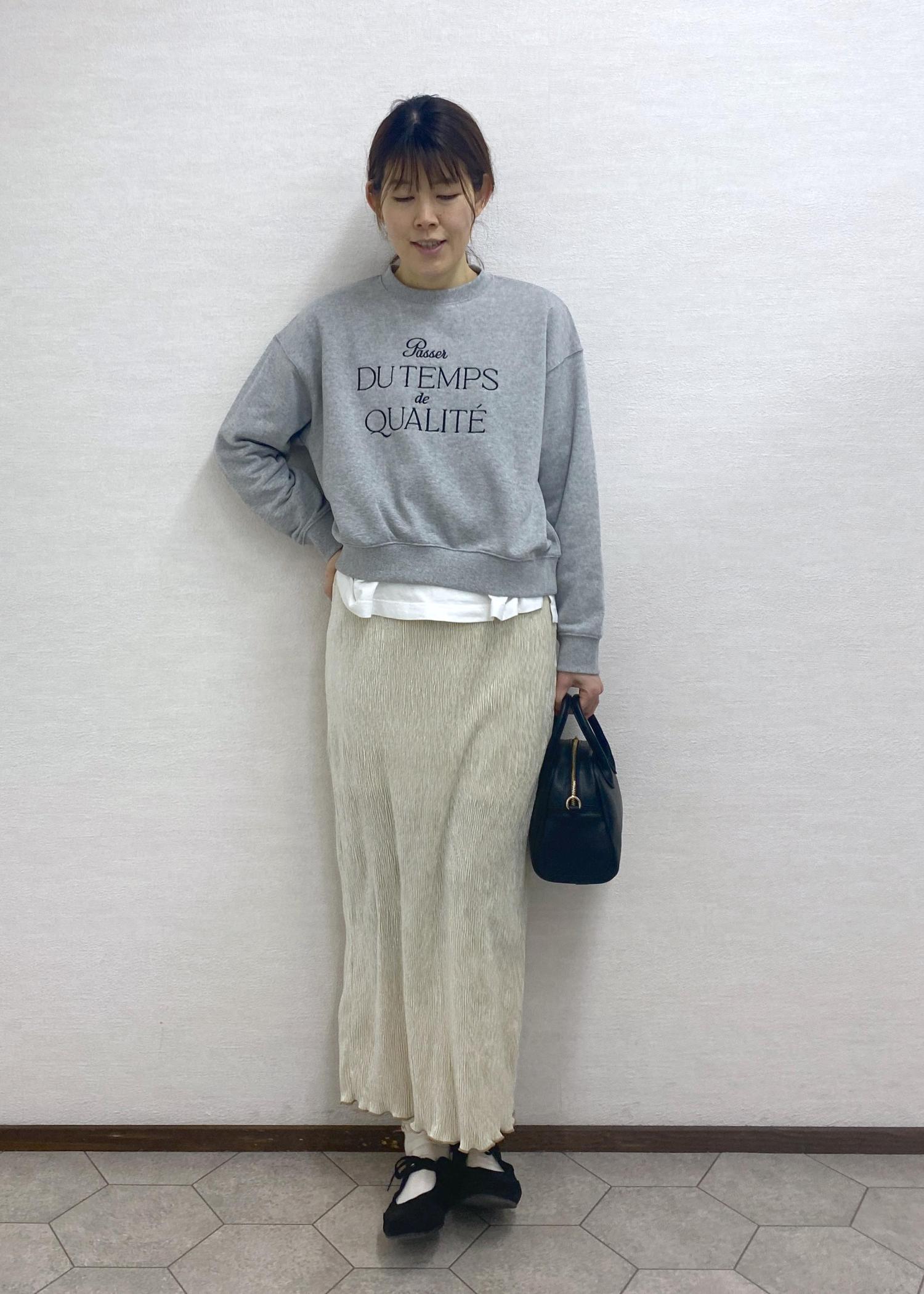 幅がゆったり、丈はすっきりの大人かわいいスウェット。