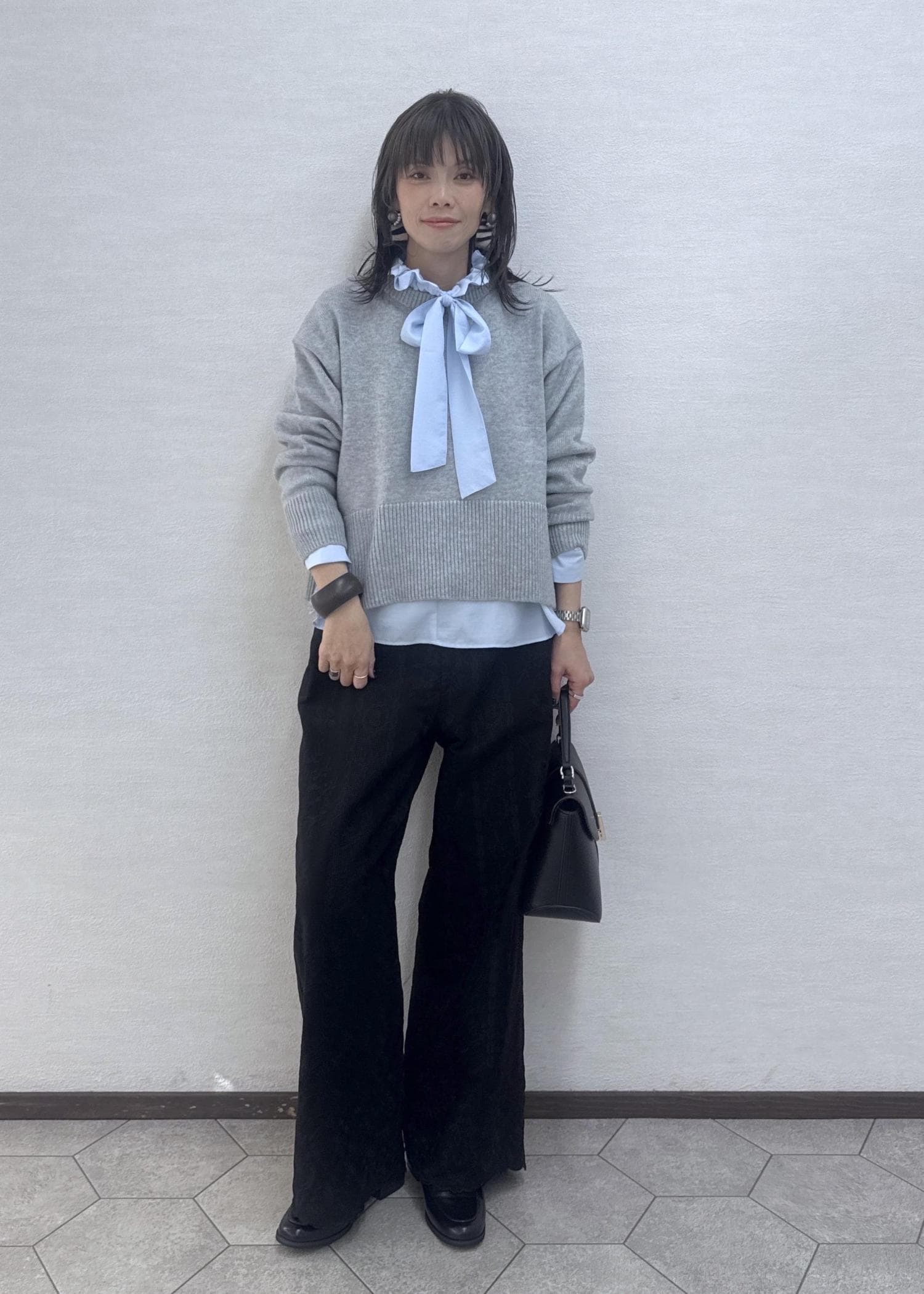 インナーはシンプルなトップスを合わせたお仕事スタイル。