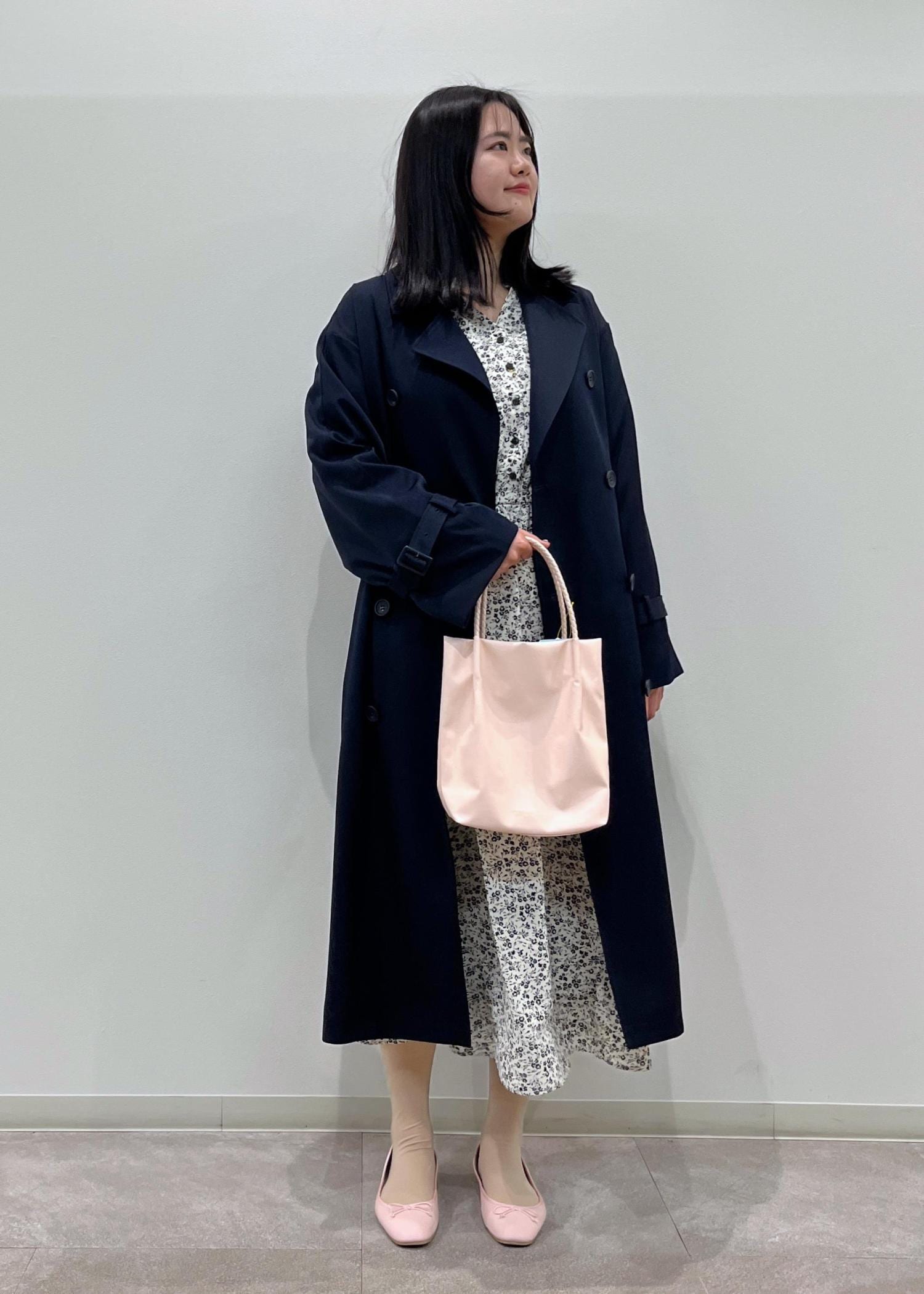 花柄ワンピース×トレンチコート