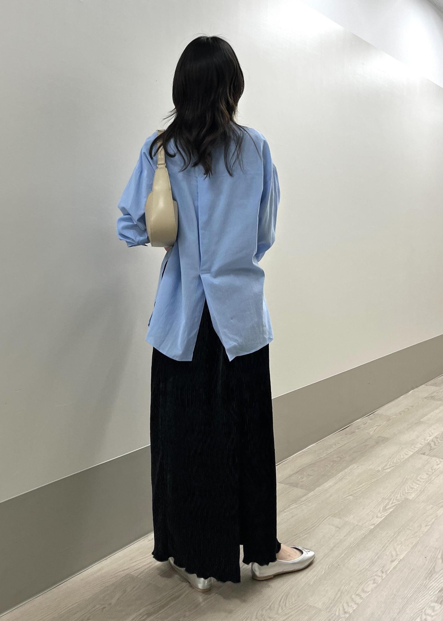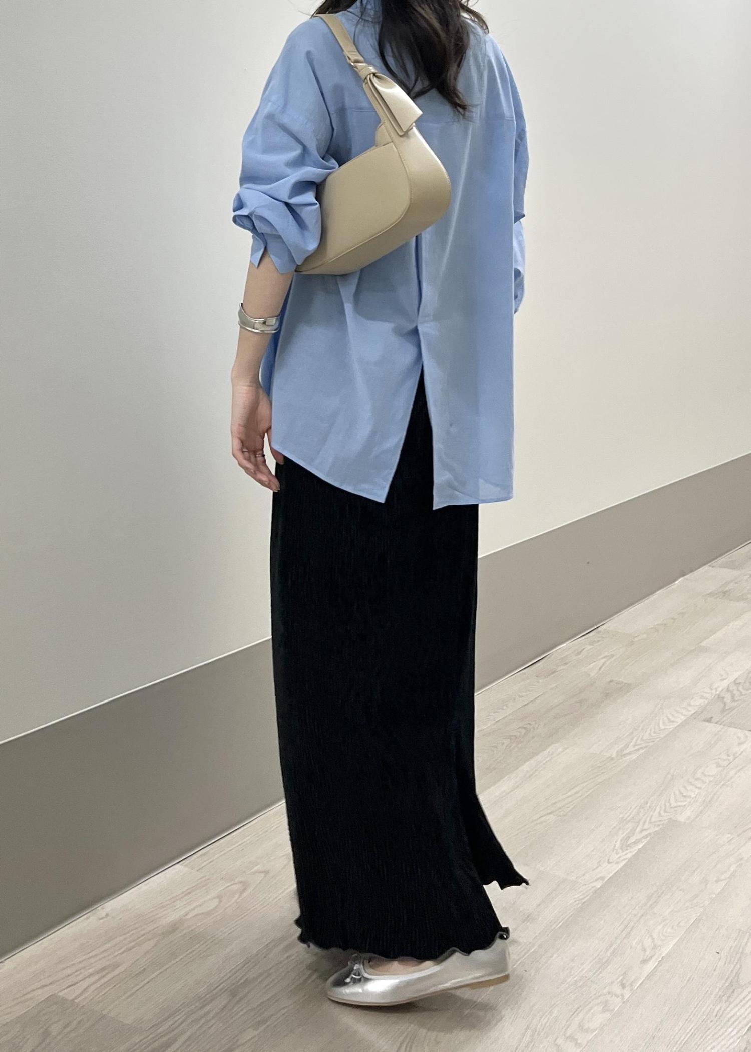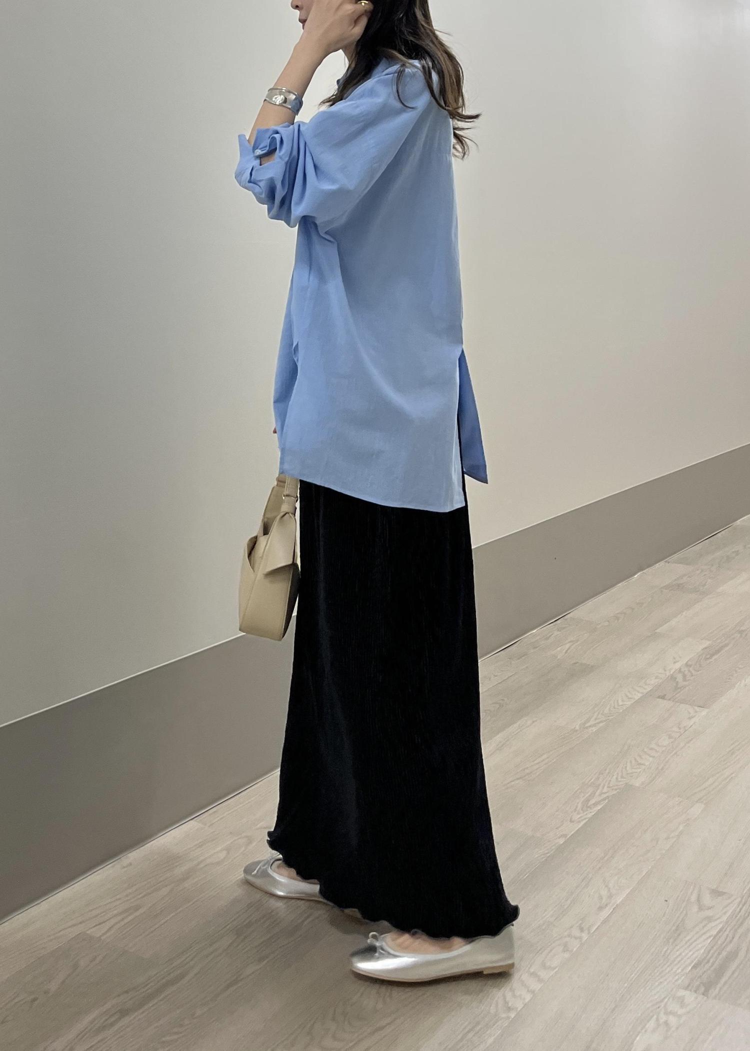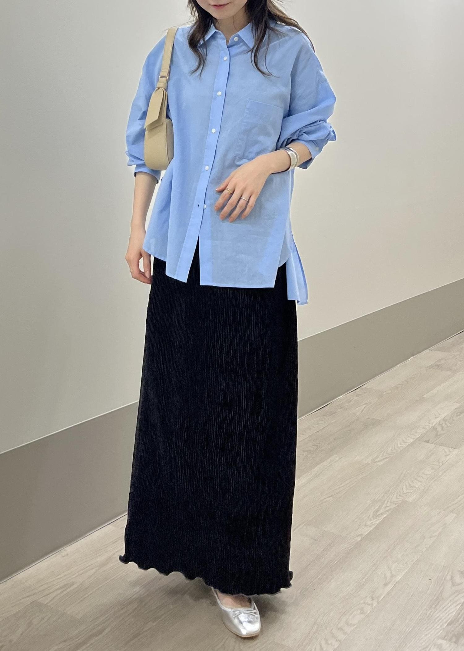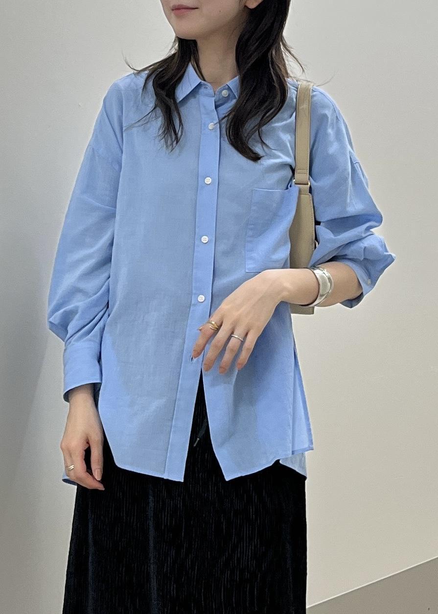 少しシアー感のあるシャツが透明感があり、春先少し暖かくなる時期にぴったりの1枚です。